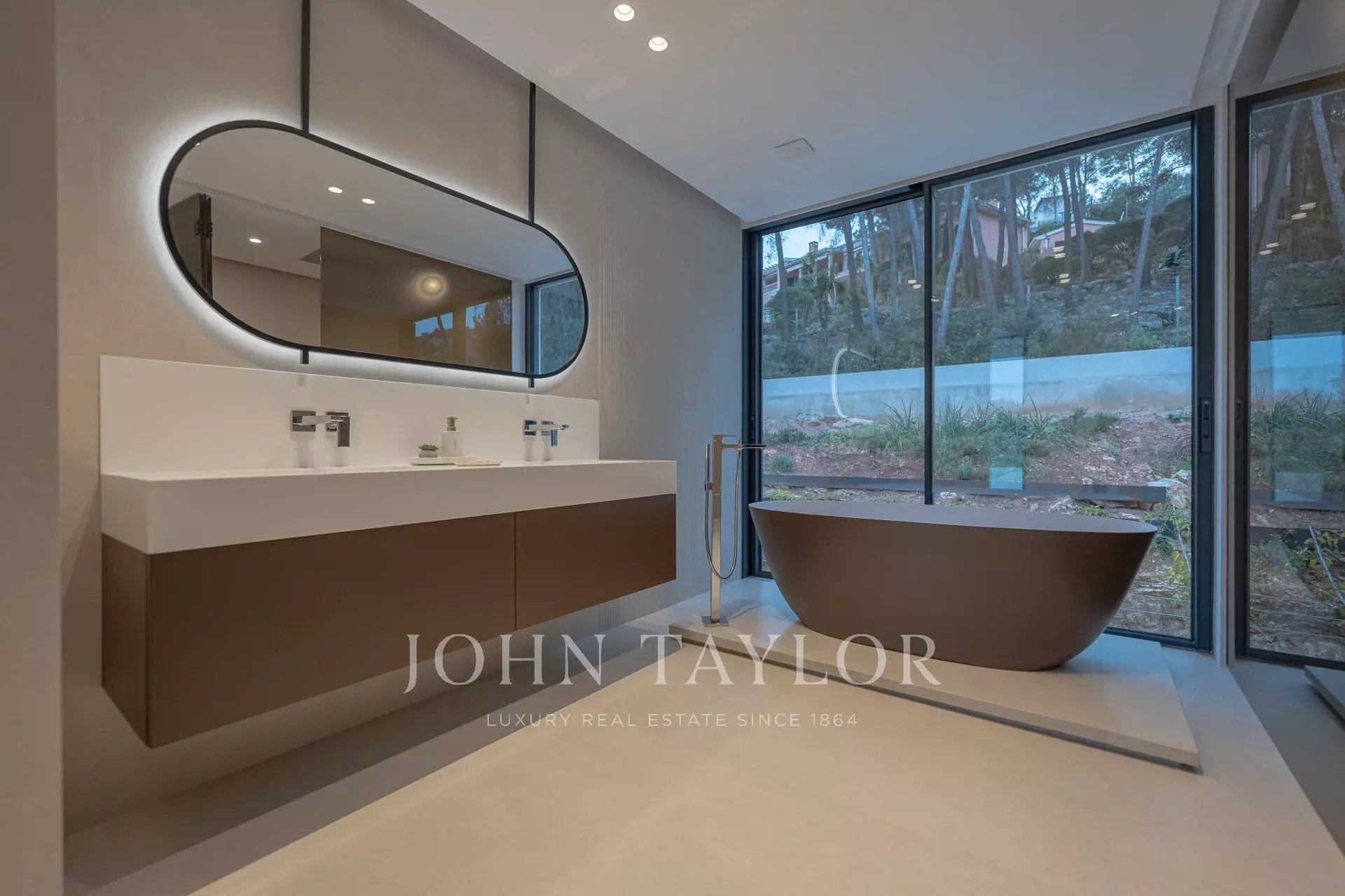 Diese neu gebaute Luxusvilla bietet die perfekte Mischung aus mediterranem Lebensstil, natürlicher Umgebung, viel Licht und großzügigen, offenen Räumen - alles ist darauf ausgerichtet, Wohlbefinden und Komfort zu fördern.
