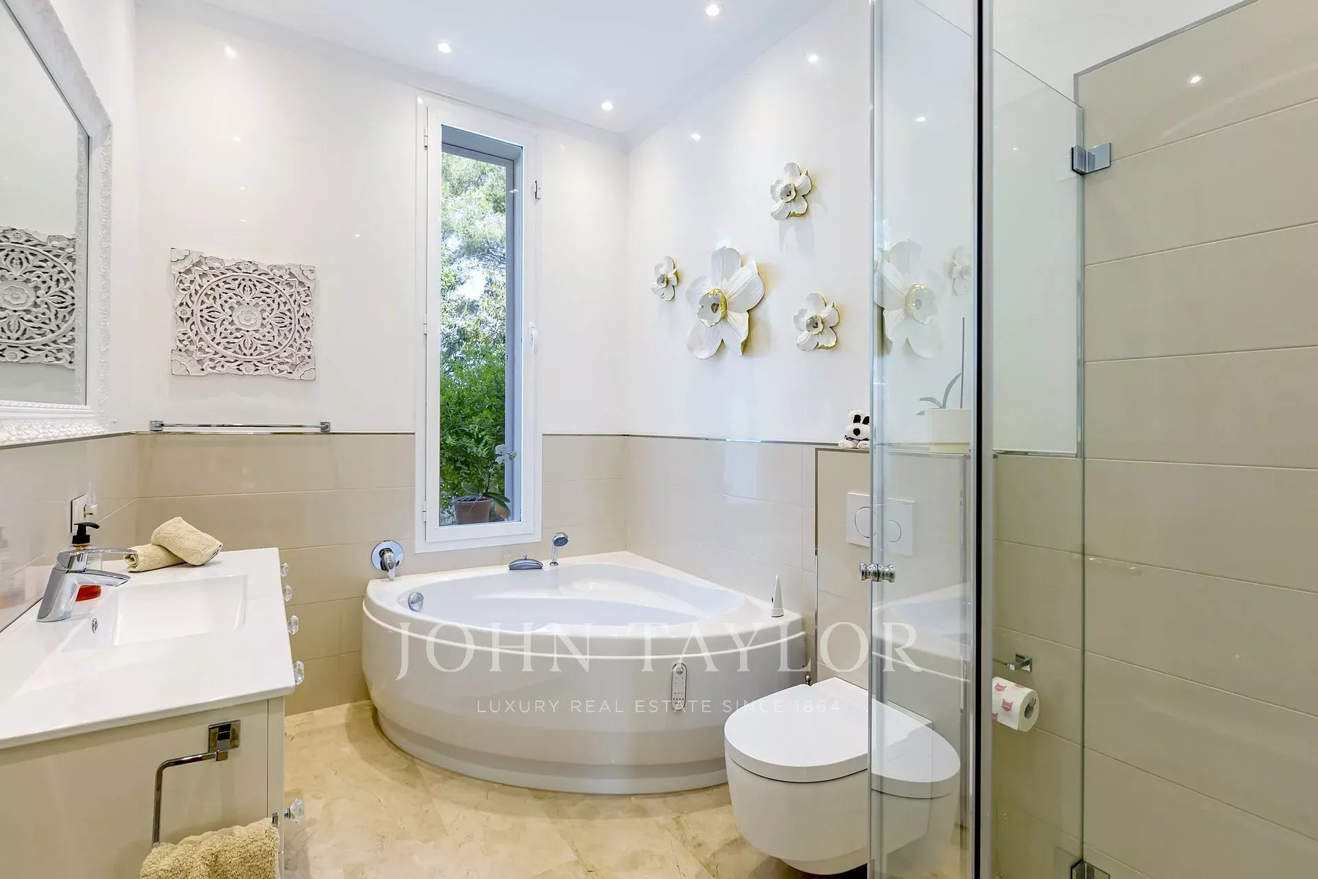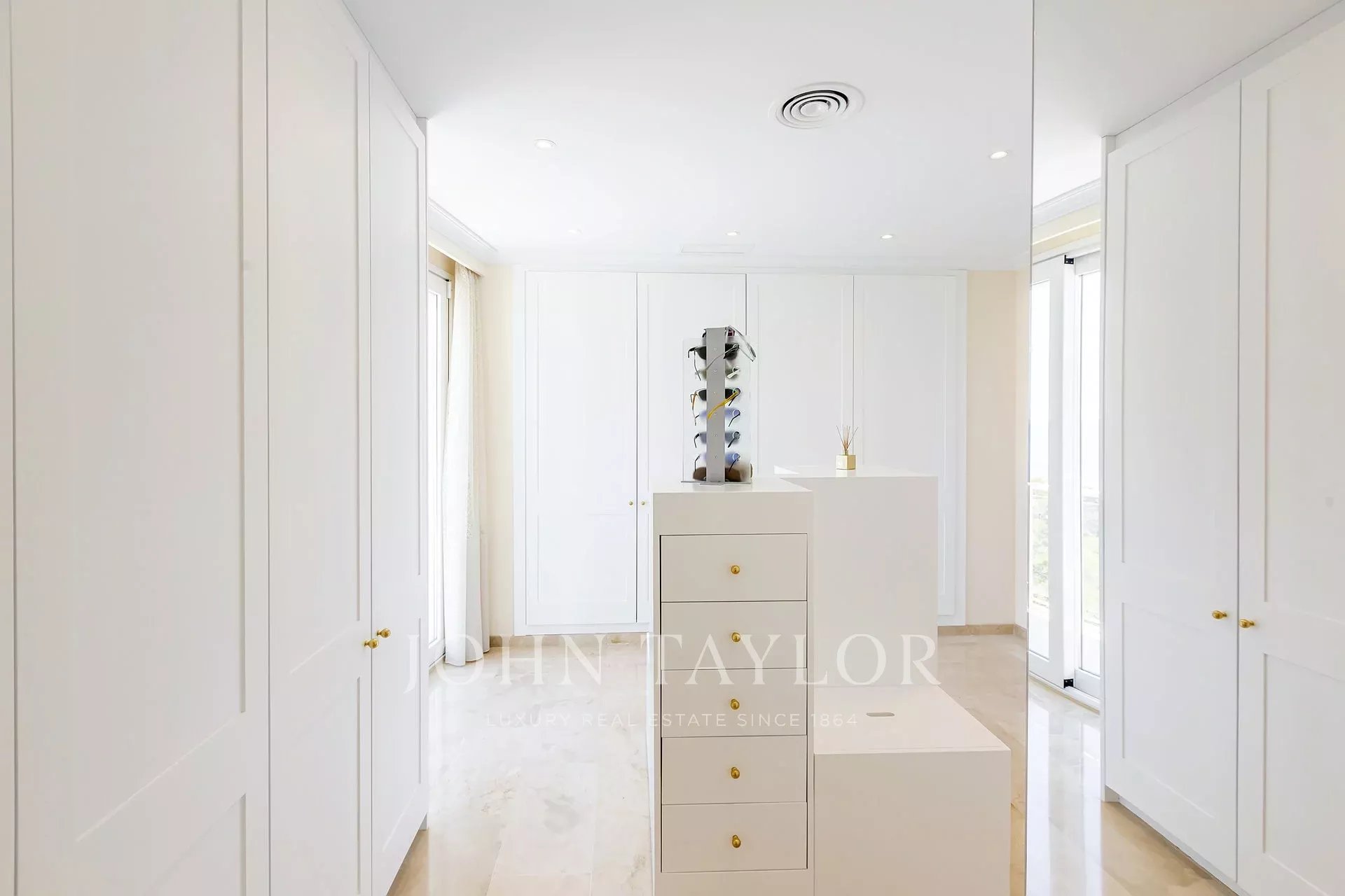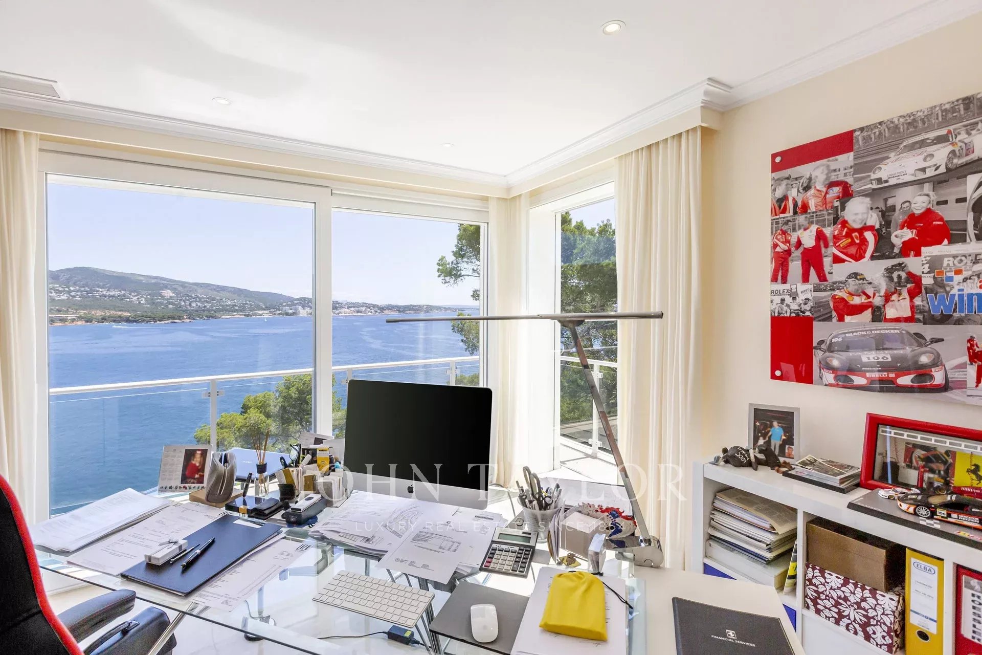 Luxusvilla mit direktem Zugang zum Meer in Palmanova. Diese komplett renovierte Villa aus dem Jahr 2020 befindet sich direkt am Meer in Palmanova und verfügt über einen komfortablen privaten Zugang zum Meer um zu jeder Tageszeit ein Bad zu genießen. Die Aussichten sind nicht nur tagsüber spektakulär, wenn Sie die vorbeifahrenden Schiffe sehen können, sondern auch nachts, wenn die gesamte Küste rund um die Bucht beleuchtet ist. Das Haus erstreckt sich über 2 Etagen und bietet einen großen Flur, ein Wohnzimmer mit Küche mit Zugang zur Terrasse, 4 Schlafzimmer und 4 Badezimmer. Im Untergeschoss befindet sich ein völlig unabhängiges Gästeapartment und es gibt genügend Platz für ein Fitnessstudio, einen Kinoraum, einen Wellnessbereich usw. Ein wunderschöner Pool und eine Garage vervollständigen diese wundervolle Immobilie in ruhiger Lage mit viel Privatsphäre neben einer Grünfläche.