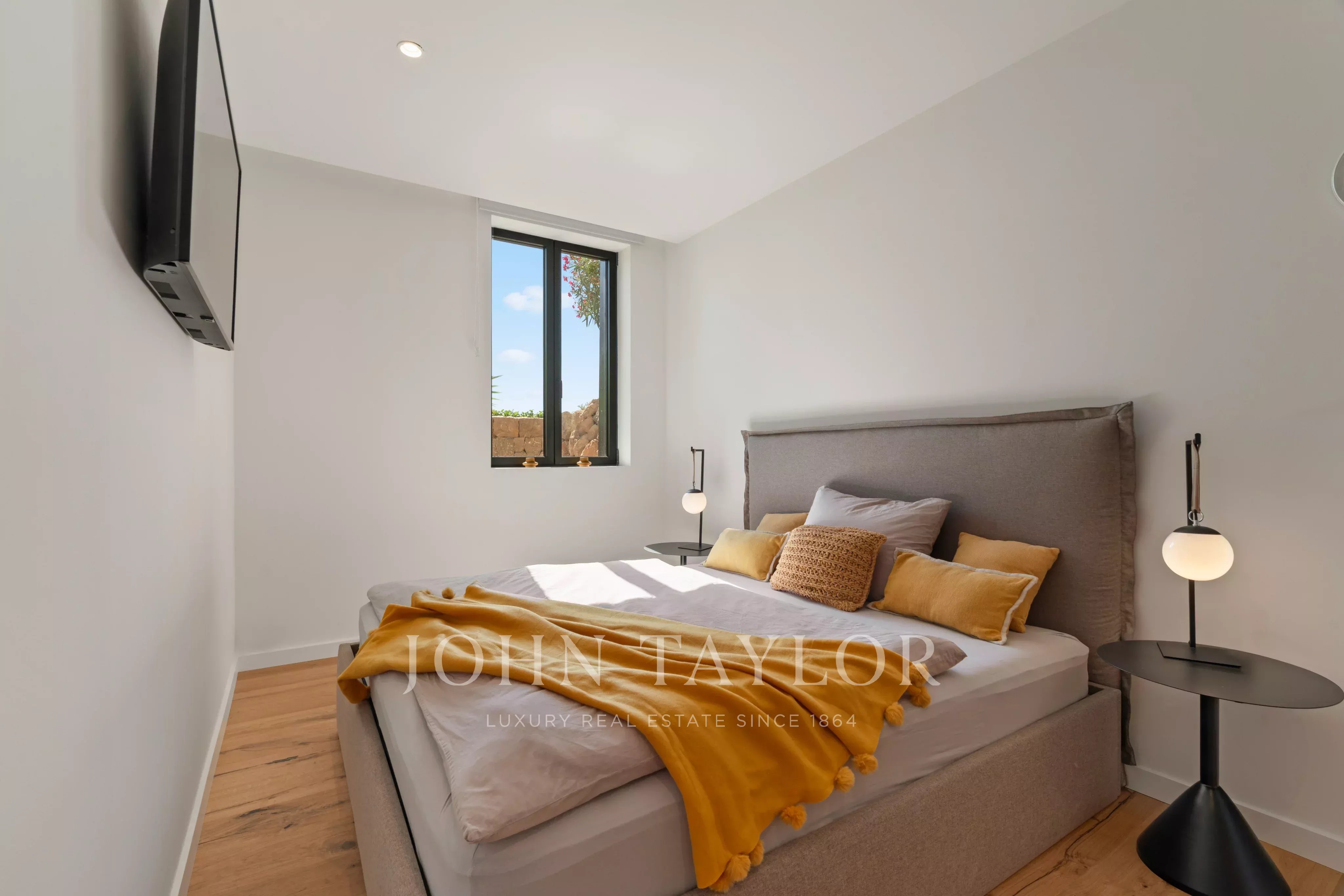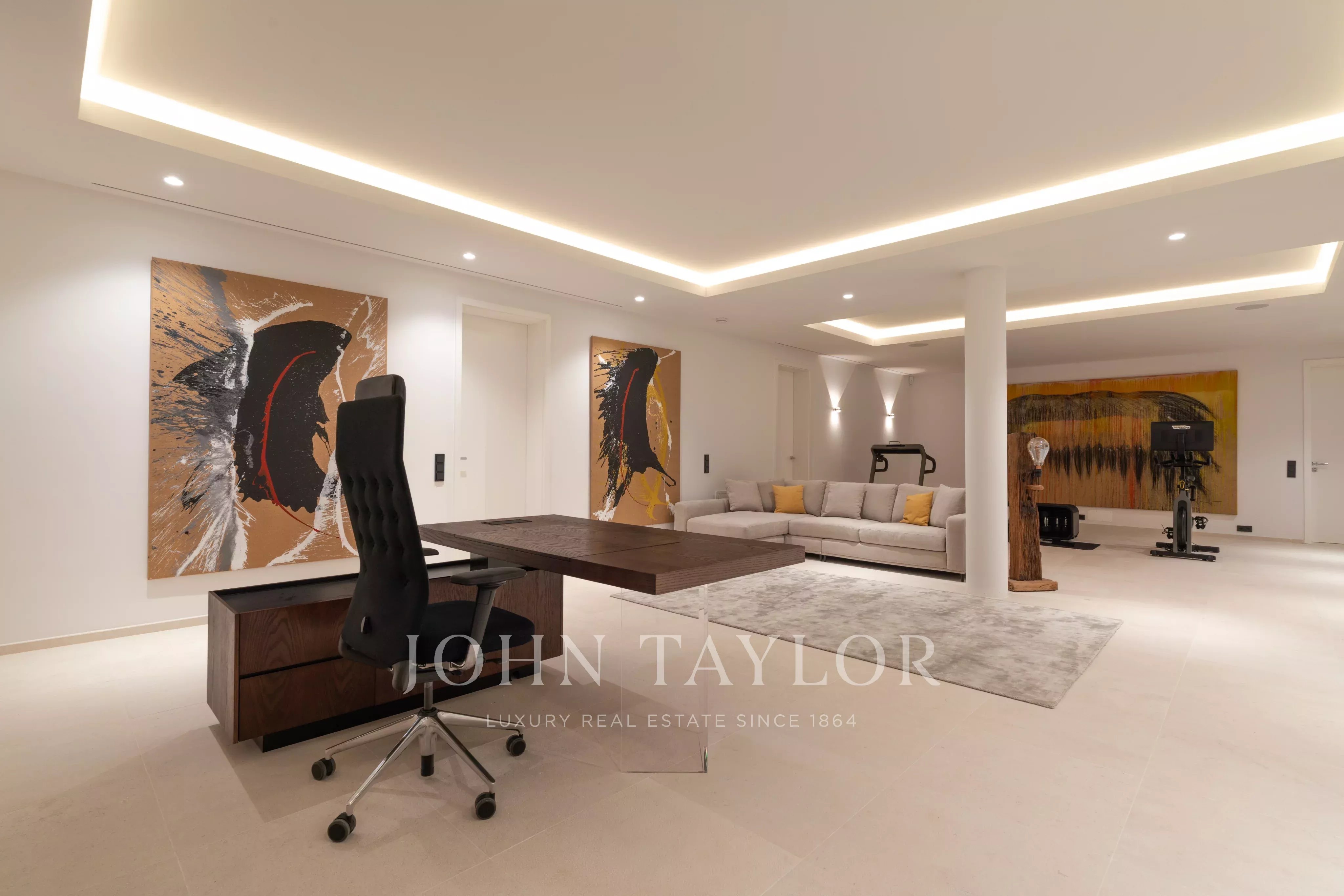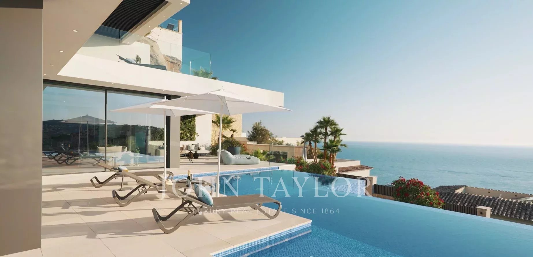 In herausragender Lage hoch über der Cala Llamp thront diese beeindruckende, moderne Villa, harmonisch in den Berghang integriert und bietet einen einzigartigen, atemberaubenden Meerblick. Die Aussicht erstreckt sich von der spektakulären Bucht mit ihrem herrlich blauen Wasser bis hin zur Halbinsel La Mola und dem offenen Meer im Hintergrund. Die Villa bietet großzügigen Luxus mit 6 Tiefgaragenplätzen und 6 Schlafzimmern auf einer Wohnfläche von 691 qm, eingebettet in ein Grundstück von 1.038 qm. Die eindrucksvolle Architektur kombiniert freitragende Strukturen mit frischem, weißem Verputz und einer perfekt ausgearbeiteten minimalistischen Glasfassade. Das Gebäude fügt sich nahtlos in die Natur ein, dank der klassischen Kombination aus Kalkstein und wunderschön verarbeiteten mallorquinischen Natursteinmauern. Für die faszinierende Innenausstattung wurden die feinsten natürlichen Materialien verwendet, um ein perfektes Gleichgewicht zwischen Licht und Schatten zu schaffen und somit eine ebenso komfortable wie angenehme Atmosphäre zu gewährleisten. Die Villa wurde mit viel Liebe zum Detail entworfen, um den atemberaubenden Panoramablick von den wichtigsten Räumen und Terrassen aus optimal zu gestalten. Durch die Ausrichtung nach Südwesten genießt die Villa den ganzen Tag über Sonne und bietet die unglaublichsten Sonnenuntergänge, bei denen man die Silhouette der Nachbarinsel Ibiza sehen kann. Die sorgfältig gewählte Gebäudeausrichtung, die Höhenlage, das durchdachte Layout und die Einbindung in die Landschaft schaffen ein perfektes Umfeld, in dem man das Mittelmeer und gleichzeitig absolute Privatsphäre genießen kann. Das Anwesen befindet sich in einer hervorragenden Lage über der Bucht Cala Llamp und bietet damit Ruhe, Frieden, Sicherheit und Privatsphäre in dieser sehr exklusiven Umgebung. Der beliebte Gran Folies Beach Club ist nur wenige Fußminuten entfernt, und zahlreiche interessante und hochwertige Cafés und Restaurants im Hafen und der Marina befinden sich in unmittelbarer Nähe. Entdecken Sie das außergewöhnliche Lebensgefühl in dieser exquisiten Villa. Kontaktieren Sie uns, um weitere Informationen zu erhalten und eine Besichtigung zu vereinbaren.