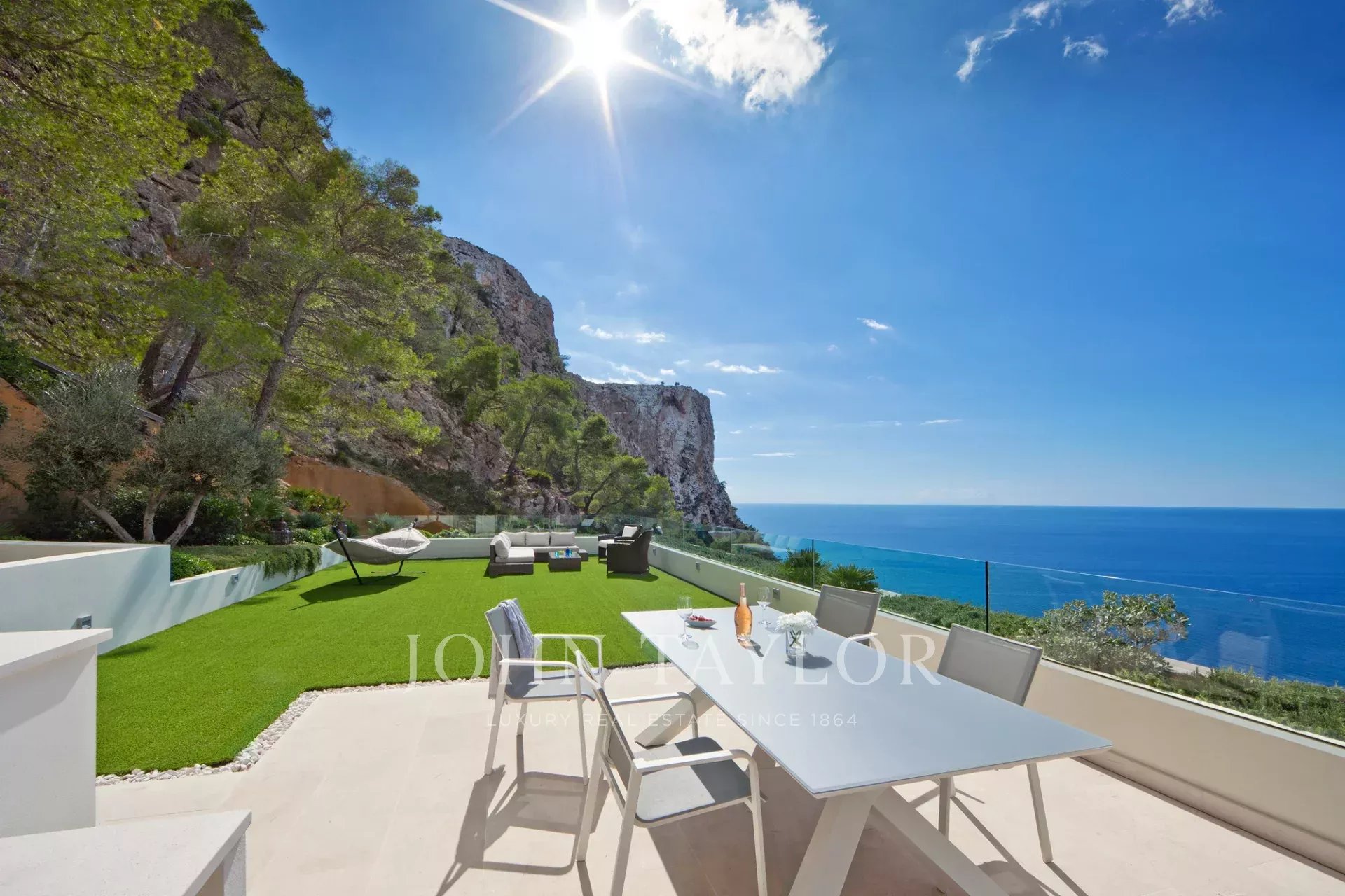 In der exklusiven Enklave von Puerto de Andratx, wo das Mittelmeer in einem Ballett aus unendlichen Blautönen mit dem Horizont verschmilzt, steht eine Traumresidenz, die die Essenz des balearischen Luxus verkörpert. In der privilegierten Gegend von Cala LLamp gelegen, ist diese Villa nicht nur eine Immobilie, sondern ein Ausdruck von Eleganz und Gelassenheit für alle, die einen zeitlosen Rückzugsort in der mallorquinischen Sonne suchen. Auf einem großzügigen Grundstück von 1.823 m² bietet das Haus 573 m² Nutzfläche und 382 m² Wohnfläche, die sich auf eine zeitgenössische Architektur verteilen, die ein Gleichgewicht zwischen Modernität und mediterraner Wärme schafft. Von ihrer erhöhten Lage aus bietet die Villa einen ungehinderten Panoramablick auf das Meer, so dass Sonnenuntergänge zu einem täglichen Ritual werden, das nur den Bewohnern vorbehalten ist.