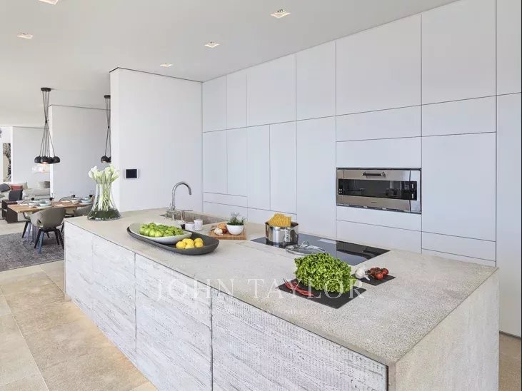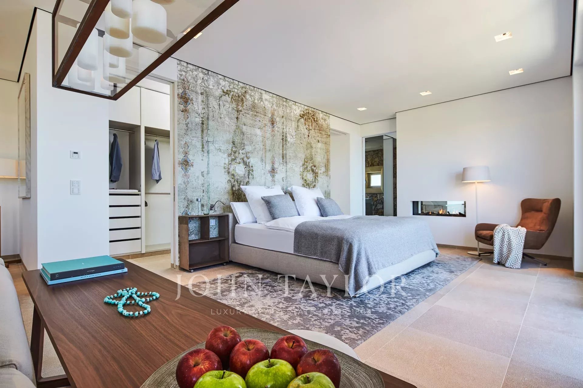 Dieses luxuriöse Anwesen befindet sich in einer begehrten Lage oberhalb der Bucht von Cala Llamp und bietet einen atemberaubenden Panoramablick auf das Meer. Die Villa hat eine bebaute Fläche von 700m2 auf drei Ebenen. Im Erdgeschoss befindet sich eine elegante Eingangshalle, die zum Fernsehraum, Wohnzimmer, Esszimmer und zur Küche führt. Der großzügige Wohnbereich wird durch die Pergolen auf die Terrassen erweitert, wo sich zwei Außenküchen mit Grill und großem Esstisch sowie ein Badezimmer befinden. Ein weiteres Highlight ist der 60 m2 große Infinity-Pool. Der Außenbereich ist so gestaltet, dass Sie das mediterrane Klima perfekt genießen können. Über den Aufzug oder die elegant beleuchtete Treppe gelangt man in das Obergeschoss, wo sich der Schlafbereich befindet. Dieser besteht aus zwei Schlafzimmern mit eigenem Bad und einer komfortablen Master-Suite. Diese besteht aus einem Vorraum, einem geräumigen Schlafbereich und einem luxuriösen Badezimmer mit Badewanne im Erker. Im Untergeschoss befinden sich neben der 100m2 großen Garage, die Platz für mindestens 5 Autos bietet, eine Bodega, ein Fitnessbereich mit Sauna, ein Heimkino, ein Dienstzimmer mit Bad en Suite, ein weiteres Bad, eine Waschküche, ein Hauswirtschaftsraum und ein Abstellraum. Die Immobilie wird einschließlich der Möbel verkauft.