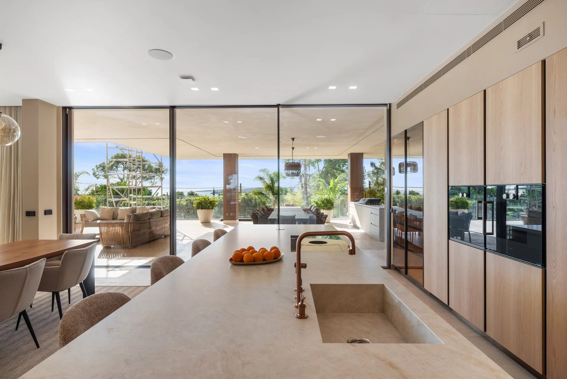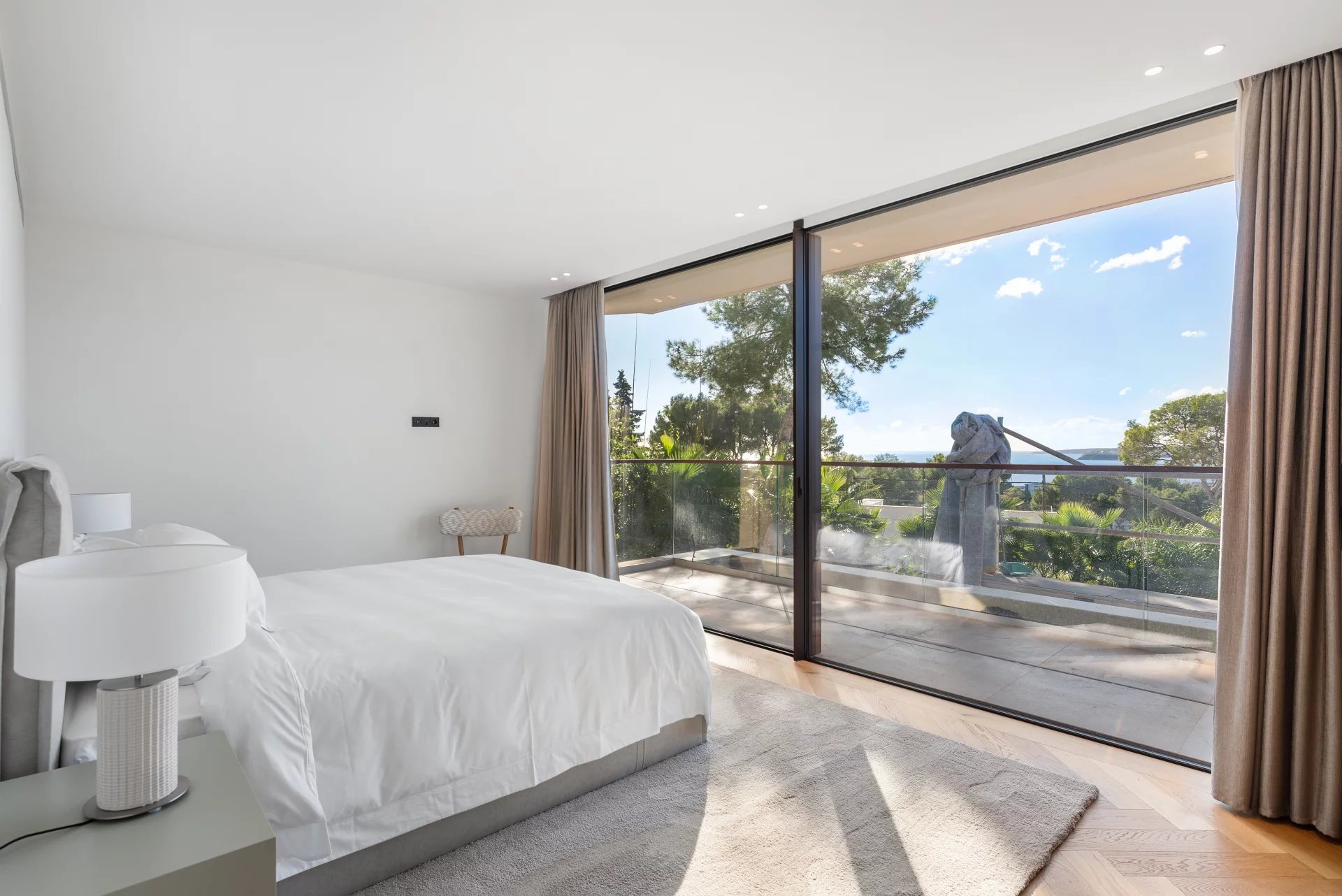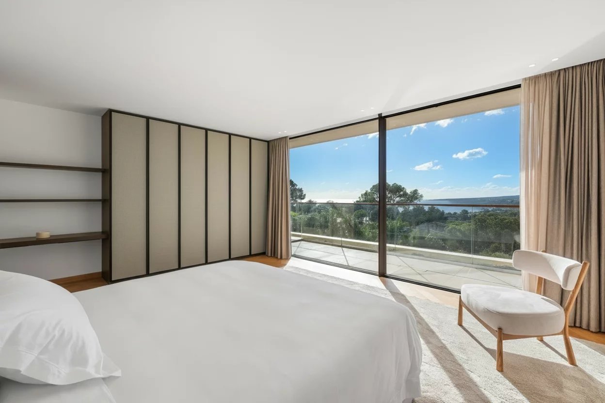 Stellen Sie sich vor, Sie wachen in einem der vier Schlafzimmer in der obersten Etage auf und haben einen ungehinderten Panoramablick auf das Meer, der sich bis zum Horizont erstreckt und durch die Südausrichtung in natürliches Licht getaucht wird. Im Erdgeschoss befindet sich ein spezielles Schlafzimmer mit direktem Zugang zu einer privaten Terrasse, ideal für Momente der Besinnung oder ein Frühstück bei Sonnenaufgang, während im unteren Stockwerk zwei weitere Suiten mit eigenem Bad untergebracht sind, ideal für Gäste, die absolute Unabhängigkeit suchen. Die Aufteilung wurde von einem Team von Designexperten sorgfältig geplant, wobei der fließende Raum, die lichtdurchflutete Geräumigkeit und die tadellose Privatsphäre im Vordergrund standen, was diese Villa zu einem persönlichen Rückzugsort inmitten des mallorquinischen Glamours macht.