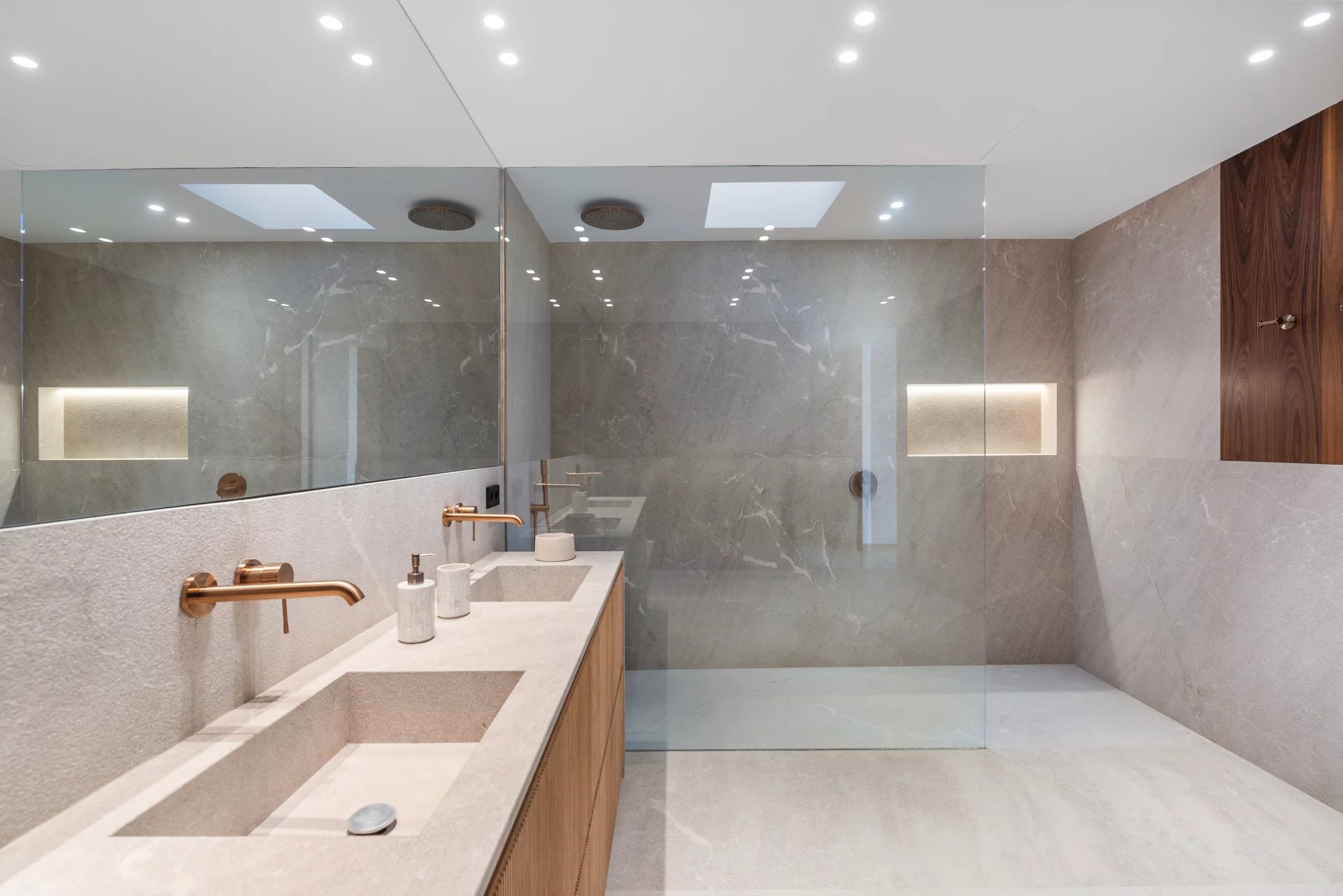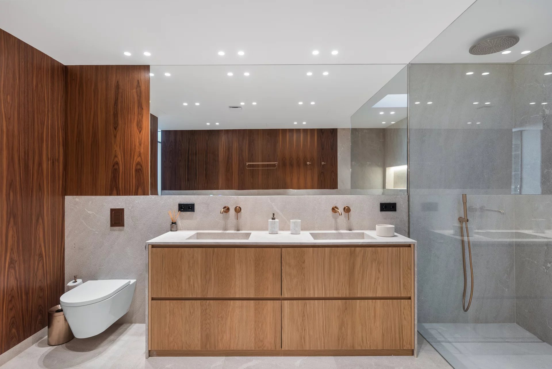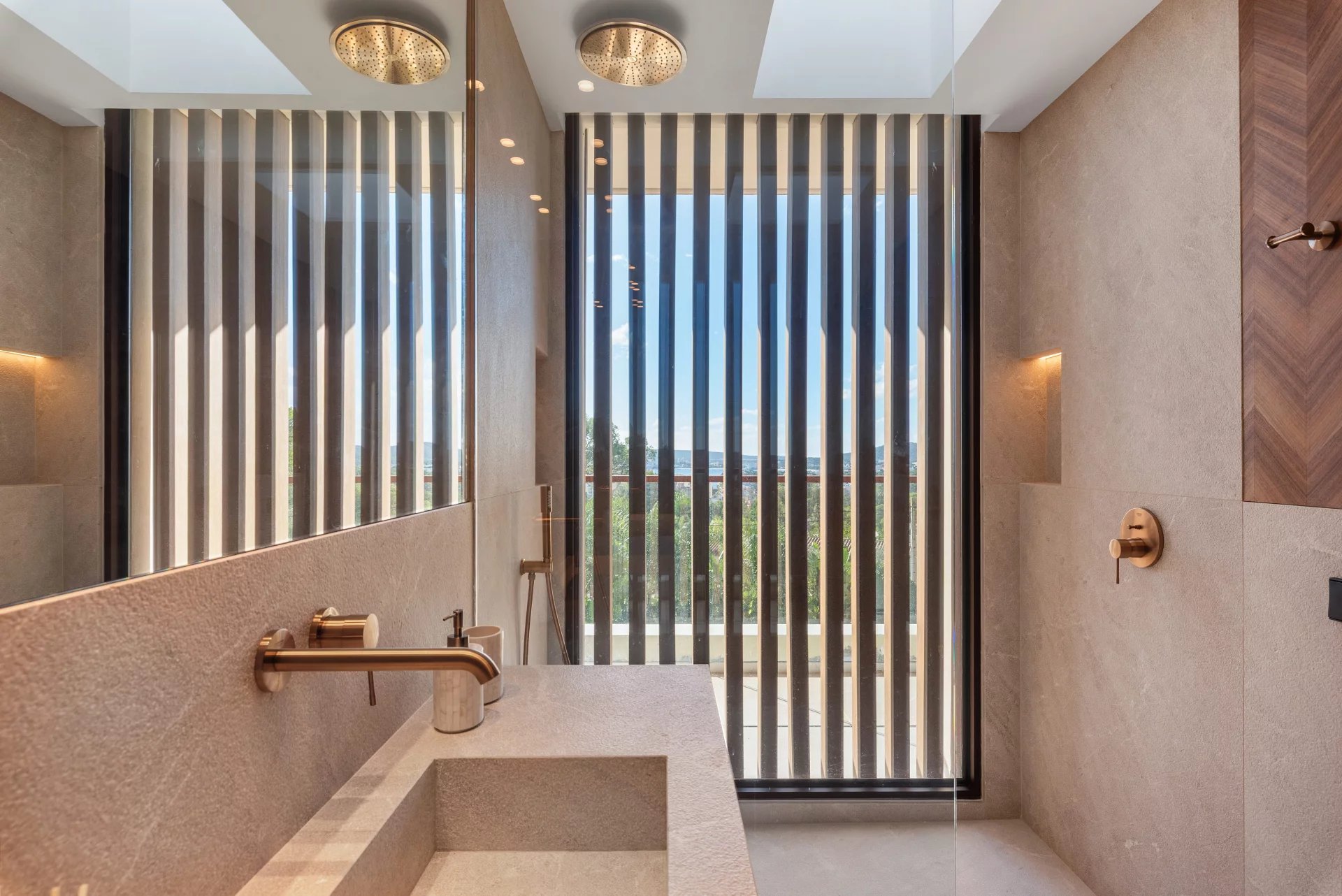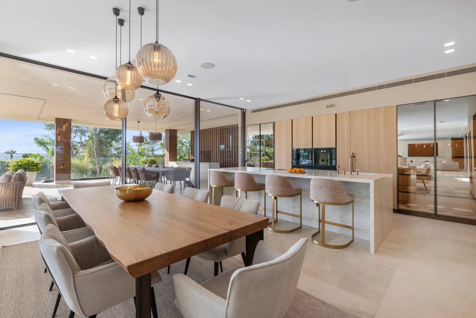 Stellen Sie sich vor, Sie wachen in einem der vier Schlafzimmer in der obersten Etage auf und haben einen ungehinderten Panoramablick auf das Meer, der sich bis zum Horizont erstreckt und durch die Südausrichtung in natürliches Licht getaucht wird. Im Erdgeschoss befindet sich ein spezielles Schlafzimmer mit direktem Zugang zu einer privaten Terrasse, ideal für Momente der Besinnung oder ein Frühstück bei Sonnenaufgang, während im unteren Stockwerk zwei weitere Suiten mit eigenem Bad untergebracht sind, ideal für Gäste, die absolute Unabhängigkeit suchen. Die Aufteilung wurde von einem Team von Designexperten sorgfältig geplant, wobei der fließende Raum, die lichtdurchflutete Geräumigkeit und die tadellose Privatsphäre im Vordergrund standen, was diese Villa zu einem persönlichen Rückzugsort inmitten des mallorquinischen Glamours macht.