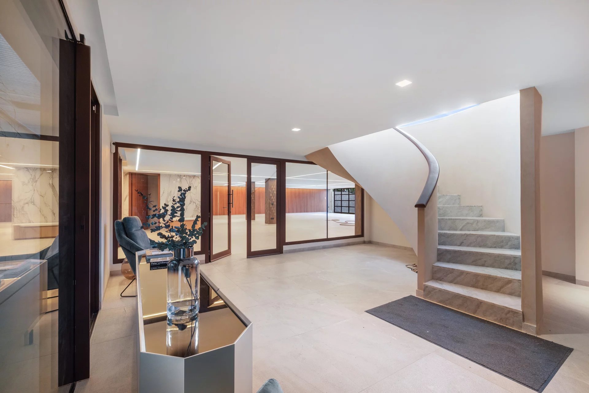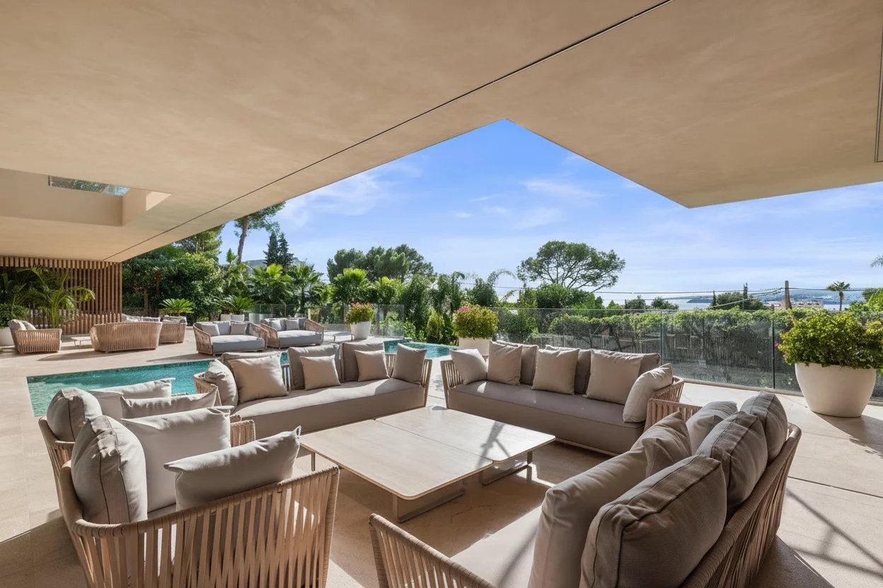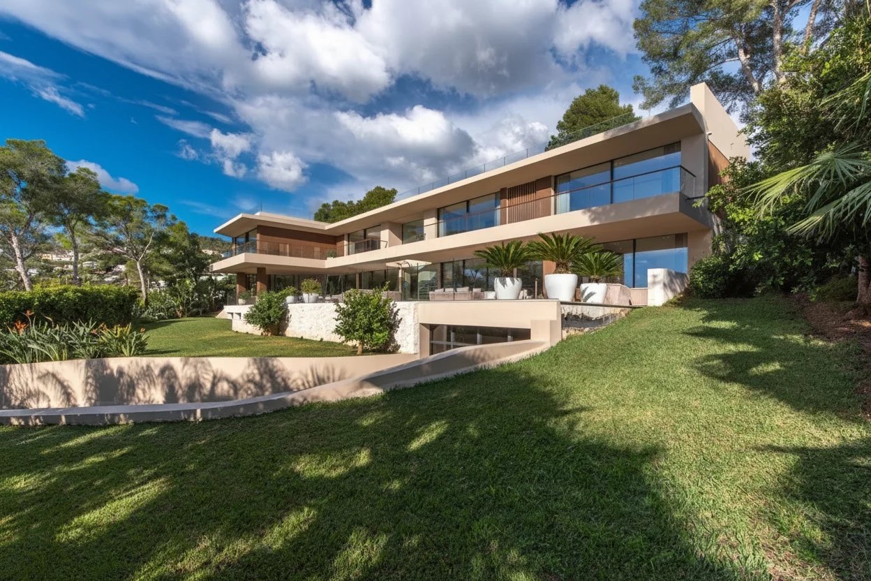Im Herzen von Mallorcas begehrter Südwestküste steht diese Luxusvilla in der prestigeträchtigen Gegend von Portals Nous, nur einen kurzen Spaziergang von der idyllischen Küste und dem ikonischen Yachthafen von Puerto Portals entfernt, wo das geschäftige Treiben der Luxusyachten mit der Ruhe des Mittelmeers verschmilzt. Mit einem großzügigen Grundstück von 2.300 m², das zuM Verweilen in absoluter Privatsphäre einlädt, beherbergt die Immobilie eine beeindruckende Wohnfläche von 1.366 m², die sich auf drei verschiedene Etagen verteilt, von denen jede für maximalen Komfort und zeitgenössische Eleganz ausgelegt ist. Vollständig mit modernen und raffinierten Designerstücken eingerichtet, bietet es sieben gemütliche Schlafzimmer und acht luxuriöse Badezimmer, in denen jeder Raum Raffinesse und Wärme ausstrahlt.