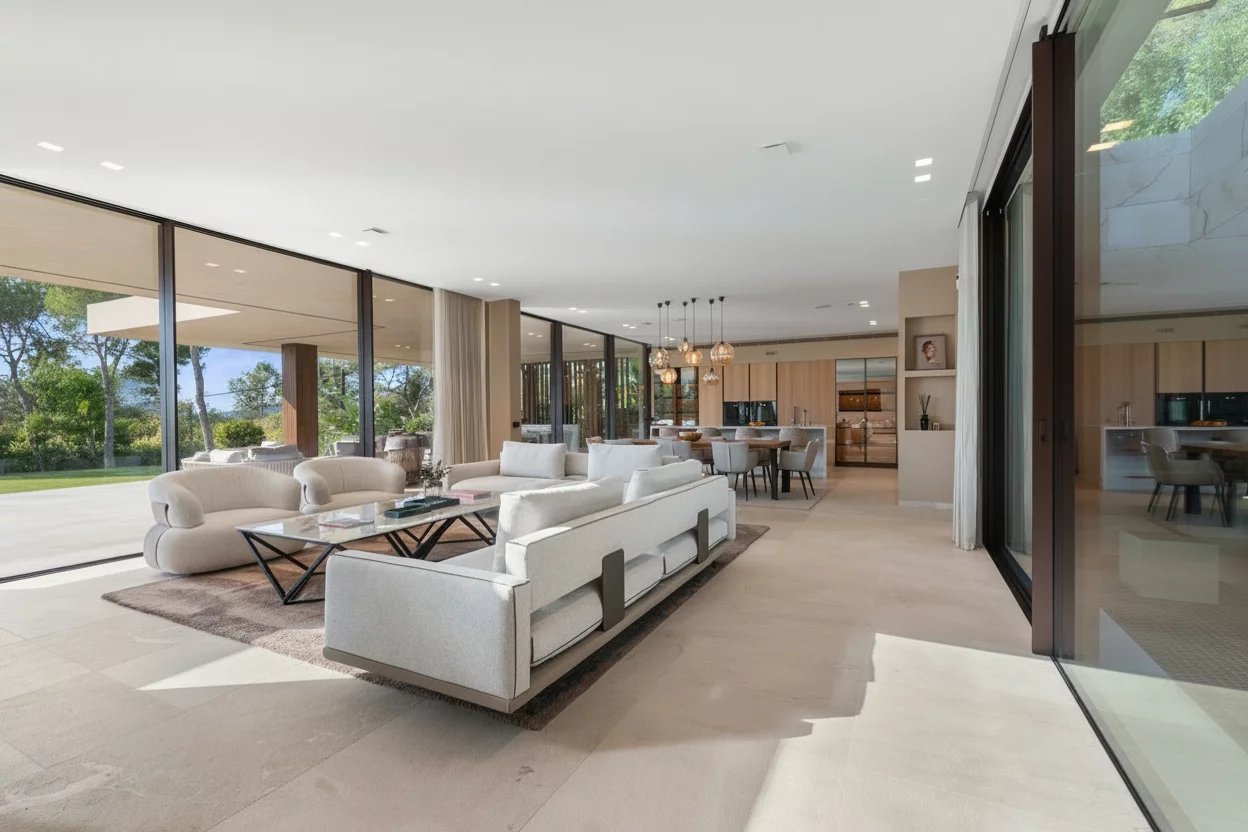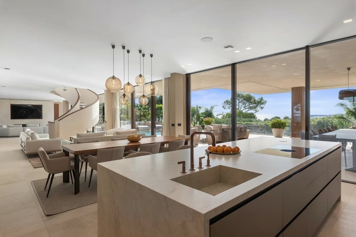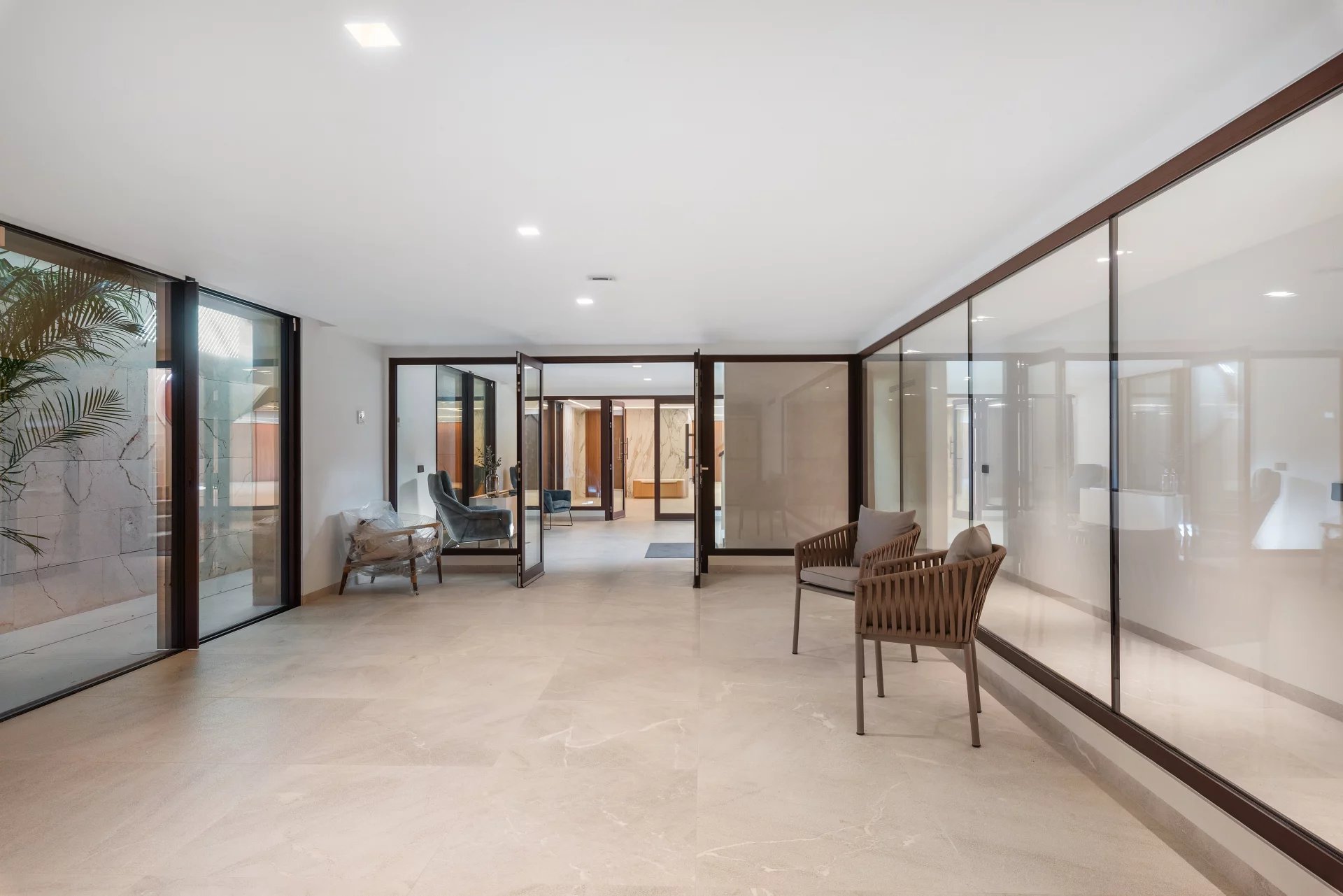 Im Herzen von Mallorcas begehrter Südwestküste steht diese Luxusvilla in der prestigeträchtigen Gegend von Portals Nous, nur einen kurzen Spaziergang von der idyllischen Küste und dem ikonischen Yachthafen von Puerto Portals entfernt, wo das geschäftige Treiben der Luxusyachten mit der Ruhe des Mittelmeers verschmilzt. Mit einem großzügigen Grundstück von 2.300 m², das zuM Verweilen in absoluter Privatsphäre einlädt, beherbergt die Immobilie eine beeindruckende Wohnfläche von 1.366 m², die sich auf drei verschiedene Etagen verteilt, von denen jede für maximalen Komfort und zeitgenössische Eleganz ausgelegt ist. Vollständig mit modernen und raffinierten Designerstücken eingerichtet, bietet es sieben gemütliche Schlafzimmer und acht luxuriöse Badezimmer, in denen jeder Raum Raffinesse und Wärme ausstrahlt.