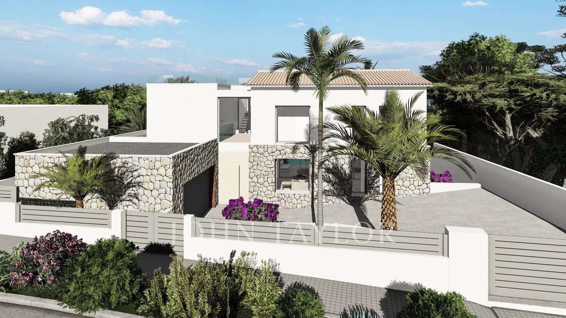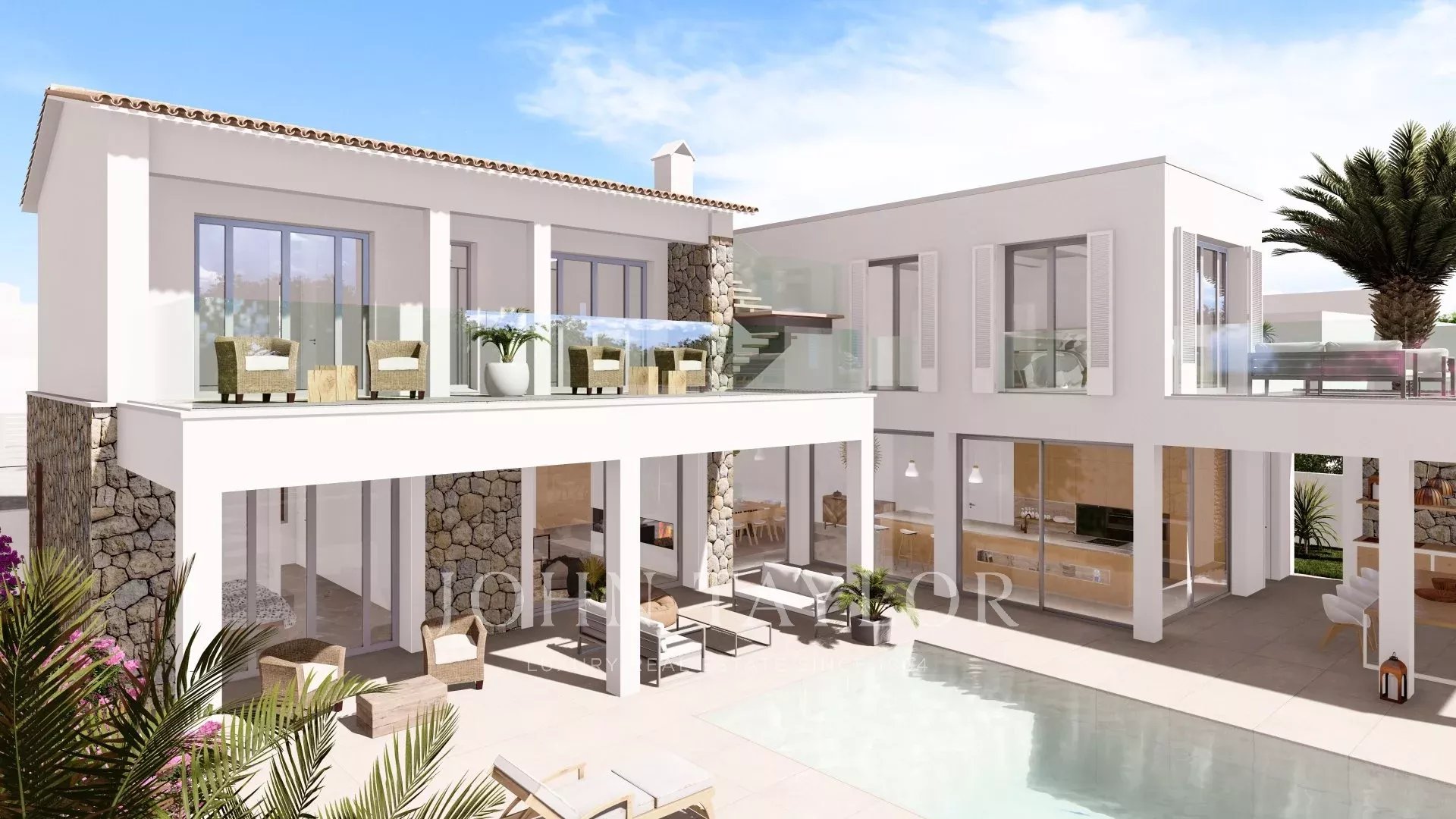 Neu gebaute Luxusvilla mit hervorragenden Außenbereichen in Santa Ponsa. Auf einem weitläufigen und sonnigen Grundstück von 1244 m2, das an einer Grünzone grenzt, in einer hervorragenden Lage in Santa Ponsa, nur wenige Gehminuten vom Strand, Golfplätze und der berühmte Port Adriano wird eine fantastische Villa von hoher Qualität in einem zeitgenössischen mediterranen Stil errichtet. Grosse offene lichtdurchfluteten Räume werden mit den typischen Elementen Mallorcas wie Stein kombiniert, um einen raffinierten und modernen Look zu schaffen und gleichzeitig den Charakter, die Wärme und die gemütliche Atmosphäre zu bewahren. Hochwertige Materialien und modernste Einrichtungen sorgen für ein sehr komfortables und repräsentatives Zuhause. Es ist ein ideales Zuhause für eine Familie, die viel Zeit in den Außenbereichen verbringt, die eine integrierte Erweiterung des Innenraums bilden, wie die Veranden, der Grillplatz, das Solarium und das herrliche Schwimmbad, das von einem großen, flachen Garten umgeben ist. Das Haus besteht aus einem Erdgeschoss, das ein geräumiges Wohnzimmer mit offener Küche, ein WC und ein Schlafzimmer mit Ankleide und Badezimmer en Suite bietet. Im Obergeschoss befinden sich 3 Schlafzimmer mit Bad en Suite, darunter eine große Master Suite. Von dieser Etage und von der Dachterrasse aus genießen Sie Meerblick. Im Untergeschoss gibt es einen Fitnessraum, ein Badezimmer und ein Hauswirtschaftsraum. Eine Garage für 2 Autos vervollständigt diese Immobilie. Derzeit besteht noch die Möglichkeit, das Projekt an Ihre Bedürfnisse und Wünsche anzupassen und Sie können an der Gestaltung Ihres Traumhauses auf Mallorca teilnehmen. Die Genehmigung ist schon erteilt und die Bauarbeiten könnten sofort angefangen werden.