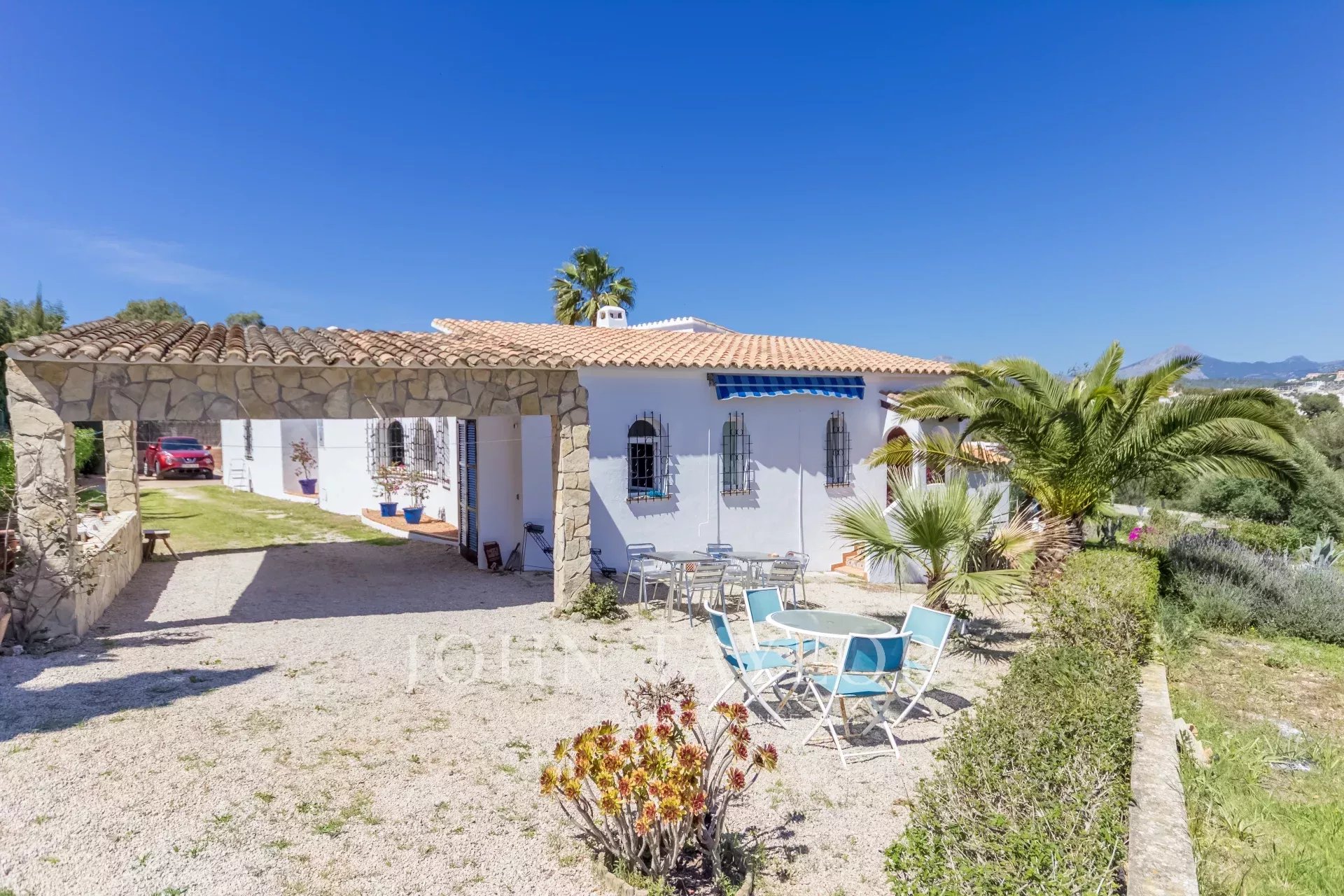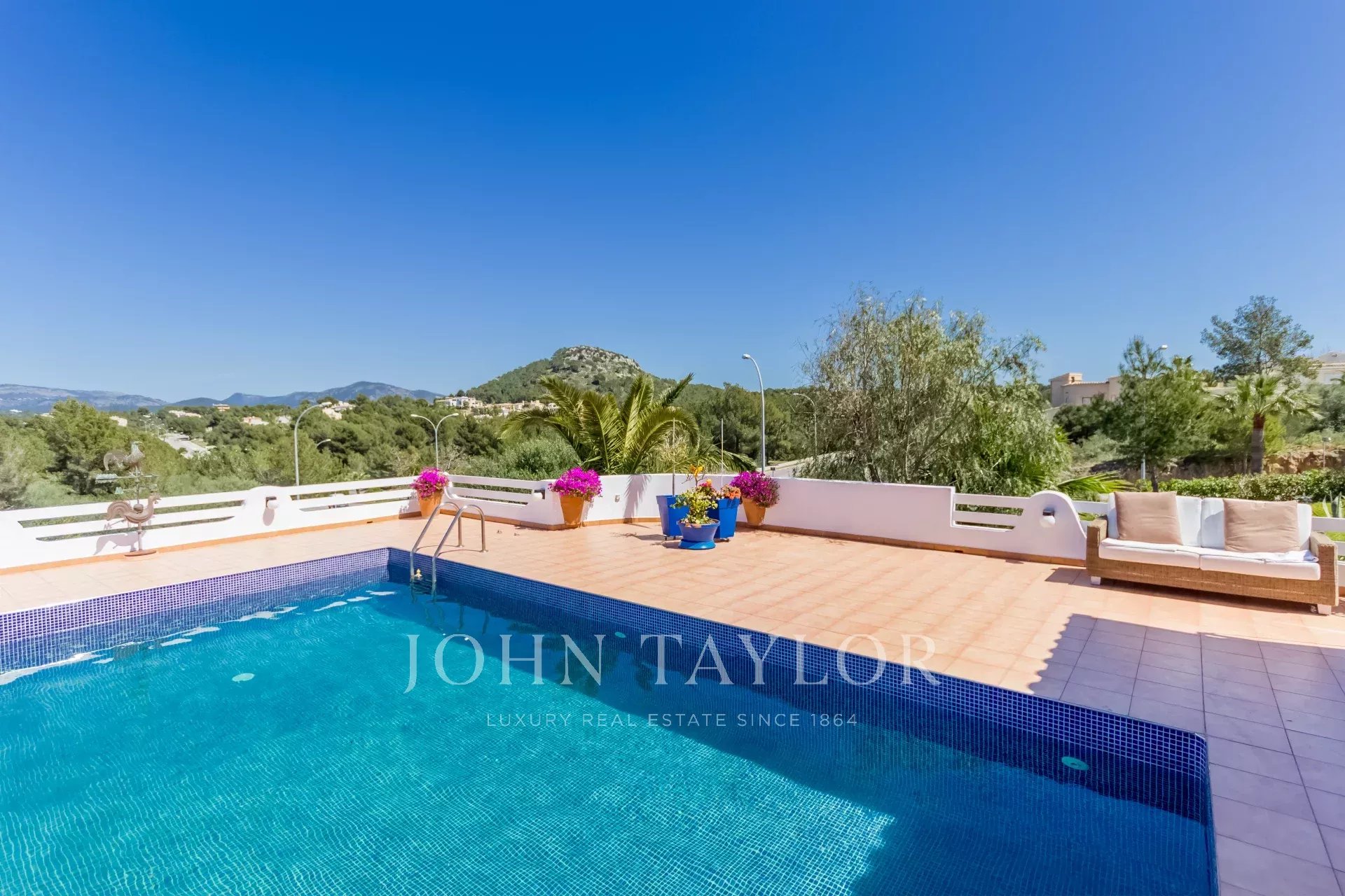 Diese einzigartige Familienimmobilie mit viel Platz im Innen- und Außenbereich wurde 1985 erbaut und befindet sich in der begehrten und zentralen Gegend von Nova Santa Ponsa. Mit einer kleinen Restaurierung stellt diese Immobilie eine ausgezeichnete Gelegenheit dar, auf nur einer Ebene zu leben. Die Villa besteht aus 3 bis 4 Schlafzimmern mit Einbauschränken und 4 Bädern, von denen 3 en suite sind. Das Anwesen befindet sich auf einem ca. 1370 qm großen Grundstück mit einer Wohnfläche von fast 310 qm, was genügend Platz für die ganze Familie bietet. Das geräumige und schöne Wohn-Esszimmer ist kreisförmig angelegt und bietet auf einer Fläche von ca. 135 qm Zugang zu den Schlafzimmern, der Küche, der Terrasse und dem Terrassenbereich mit dem Pool, von dem man einen spektakulären Blick bis zum Meer und den Bergen genießen kann. Im unteren Teil der Villa befindet sich ein renovierungsbedürftiger Raum, der auf Wunsch als Gästewohnung genutzt werden könnte. Es besteht auch die Möglichkeit, das Haus - Obergeschoss - mit einem von den Behörden akzeptierten Projekt zu erweitern.