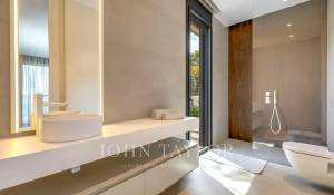 Die untere Etage dieser exquisiten Villa bietet Platz für zwei Schlafzimmer, von denen jedes über ein eigenes Badezimmer verfügt. Es gibt auch ein zweites Wohnzimmer, das bei Bedarf mühelos in ein fünftes Schlafzimmer umgewandelt werden kann. Eine großzügige Garage mit Platz für bis zu vier Autos vervollständigt dieses beeindruckende Anwesen. Die hochwertige und luxuriöse Ausstattung sorgt für ein erstklassiges Wohnerlebnis.