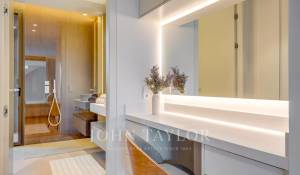 Im Hauptwohnbereich erwartet Sie ein großzügiges Wohnzimmer mit Panorama-Meerblick sowie eine hochwertige Küche mit Miele-Geräten. Von hier gelangen Sie zu einem bezaubernden BBQ-Bereich, der sich ideal für entspannte Mahlzeiten im Freien eignet. Dieser Bereich geht nahtlos in die Terrasse über, die wiederum harmonisch mit dem Schwimmbad verbunden ist. Auf dieser Ebene befindet sich auch das elegante Hauptschlafzimmer mit Blick auf das Meer. Es verfügt über ein eigenes Badezimmer und eine Sauna, von der aus Sie direkt zum Pool gelangen können. Zusätzlich gibt es ein Gästezimmer mit Gartenausgang auf dieser Etage.