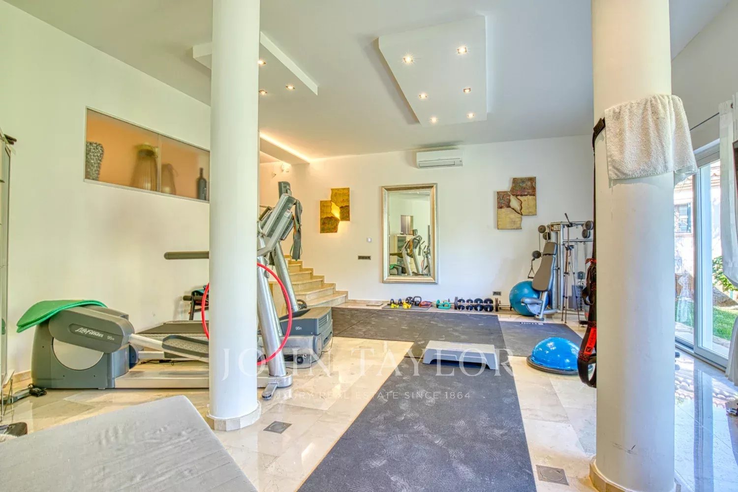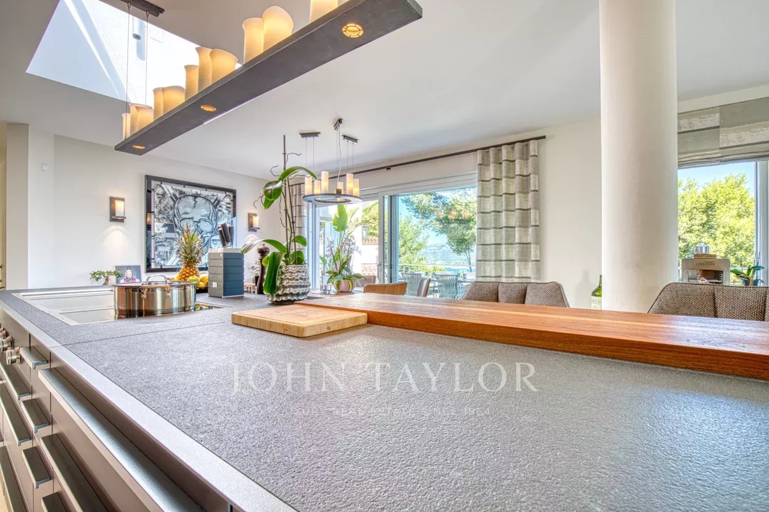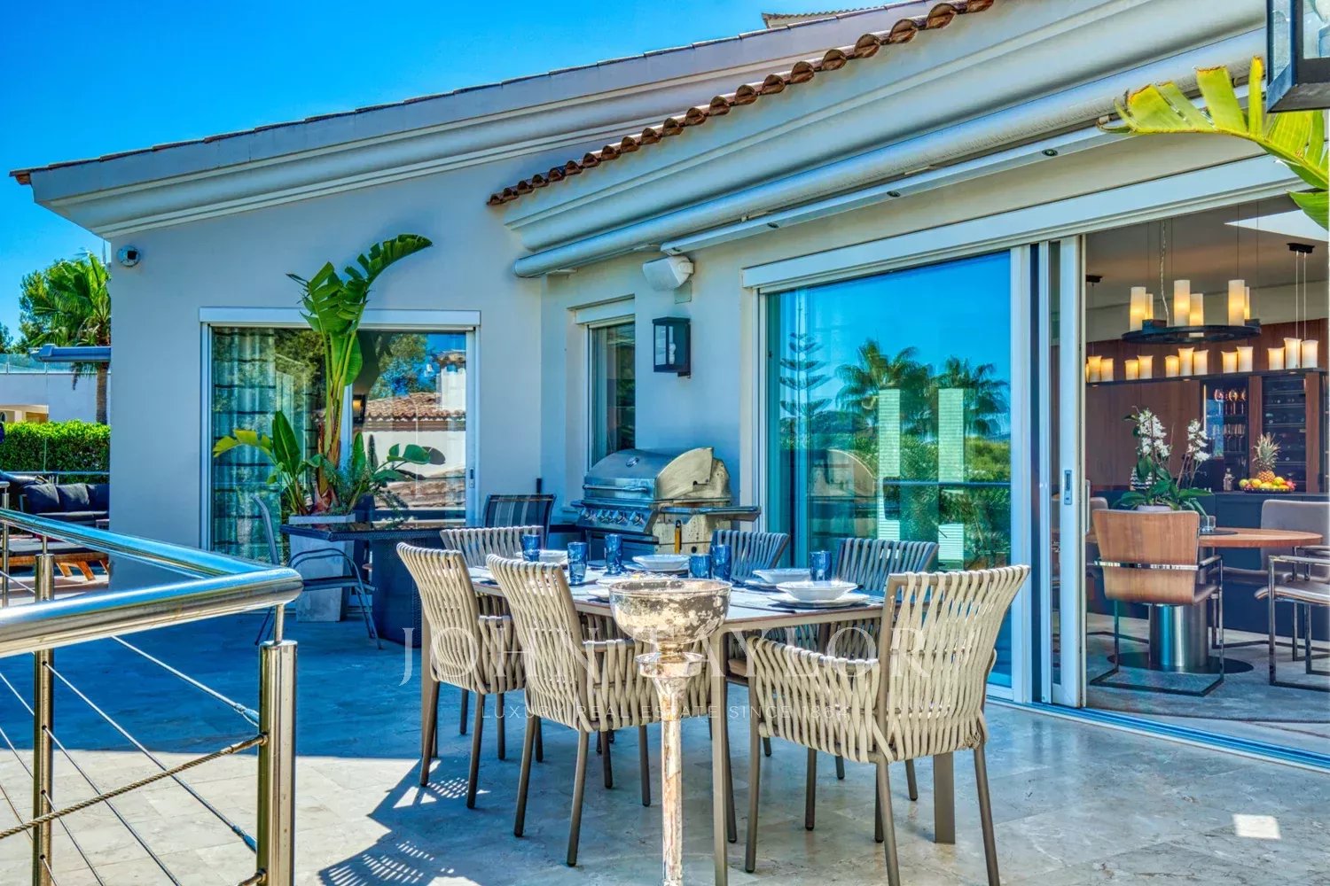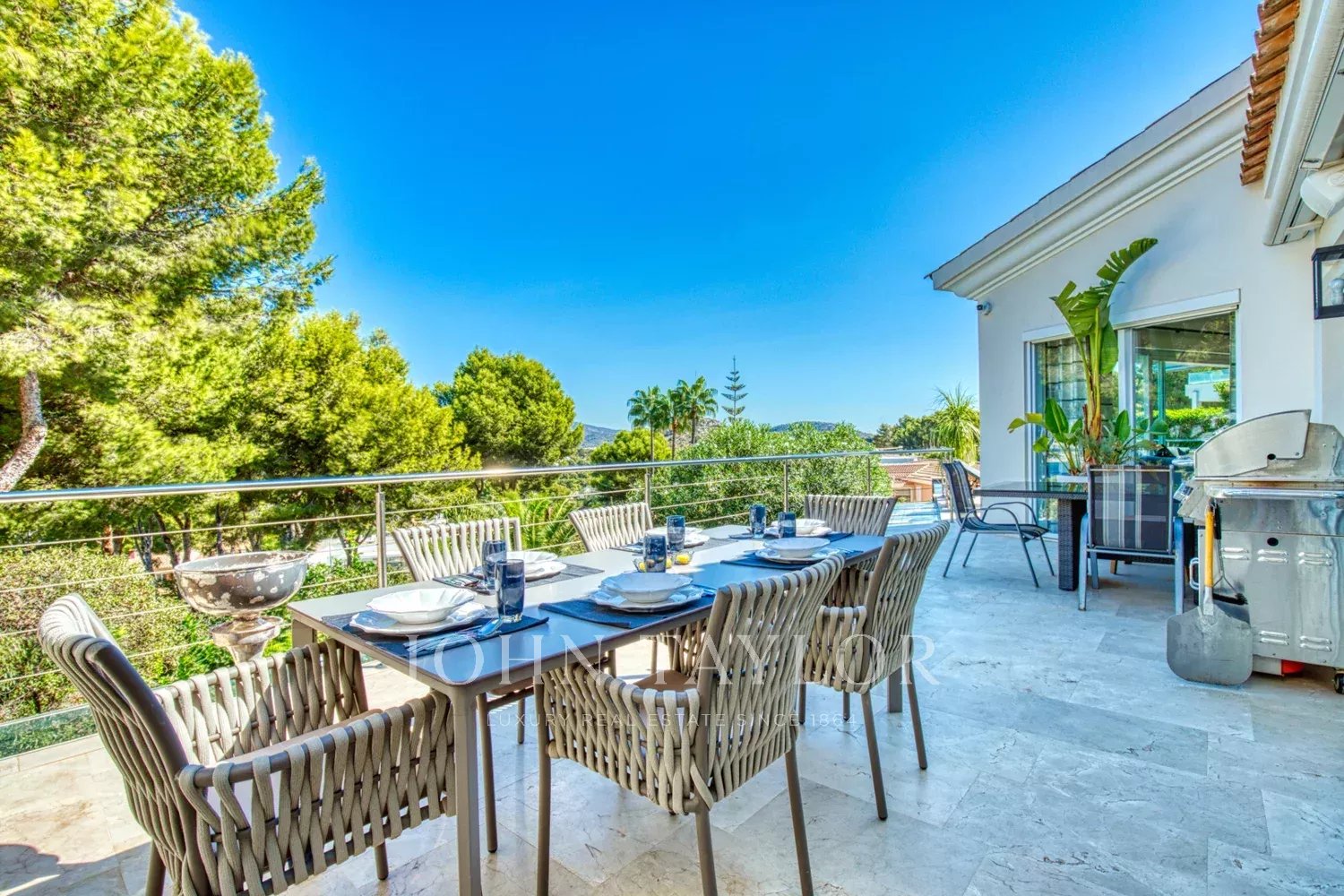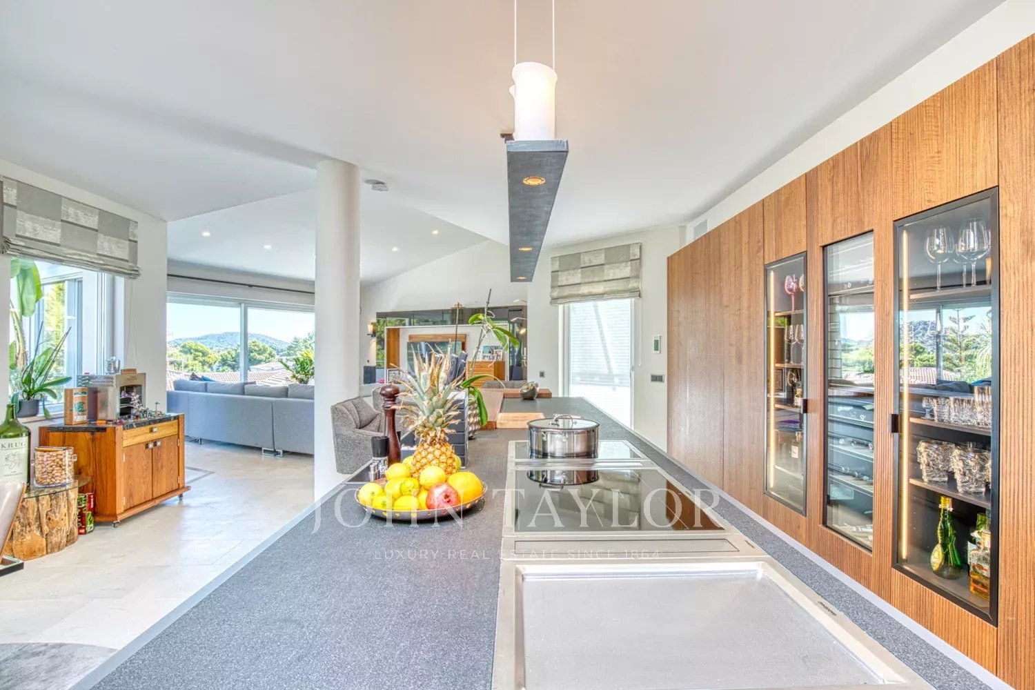 Diese attraktive Familienvilla mit Meerblick wurde Anfang 2017 nach den neuesten Baustandards mit hochwertigen Materialien renoviert. Es befindet sich in einer der besten und exklusivsten Wohngegenden in La Ensaimada. Auf der Eingangsebene befindet sich ein großes Wohn-Esszimmer mit offener Luxusküche der Marke Leicht mit Gaggenau und Miele-Geräten, angrenzend an eine Speisekammer und eine zweite Küche. Vom Wohnzimmer aus gelangt man im Erdgeschoss auf die große Terrasse mit Meerblick und den beheizten Swimmingpool. Außerdem befinden sich auf dieser Ebene ein Hauptschlafzimmer mit Bad und Ankleidezimmer, ein Abstellraum sowie ein Arbeitszimmer und ein Gäste-WC. Die untere Etage verfügt über 2 weitere Doppelschlafzimmer mit Bädern en suite, ein weiteres Badezimmer und einen Fitnessraum mit Sauna, der in ein viertes Schlafzimmer umgewandelt werden kann, sowie eine 38 m2 große Garage, die vom Haus aus zugänglich ist. Weitere Ausstattungsmerkmale sind: Klimaanlage w/k, Fußbodenheizung mit Wärmepumpe, doppelt verglaste Aluminiumfenster, Rollläden, computergesteuerte Hausanlage, Alarm- und Gegensprechanlage, Osmoseanlage, Entkalkungsanlage sowie Internet.