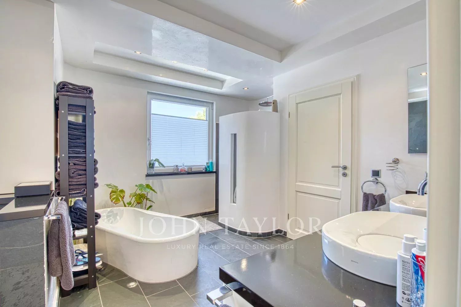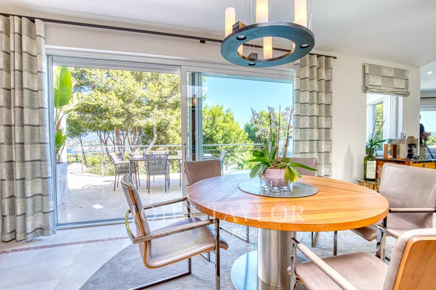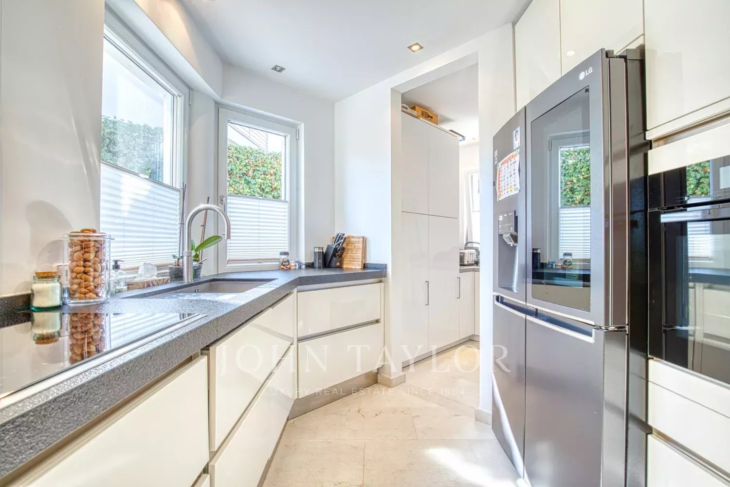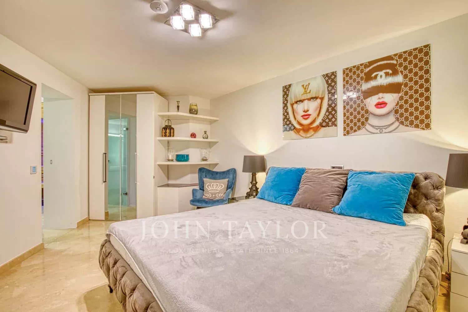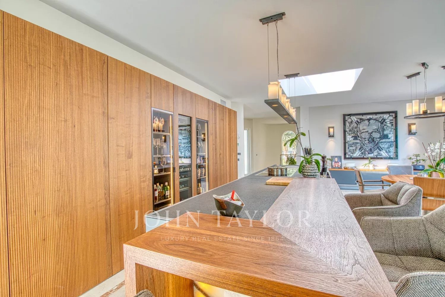 Diese attraktive Familienvilla mit Meerblick wurde Anfang 2017 nach den neuesten Baustandards mit hochwertigen Materialien renoviert. Es befindet sich in einer der besten und exklusivsten Wohngegenden in La Ensaimada. Auf der Eingangsebene befindet sich ein großes Wohn-Esszimmer mit offener Luxusküche der Marke Leicht mit Gaggenau und Miele-Geräten, angrenzend an eine Speisekammer und eine zweite Küche. Vom Wohnzimmer aus gelangt man im Erdgeschoss auf die große Terrasse mit Meerblick und den beheizten Swimmingpool. Außerdem befinden sich auf dieser Ebene ein Hauptschlafzimmer mit Bad und Ankleidezimmer, ein Abstellraum sowie ein Arbeitszimmer und ein Gäste-WC. Die untere Etage verfügt über 2 weitere Doppelschlafzimmer mit Bädern en suite, ein weiteres Badezimmer und einen Fitnessraum mit Sauna, der in ein viertes Schlafzimmer umgewandelt werden kann, sowie eine 38 m2 große Garage, die vom Haus aus zugänglich ist. Weitere Ausstattungsmerkmale sind: Klimaanlage w/k, Fußbodenheizung mit Wärmepumpe, doppelt verglaste Aluminiumfenster, Rollläden, computergesteuerte Hausanlage, Alarm- und Gegensprechanlage, Osmoseanlage, Entkalkungsanlage sowie Internet.