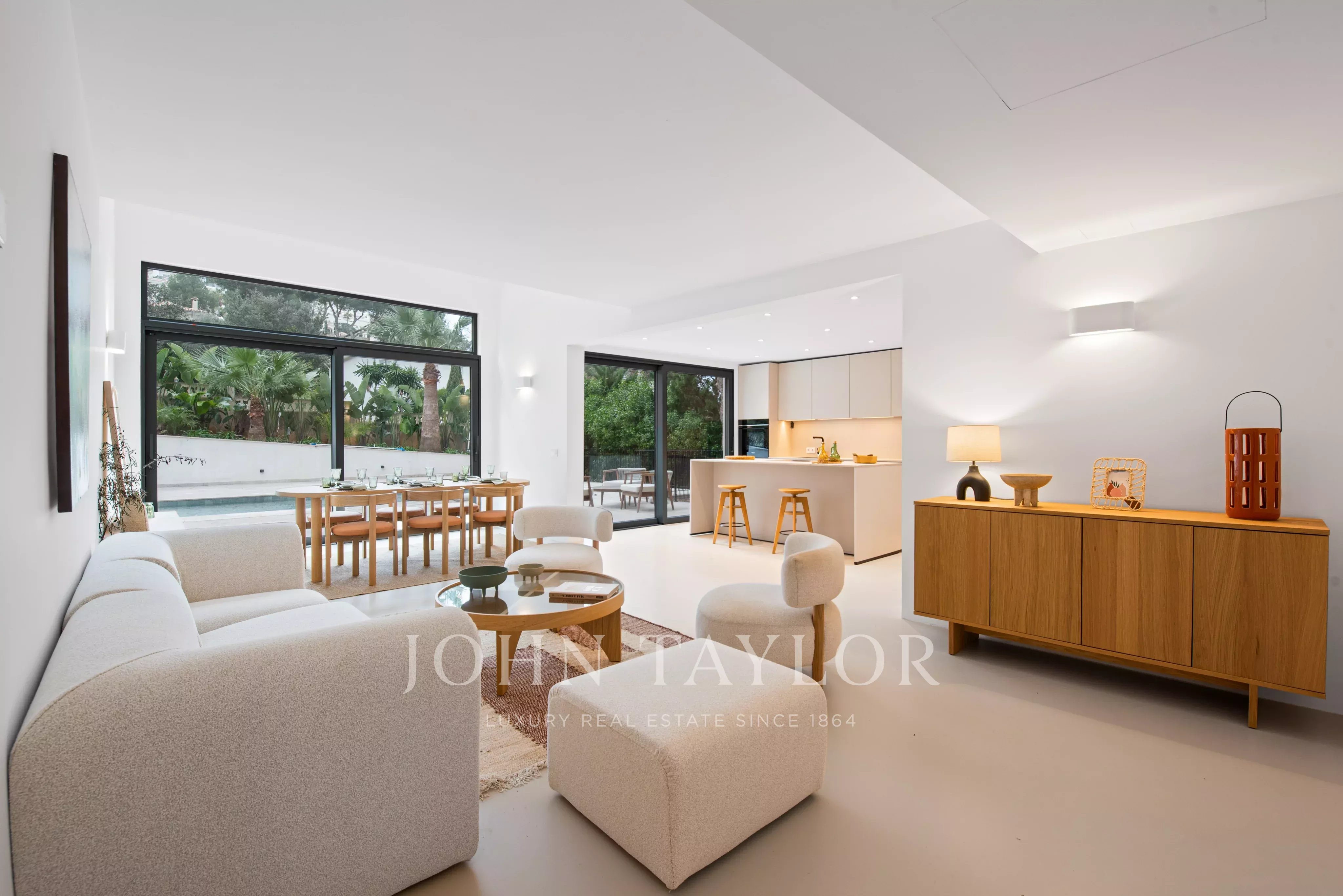 Nova Santa Ponsa, im Südwesten Mallorcas gelegen, ist ein exklusiver Rückzugsort für alle, die einen eleganten Lebensstil in einer natürlichen Umgebung suchen. Diese privilegierte Gegend besticht durch ihre prächtigen, hochwertigen Villen mit Panoramablick auf das Meer und die üppige Vegetation. Das Herz von Nova Santa Ponsa ist der von Philippe Starck entworfene Yachthafen Port Adriano, in dem Luxusyachten liegen. Die unberührten Strände laden zum Entspannen und Wassersport ein, während die Golfplätze ein erstklassiges Golferlebnis bieten. Darüber hinaus bietet Nova Santa Ponsa Gourmet-Restaurants, exklusive Boutiquen, luxuriöse Spas und hervorragende Sporteinrichtungen und liegt in der Nähe des historischen Palmas mit seinem reichen kulturellen und kommerziellen Angebot.