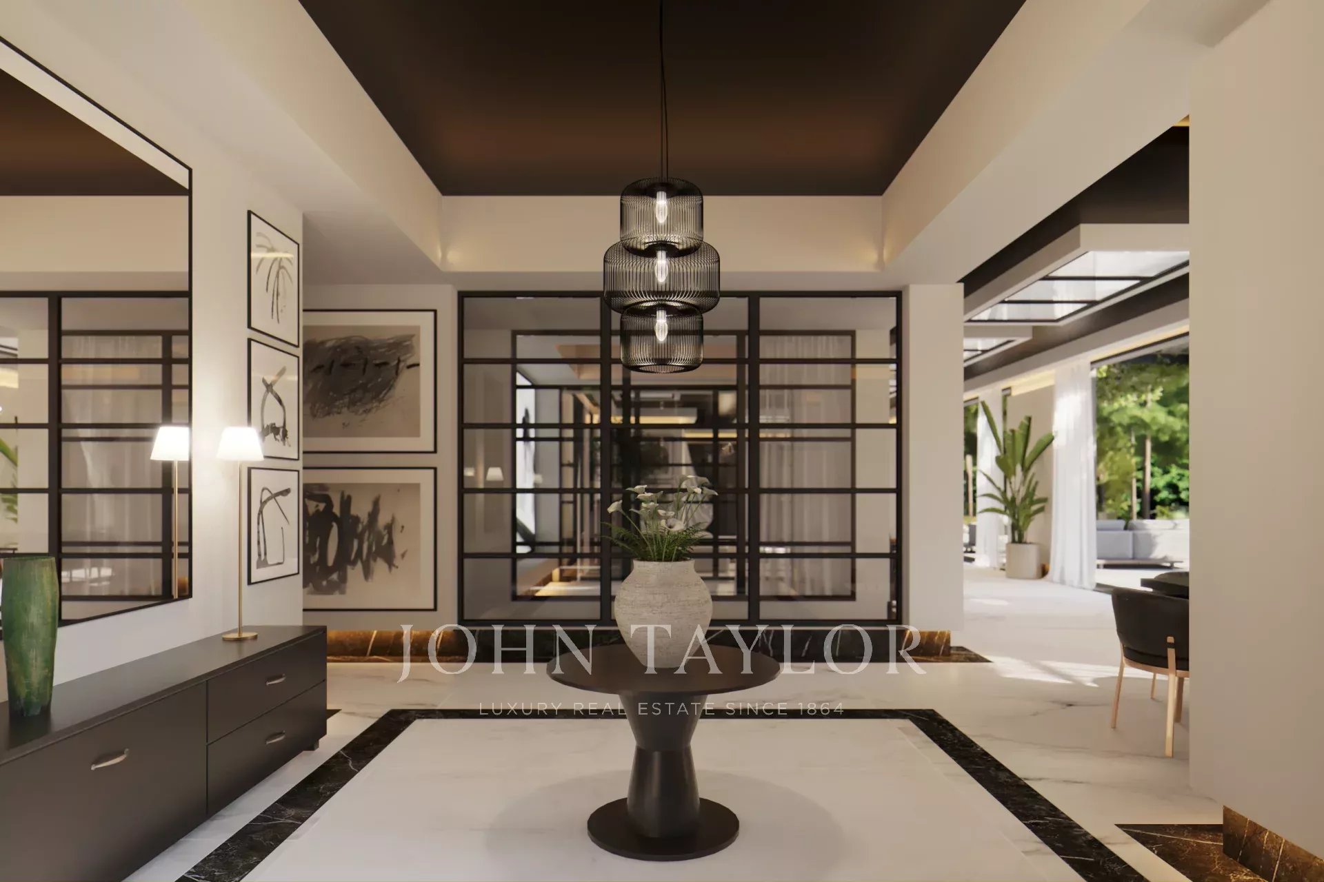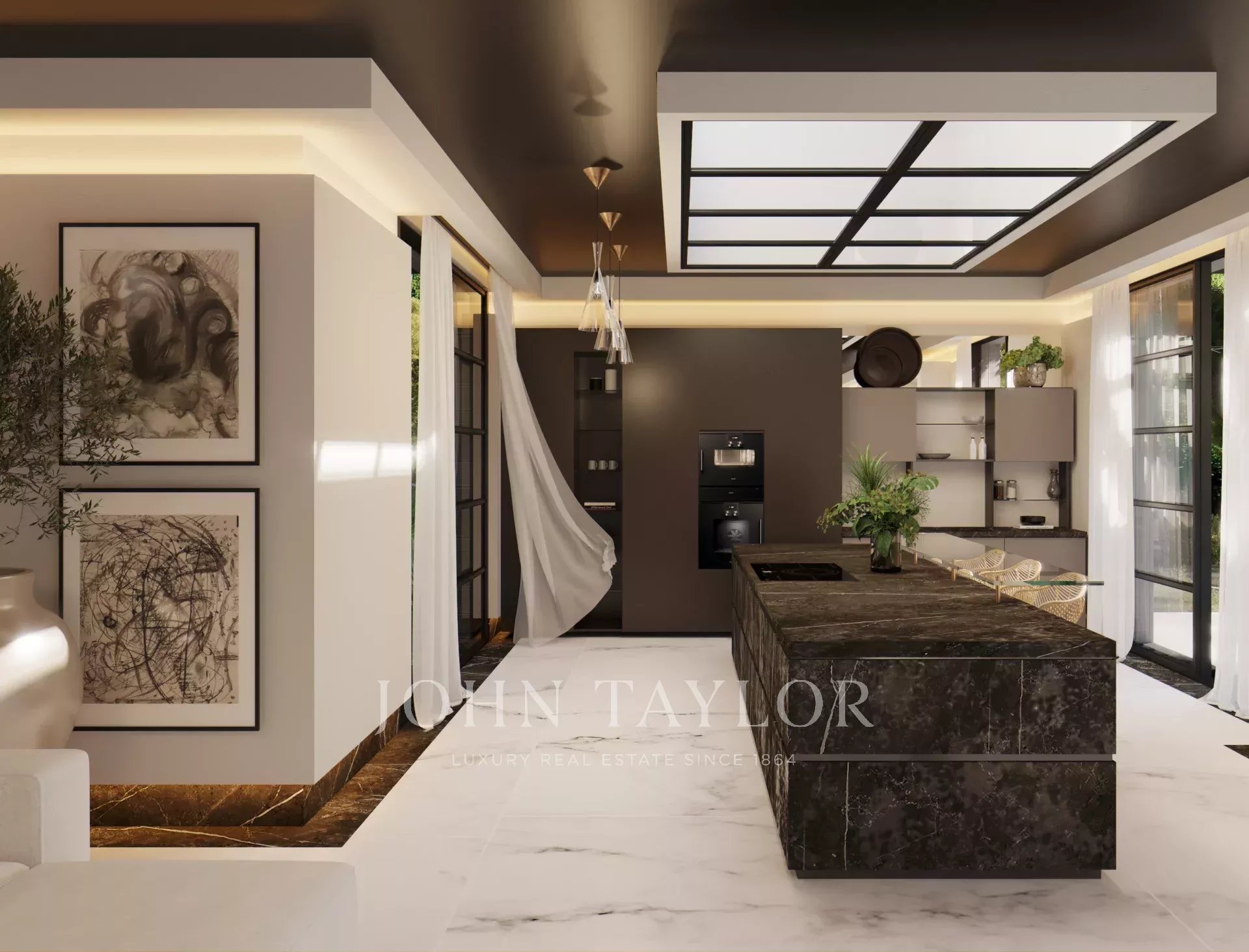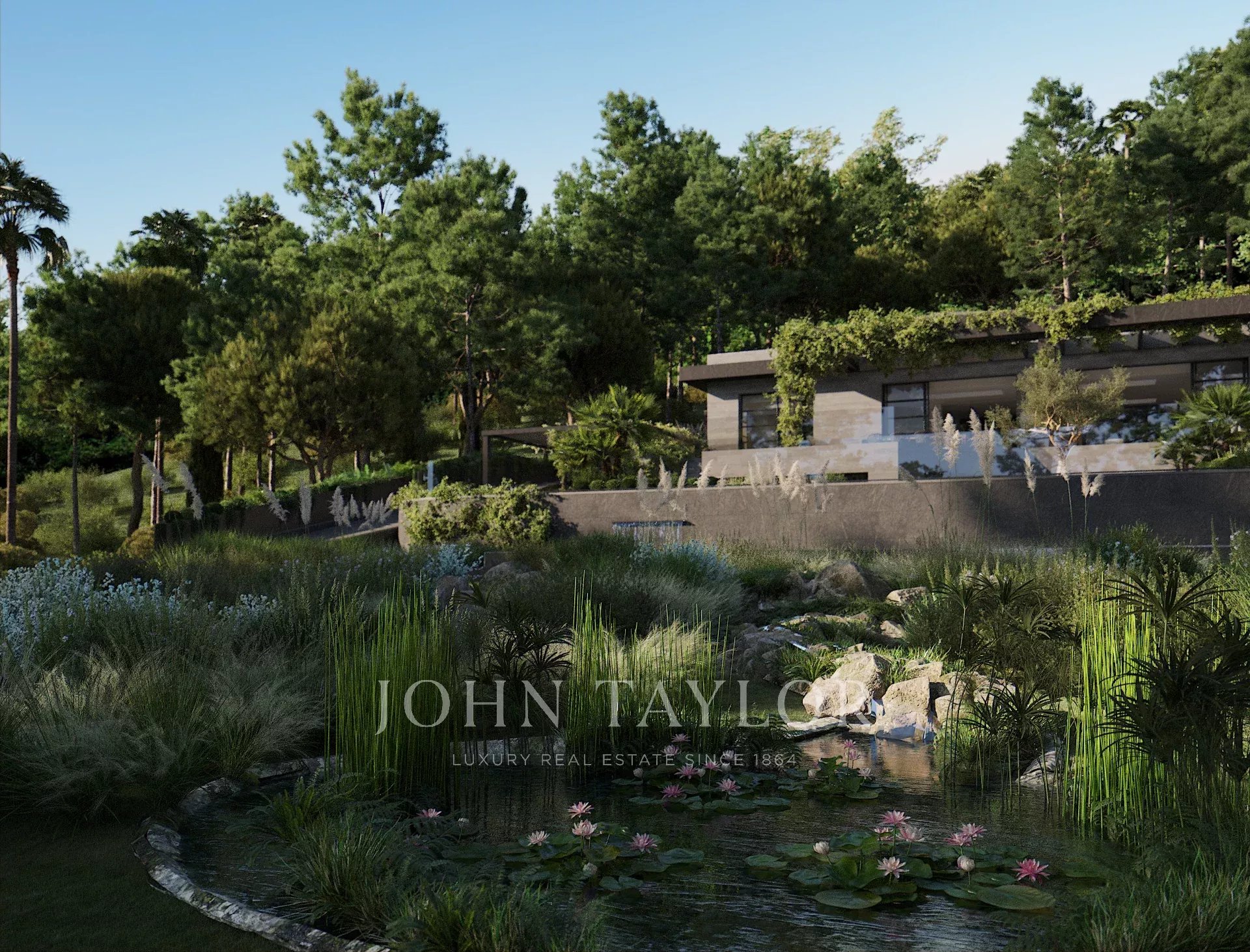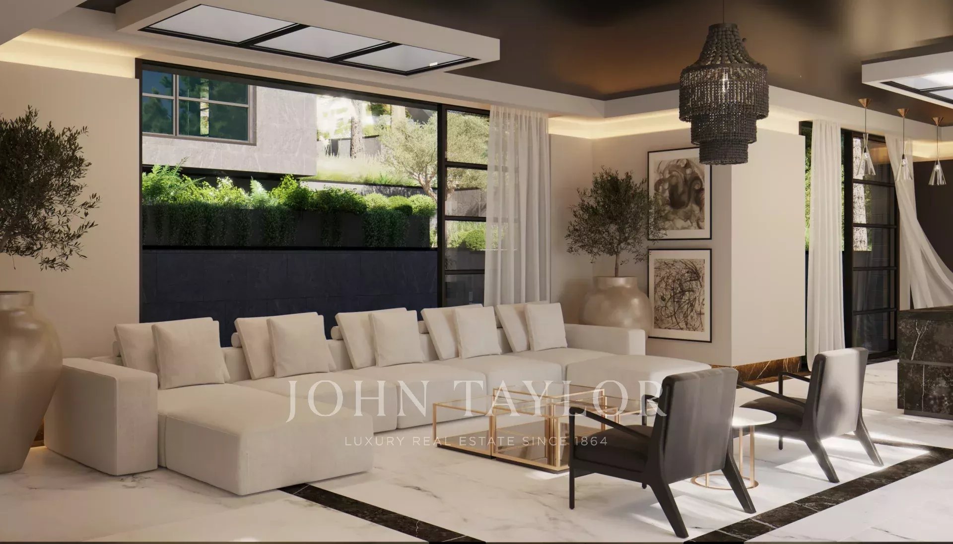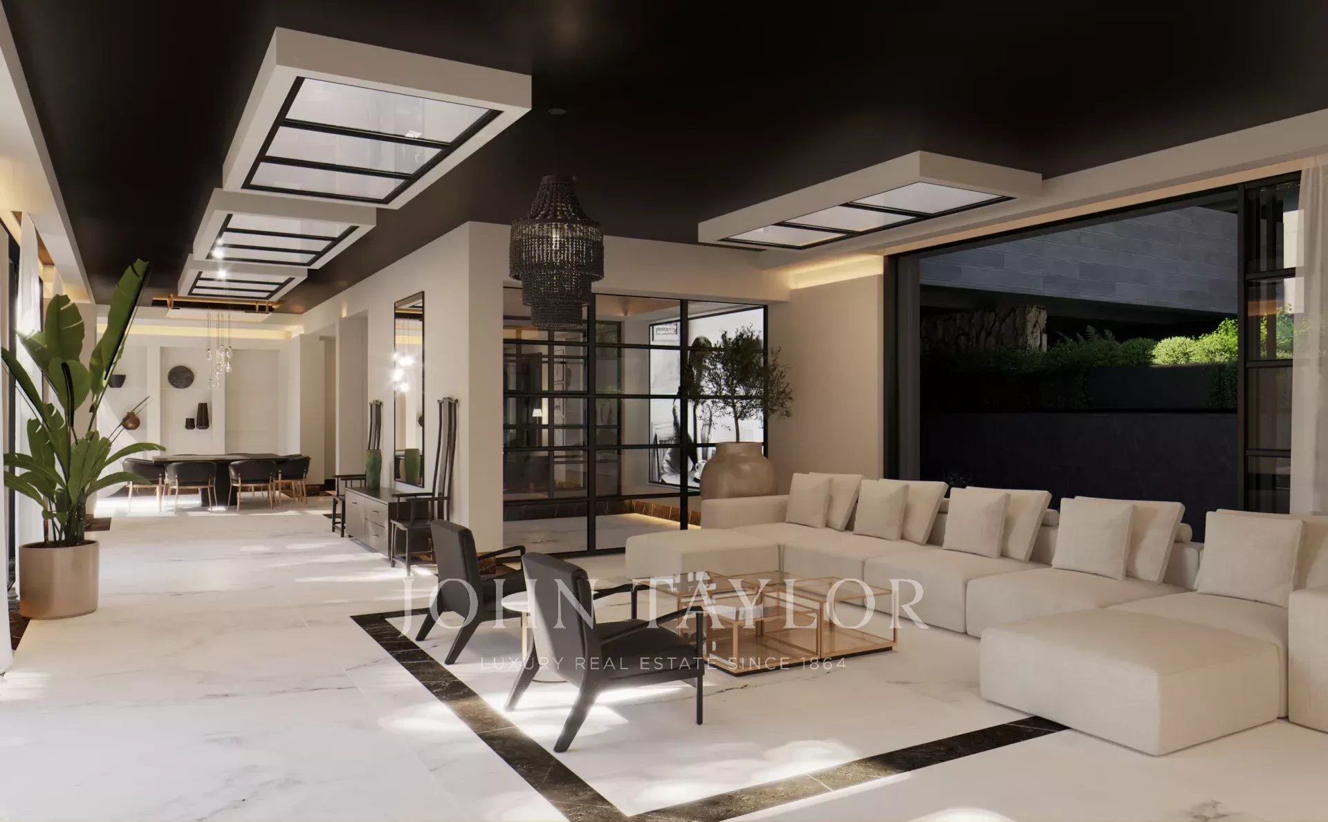 Entdecken Sie diese spektakuläre Villa mit 6 Schlafzimmern und 6 Bädern, die derzeit in der prestigeträchtigen Gegend von Santa Ponsa Golf gebaut wird. Auf einem großen Grundstück von 3.984 m² gelegen, wird das Anwesen 887 m² Wohnfläche bieten, sorgfältig verteilt auf mehrere miteinander verbundene Gebäude auf verschiedenen Ebenen. Die Villa kombiniert moderne Eleganz mit balinesisch inspiriertem Design und verfügt über einen großzügigen, offenen Wohn-, Ess- und Küchenbereich, der eine nahtlose Verbindung zwischen Innen- und Außenbereich schafft. Großzügige Terrassen bieten einen Panoramablick auf die Berge und verstärken das ruhige Ambiente des Anwesens. Zu den weiteren Ausstattungsmerkmalen gehören eine Garage für mehrere Fahrzeuge und eine hochwertige Verarbeitung. Die Fertigstellung ist für 2025 geplant und bietet eine einzigartige Gelegenheit, eine exklusive Luxusvilla in einer der begehrtesten Lagen Mallorcas zu erwerben.