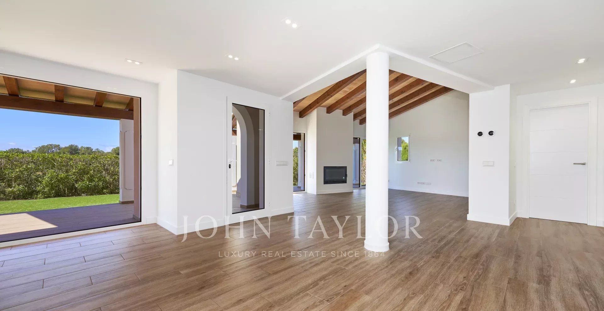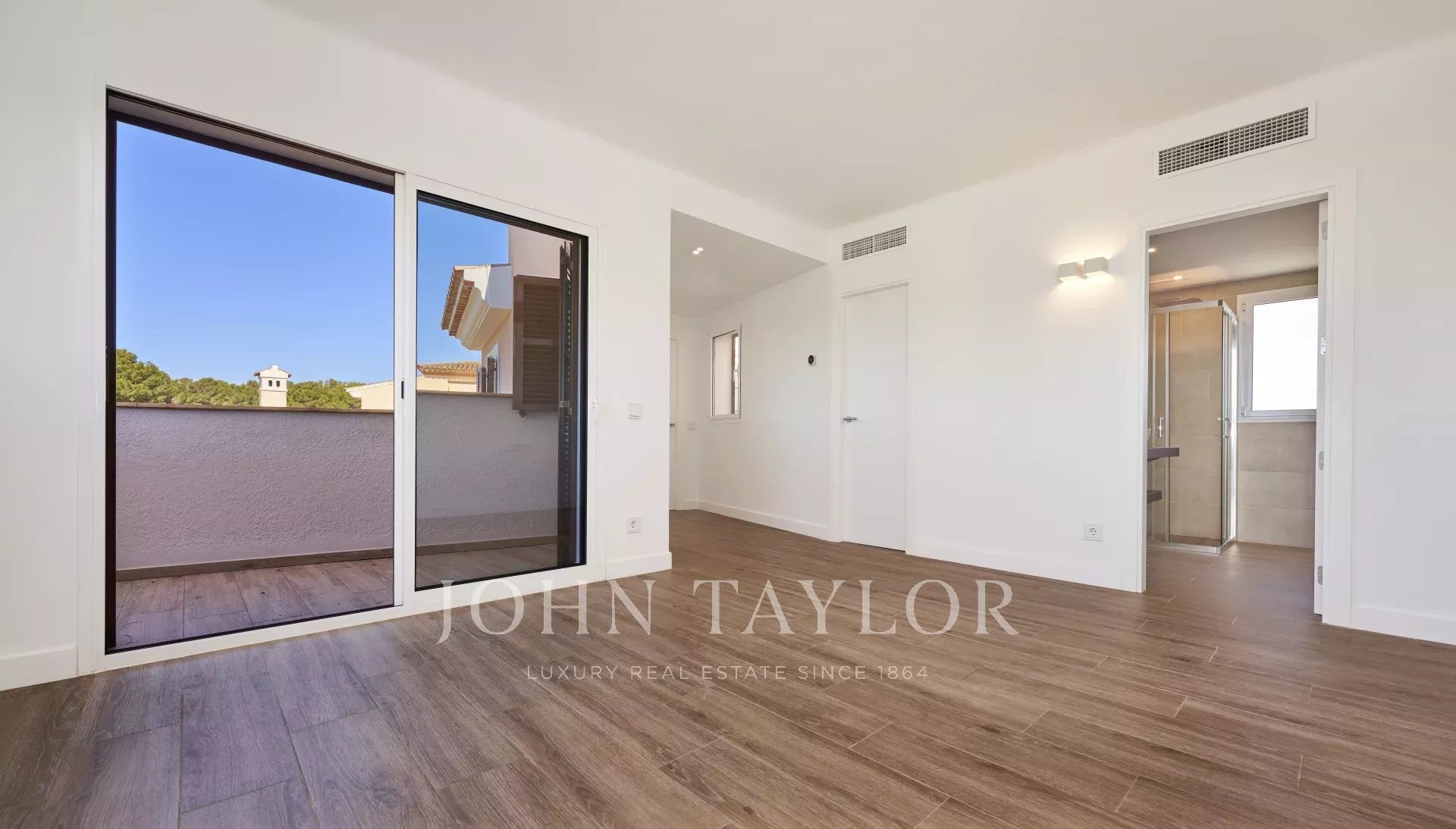 Entdecken Sie dieses beeindruckende Luxushaus in Santa Ponsa direkt neben dem Golfplatz. Mit einer Wohnfläche von 216 m² bietet das Haus ein geräumiges Wohn- und Esszimmer, eine moderne Küche und drei komfortable Schlafzimmer. Genug Platz und ein perfektes Ambiente, um in Ruhe mit der Familie oder mit Freunden zu genießen. Die mediterrane Architektur wird durch eine hochwertige Ausstattung ergänzt, darunter Aluminiumfenster und Doppelverglasung für eine optimale Isolierung.