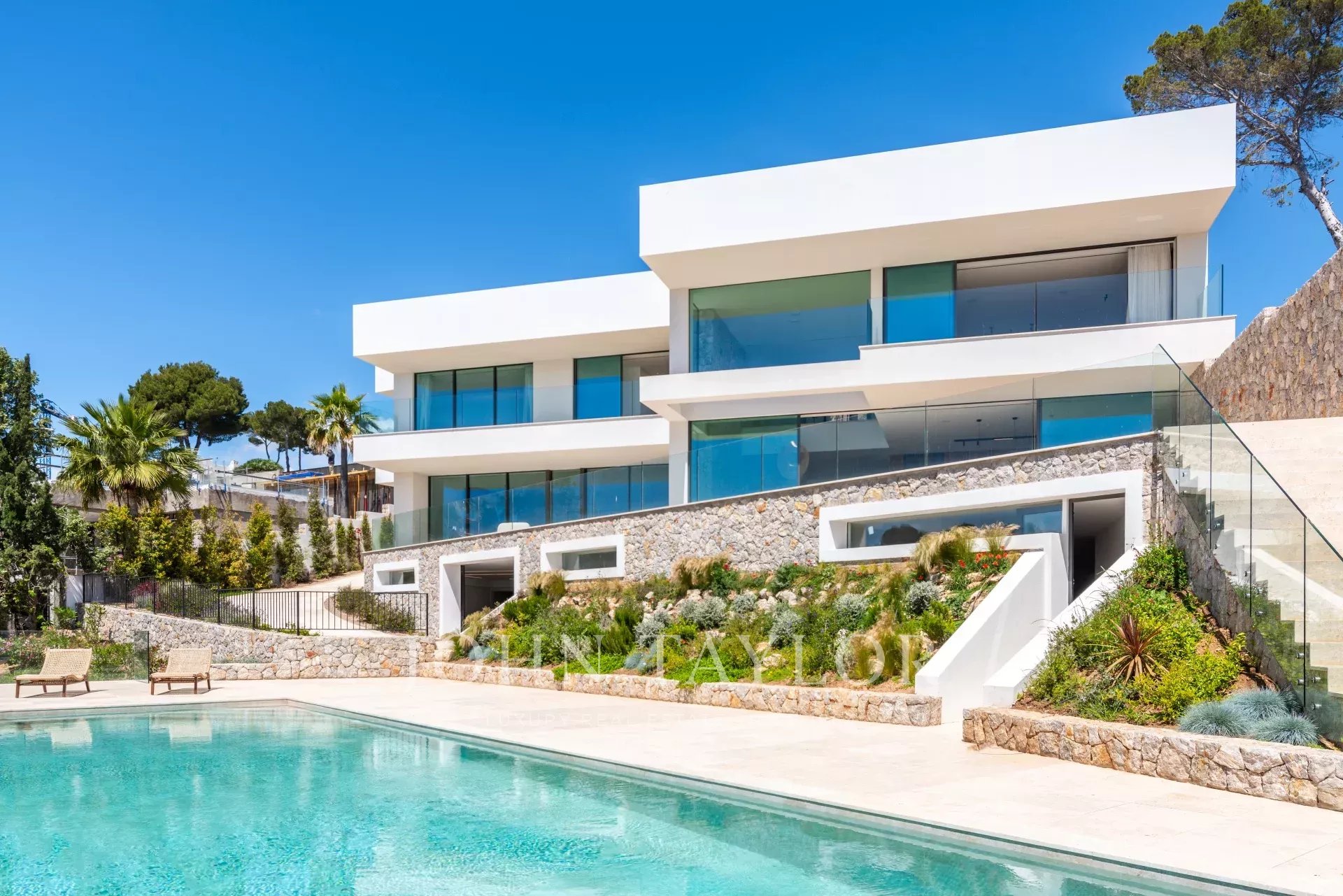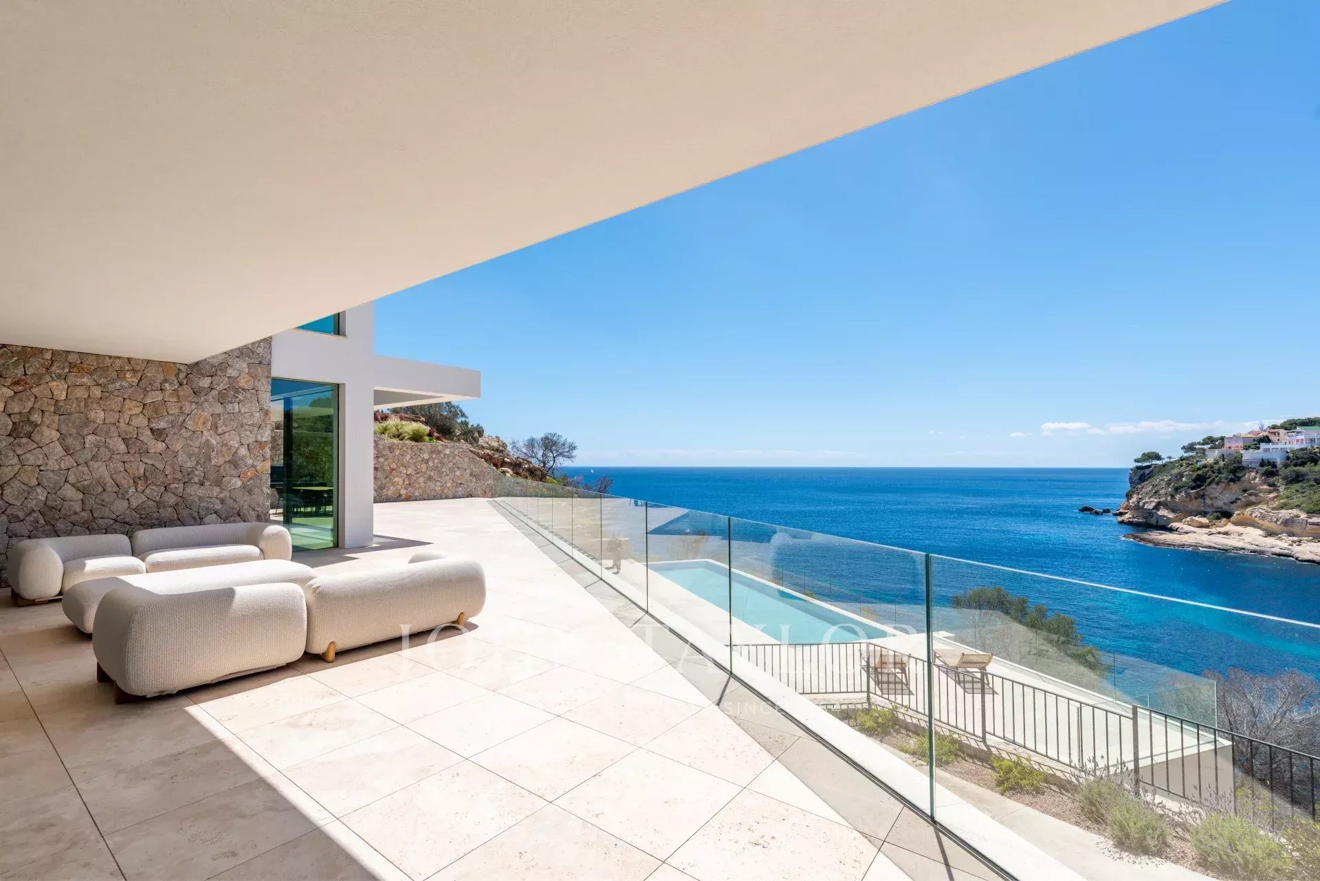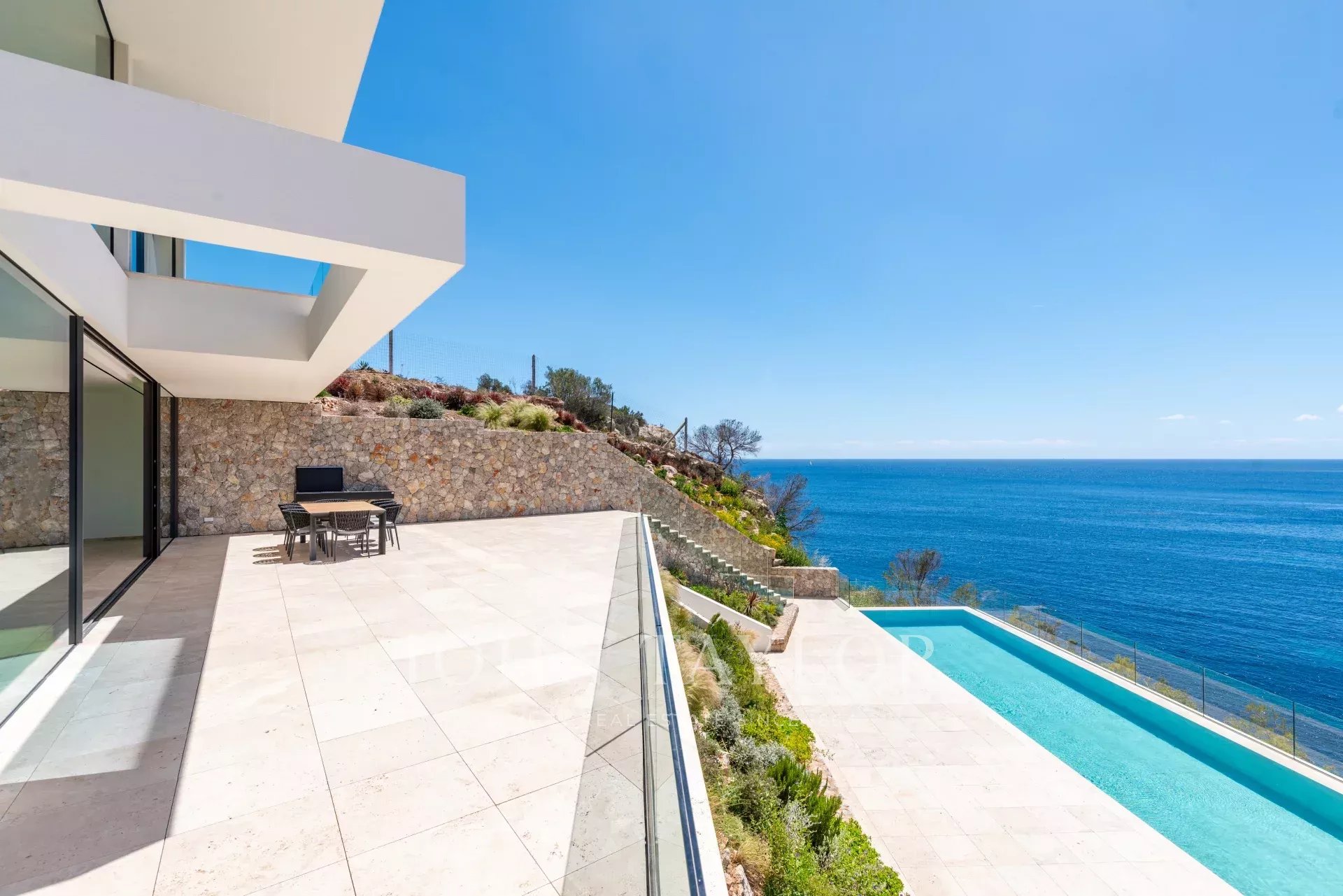 Erleben Sie den Inbegriff von purem Luxus in dieser außergewöhnlichen Neubauvilla in der ruhigen Wohngegend von Sol de Mallorca! Treten Sie ein in dieses Meisterwerk an der Küste, das einen Lebensstil wie kein anderer bietet! Diese atemberaubende, makellos gestaltete Residenz in erster Reihe mit unvergleichlichem Meerblick definiert Luxusimmobilien an der Küste Mallorcas neu. Mit über 1000 m2 bebauter Fläche auf einem Grundstück von 2142 m2 bietet dieses unglaubliche Haus 3 Etagen, die durch einen Aufzug verbunden sind. Beim Betreten der Eingangsebene in der oberen Etage werden Sie von einem atemberaubenden Blick auf das Mittelmeer begrüßt. Auf dieser Etage befindet sich die prächtige Master-Suite mit 2 Ankleidezimmern und einem durchdachten, offen gestalteten Badezimmer. Jeden Morgen wachen Sie mit den ständig wechselnden Farben des Meeres zu Ihren Füßen auf. Auf dieser Etage befinden sich zudem 3 weitere Schlafzimmer, jedes mit eigenem Bad. Über eine schöne Treppe gelangt man in den lichtdurchfluteten Hauptwohnbereich, der weitläufig, aber gleichzeitig so gestaltet ist, dass er klar getrennte Räume für verschiedene Momente bietet, sei es für einen gemütlichen Abend am Kamin, ein formelles Abendessen, eine lebhafte Grillparty mit Familie und Freunden oder einfach zum Entspannen auf der Terrasse. Das Untergeschoss des Hauses bietet eine Garage für mindestens 7 Autos und darüber hinaus große Räume, die als Fitnessraum, Heimkino oder Spielzimmer für Kinder genutzt werden können. Zahlreiche Veranden und offene Terrassen, um die Sonne rund um den beeindruckenden Infinity-Pool zu genießen, vervollständigen diese einzigartige Immobilie. Wenn Sie bereit sind, Ihre Lebenserfahrung auf ein neues Niveau zu heben und diesen unvergleichlichen Lebensstil zu Ihrem eigenen zu machen, kontaktieren Sie uns noch heute, um diesen Traum wahr werden zu lassen!