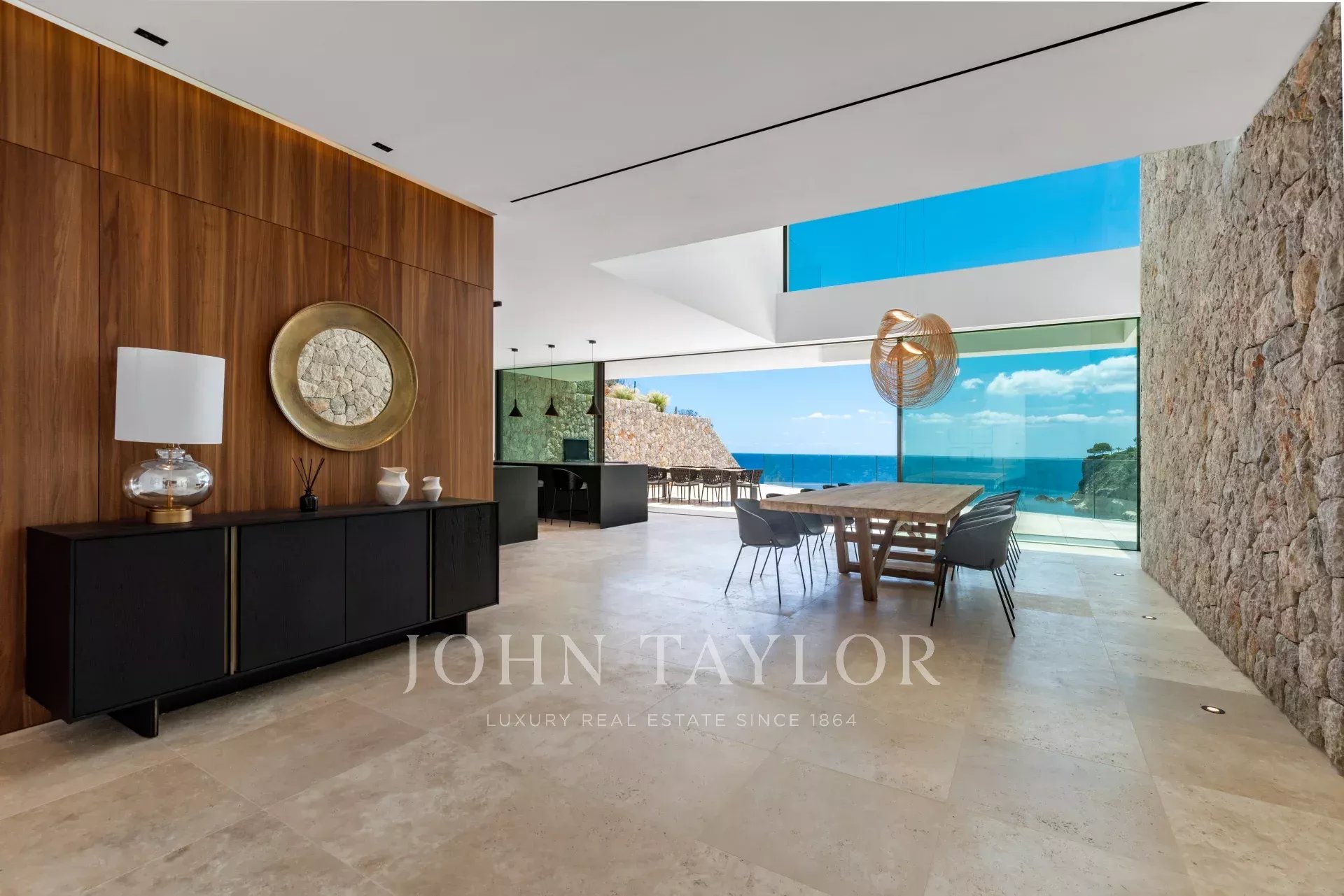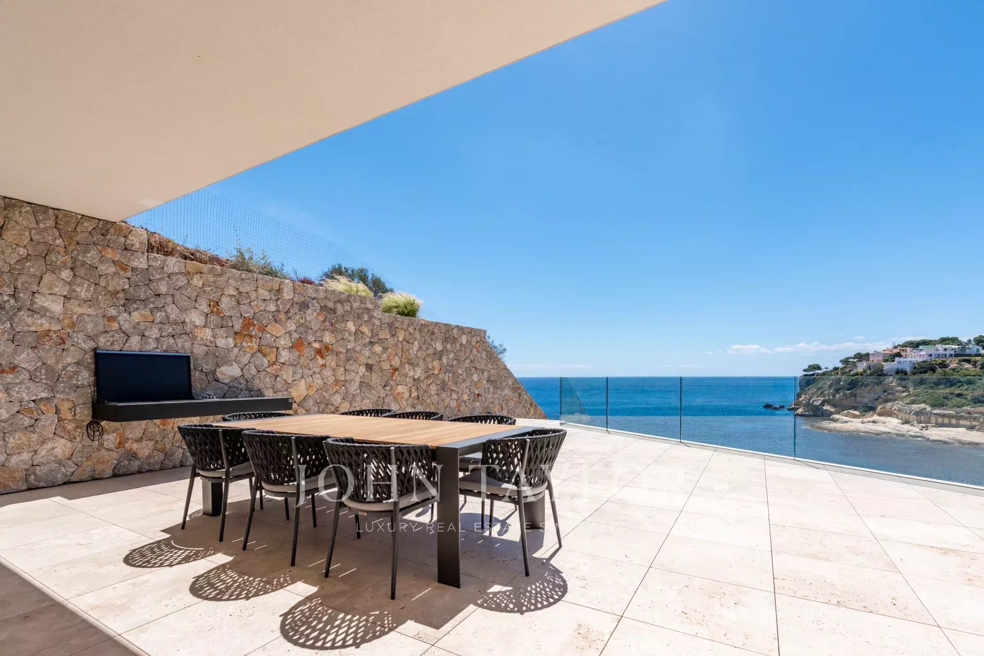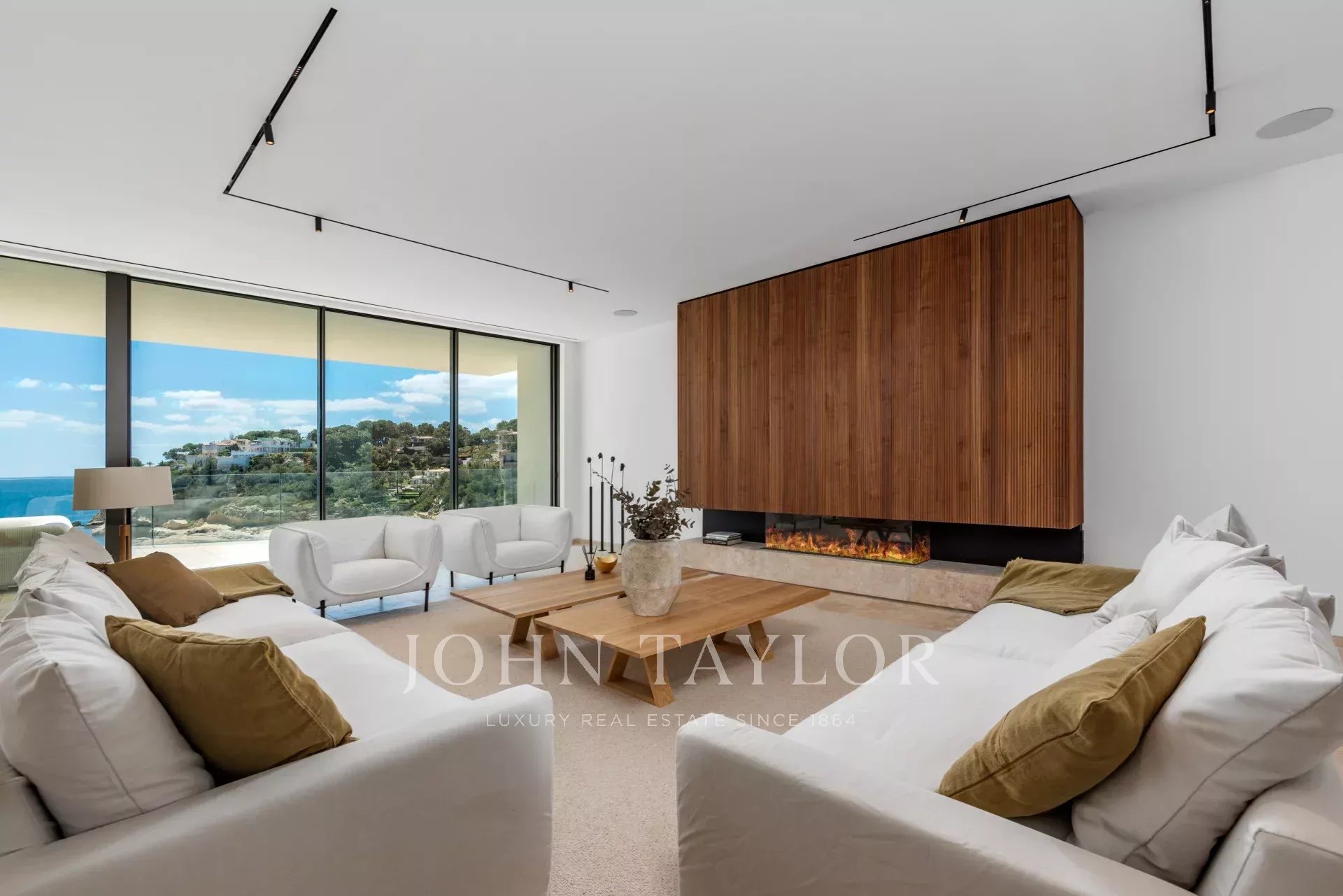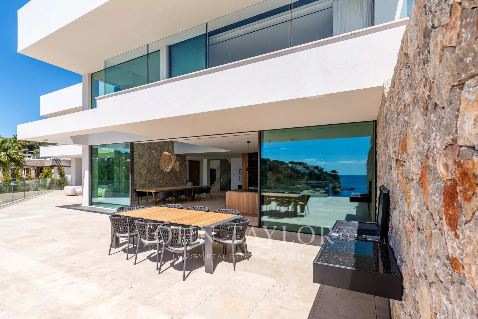 Erleben Sie den Inbegriff von purem Luxus in dieser außergewöhnlichen Neubauvilla in der ruhigen Wohngegend von Sol de Mallorca! Treten Sie ein in dieses Meisterwerk an der Küste, das einen Lebensstil wie kein anderer bietet! Diese atemberaubende, makellos gestaltete Residenz in erster Reihe mit unvergleichlichem Meerblick definiert Luxusimmobilien an der Küste Mallorcas neu. Mit über 1000 m2 bebauter Fläche auf einem Grundstück von 2142 m2 bietet dieses unglaubliche Haus 3 Etagen, die durch einen Aufzug verbunden sind. Beim Betreten der Eingangsebene in der oberen Etage werden Sie von einem atemberaubenden Blick auf das Mittelmeer begrüßt. Auf dieser Etage befindet sich die prächtige Master-Suite mit 2 Ankleidezimmern und einem durchdachten, offen gestalteten Badezimmer. Jeden Morgen wachen Sie mit den ständig wechselnden Farben des Meeres zu Ihren Füßen auf. Auf dieser Etage befinden sich zudem 3 weitere Schlafzimmer, jedes mit eigenem Bad. Über eine schöne Treppe gelangt man in den lichtdurchfluteten Hauptwohnbereich, der weitläufig, aber gleichzeitig so gestaltet ist, dass er klar getrennte Räume für verschiedene Momente bietet, sei es für einen gemütlichen Abend am Kamin, ein formelles Abendessen, eine lebhafte Grillparty mit Familie und Freunden oder einfach zum Entspannen auf der Terrasse. Das Untergeschoss des Hauses bietet eine Garage für mindestens 7 Autos und darüber hinaus große Räume, die als Fitnessraum, Heimkino oder Spielzimmer für Kinder genutzt werden können. Zahlreiche Veranden und offene Terrassen, um die Sonne rund um den beeindruckenden Infinity-Pool zu genießen, vervollständigen diese einzigartige Immobilie. Wenn Sie bereit sind, Ihre Lebenserfahrung auf ein neues Niveau zu heben und diesen unvergleichlichen Lebensstil zu Ihrem eigenen zu machen, kontaktieren Sie uns noch heute, um diesen Traum wahr werden zu lassen!