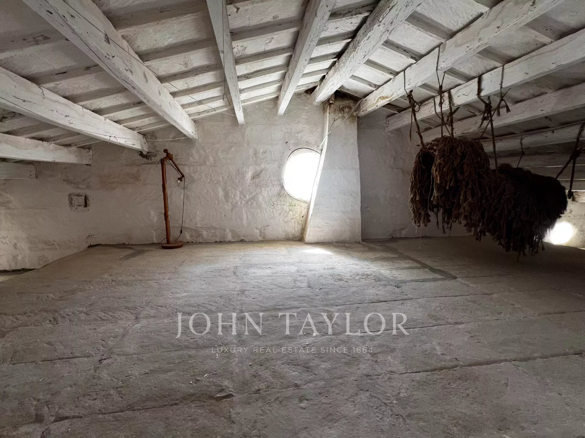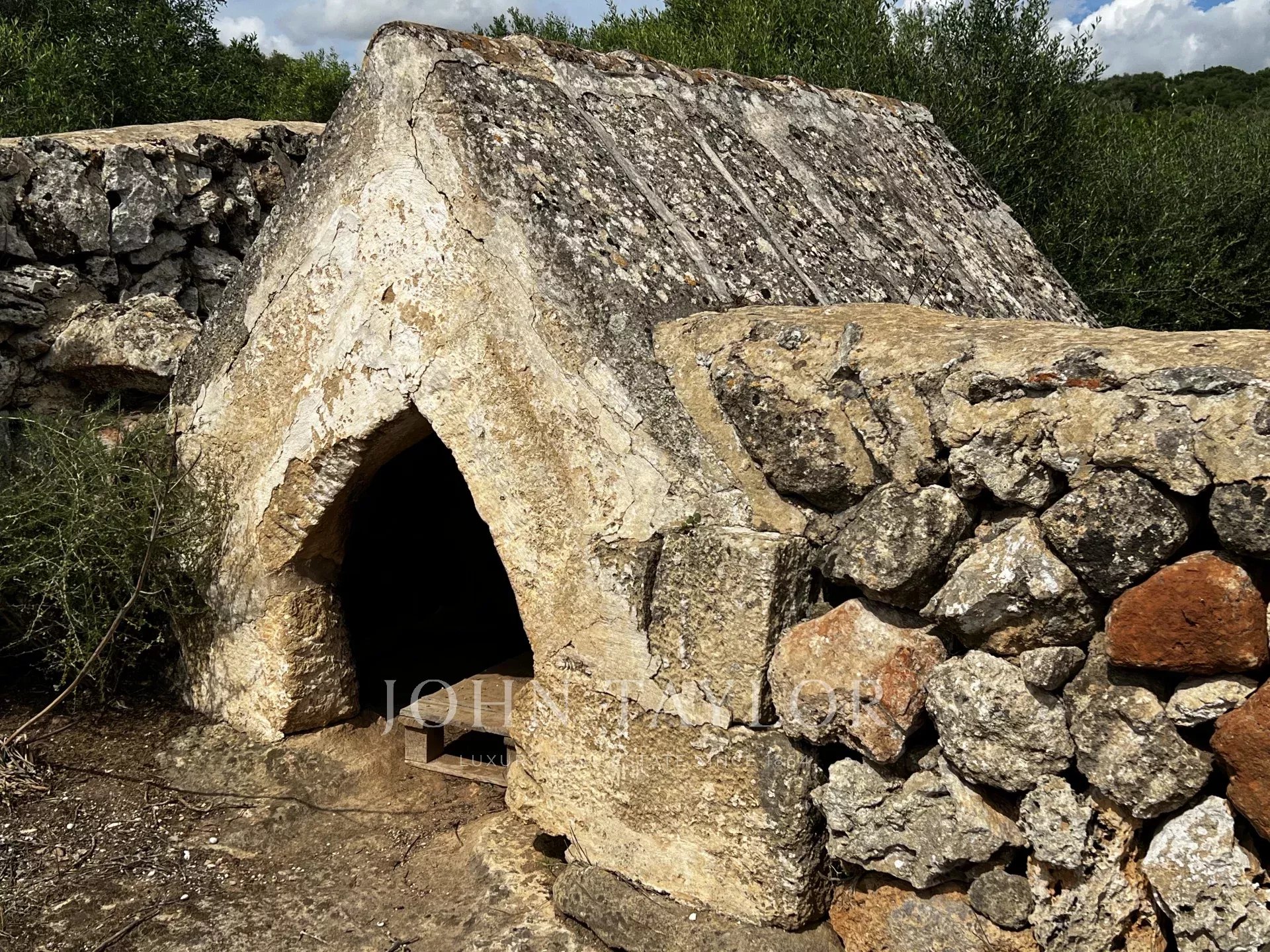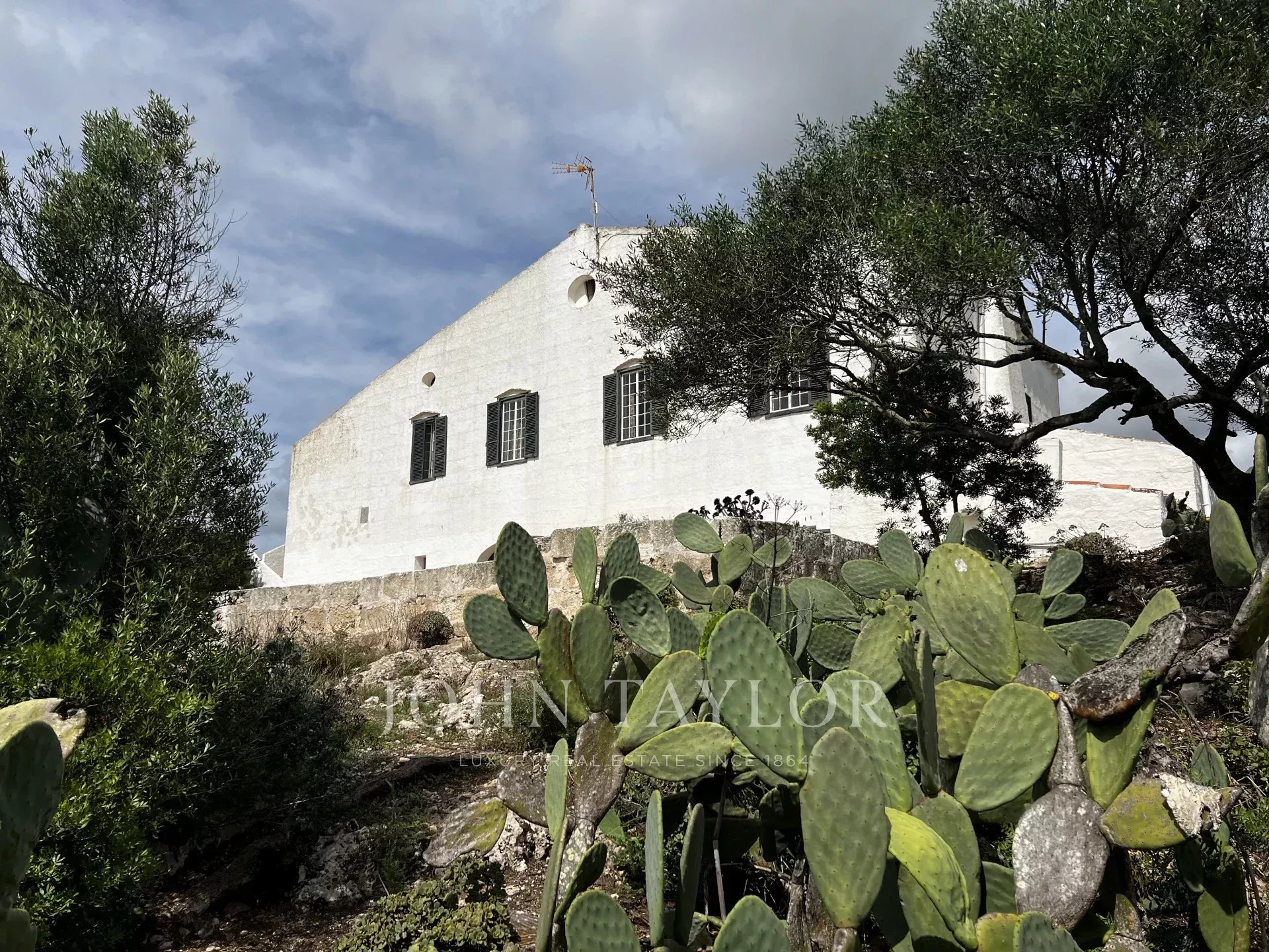 Das Anwesen besteht aus einem Haupthaus von etwa 500m2 und landwirtschaftlichen Nebengebäuden von weiteren 500m2. Das Haupthaus ist zwar komplett renovierungsbedürftig, bewahrt aber den ganzen Charme der menorquinischen Architektur. Das Haus ist in ein Erdgeschoss aufgeteilt, in dem früher die Bauern wohnten und von dem aus eine Treppe in den ersten Stock führt, der mit seinen geräumigen Zimmern mit hohen Decken und Holzbalken viel stattlicher ist. Diese Etage verfügt über mehrere Kamine und große Fenster, die eine Aufteilung nach dem Geschmack des Käufers ermöglichen. Eine zweite Etage mit Dachboden und offenem Grundriss vervollständigt das Hauptgebäude. Das Anwesen ist isoliert und bietet viel Privatsphäre.