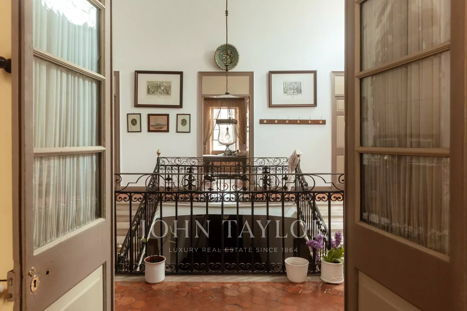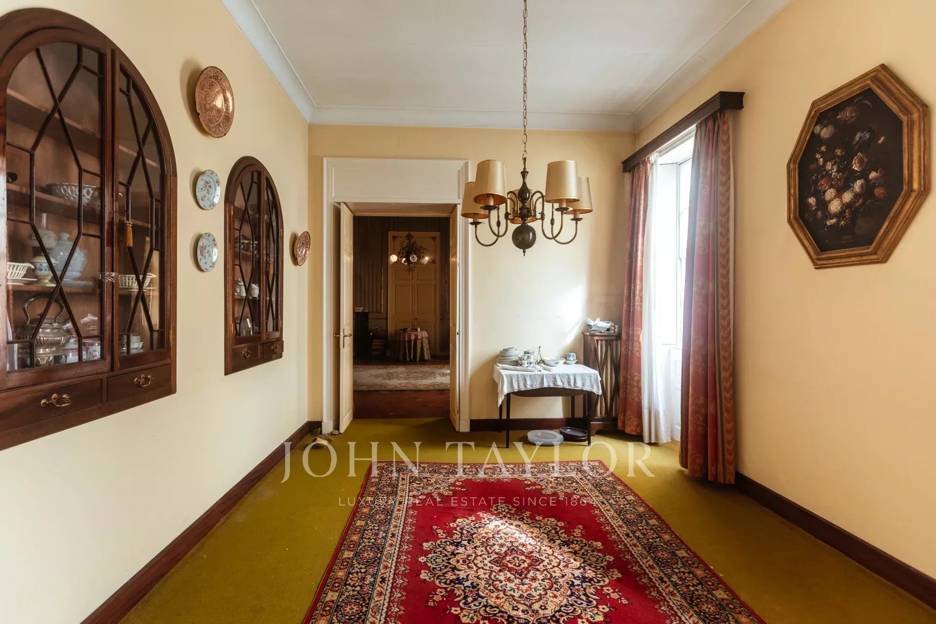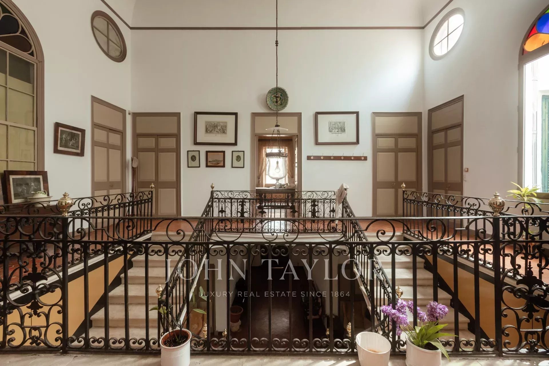 Der erste Stock hat eine zentrale Galerie mit 10 Türen, die zu mehreren Salons, Esszimmern und 5 Schlafzimmern mit 4 Bädern führen. Der Fußboden ist mit Originalfliesen gefliest, die Fenster sind sehr hoch, die Decken sind hoch und mit Stuck verziert, alles mit einem sehr vornehmen und herrschaftlichen Touch. Alle Räume haben eine Öl-Zentralheizung.
