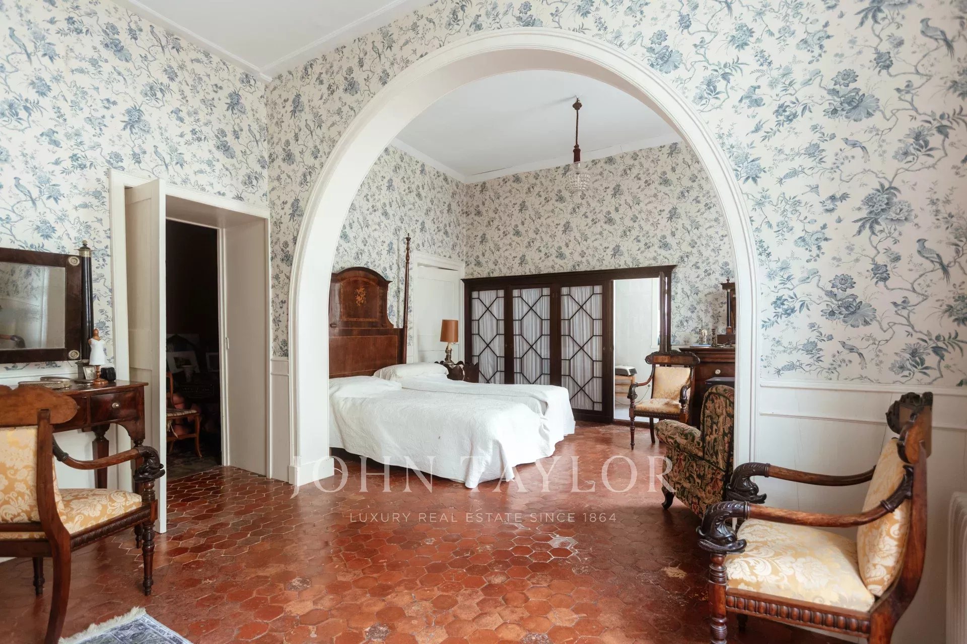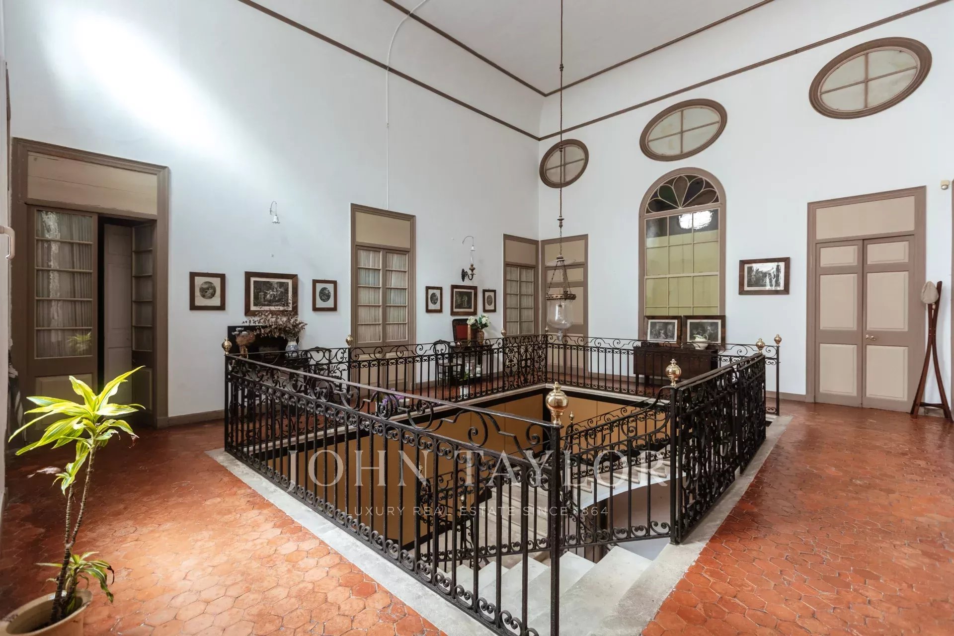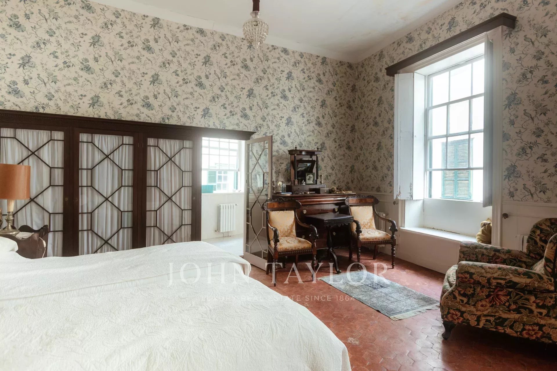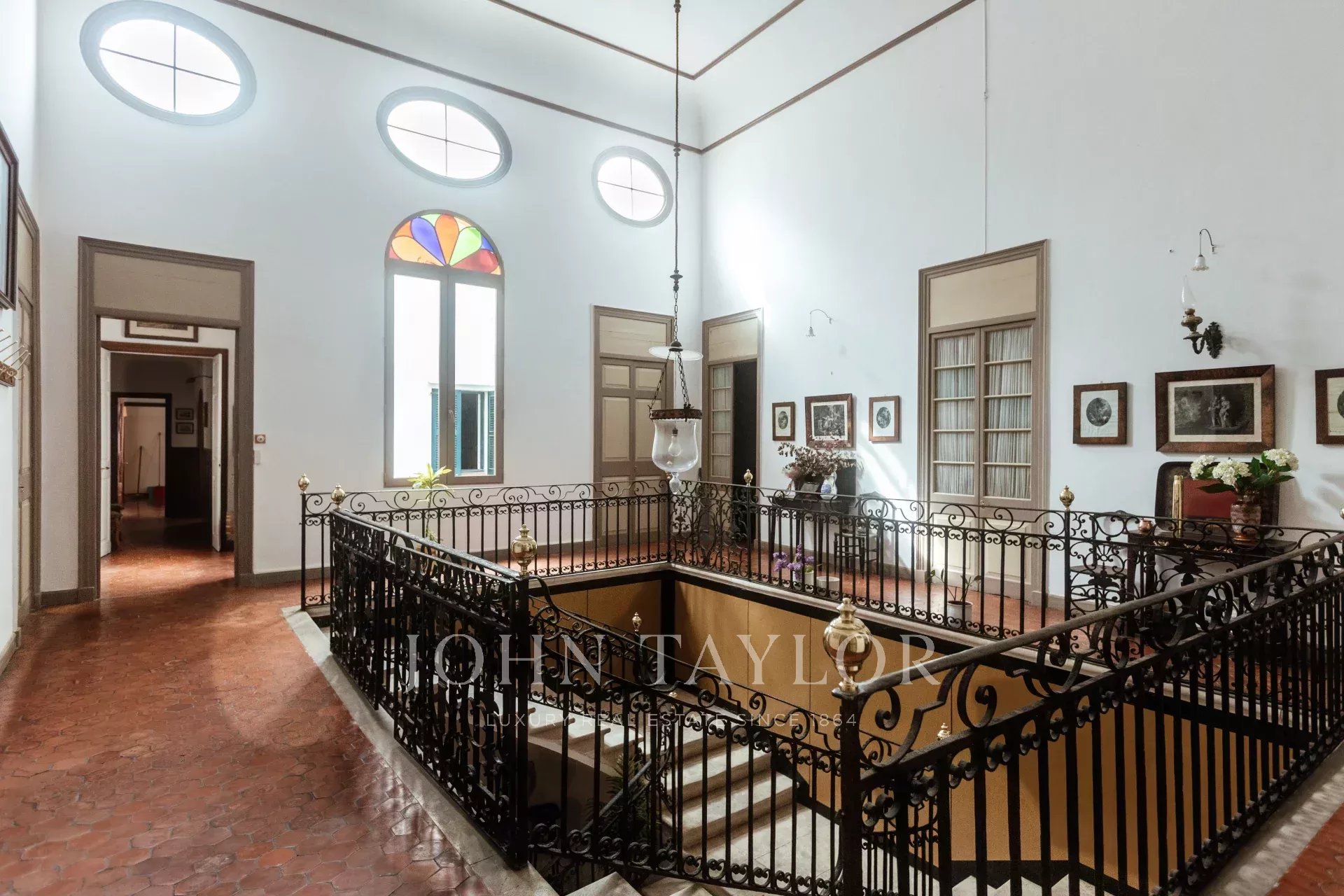 Der erste Stock hat eine zentrale Galerie mit 10 Türen, die zu mehreren Salons, Esszimmern und 5 Schlafzimmern mit 4 Bädern führen. Der Fußboden ist mit Originalfliesen gefliest, die Fenster sind sehr hoch, die Decken sind hoch und mit Stuck verziert, alles mit einem sehr vornehmen und herrschaftlichen Touch. Alle Räume haben eine Öl-Zentralheizung.