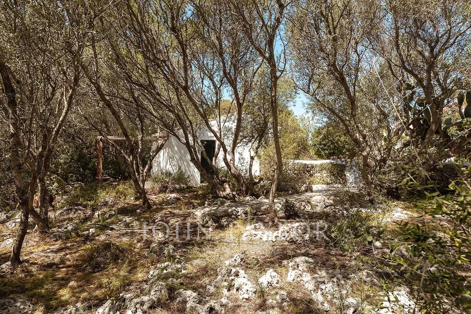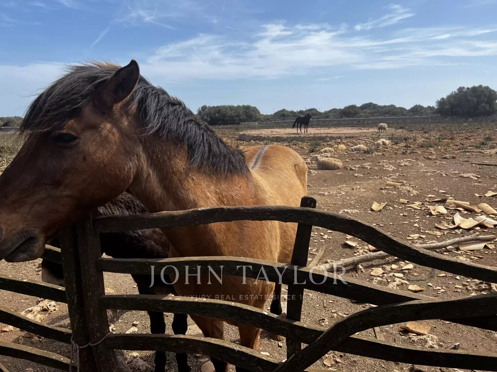 Das Anwesen erstreckt sich über eine Fläche von 10 Hektar, mehr als genug, um eine Schafherde, schöne Pferde, Esel und eine große Anzahl menorquinischer Schildkröten zu halten, die in den verschiedenen Teilen des Anwesens zu sehen sind. Auf dem Anwesen sind noch zwei ursprüngliche Tennen erhalten, die zum Dreschen von Getreide verwendet wurden.