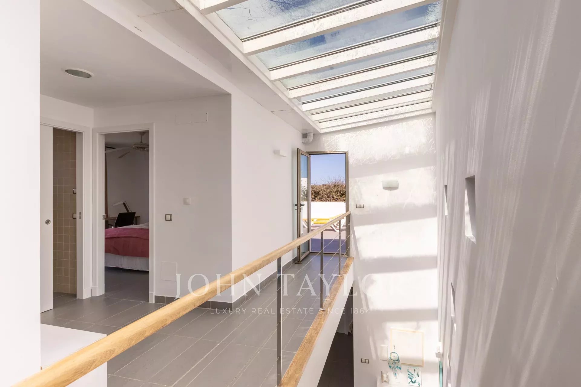 Im ersten Stock befinden sich zwei weitere Doppelzimmer mit Meerblick, ein zweites Badezimmer und der Zugang zu einer spektakulären 70 m² großen Terrasse. Dieser Raum bietet eine privilegierte Umgebung, um sich zu entspannen, die Meeresbrise zu genießen und den unschlagbaren Panoramablick zu betrachten.