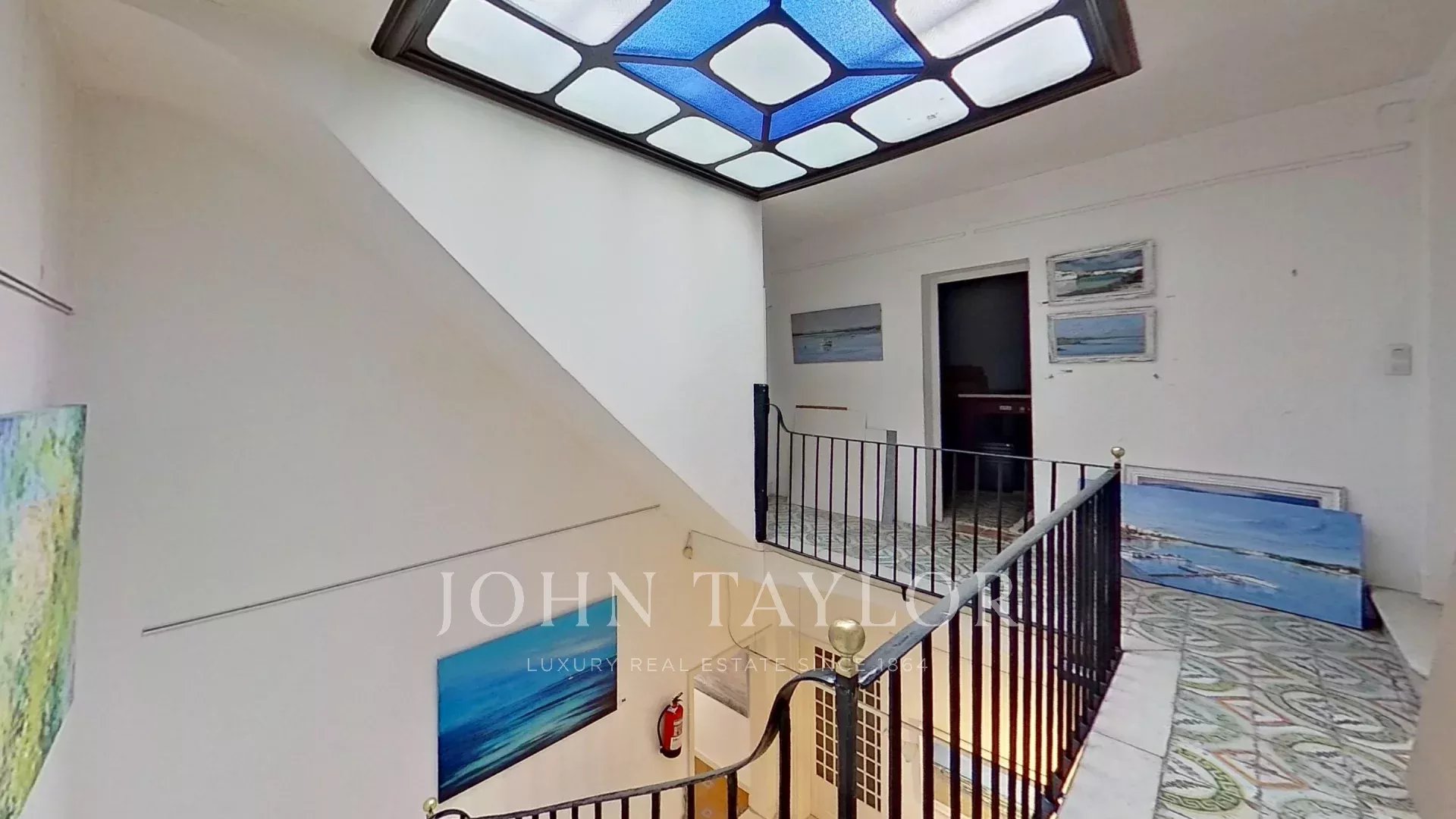 Der Rest der Immobilie wird als Wohnhaus genutzt. Im ersten Stock befindet sich eine moderne Küche mit direktem Zugang zum Innenhof über eine Außentreppe. Im ersten Stock befinden sich ein geräumiges Wohn-Esszimmer, drei helle Schlafzimmer und ein komplettes Bad. In der vierten Etage werden die Veranden in ausgezeichnetem Zustand als Malatelier genutzt. Von dieser Etage aus hat man Zugang zu einer Dachterrasse mit freiem Blick auf die Stadt und ihre Umgebung. Darüber hinaus verfügt das Anwesen über einen traditionellen Turm, der einen zusätzlichen Panoramablick bietet und früher zur Bewachung der Einfahrt von Handelsschiffen diente.