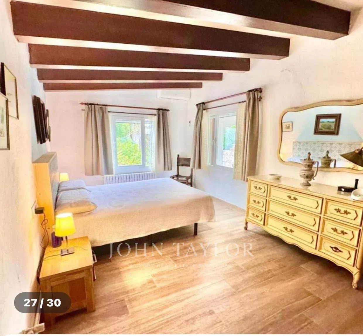 Erbaut auf einem großen Grundstück von ca. 3.370 m², bietet das Anwesen 331 m² Wohnfläche und vielfältige Möglichkeiten, den mediterranen Lebensstil zu genießen. Umgeben von einem gepflegten Garten, verteilt sich das Haus auf ein helles Wohnzimmer, eine separate Küche, drei großzügige Schlafzimmer - eines davon mit Bad en suite - und ein gemütliches Zimmer im Untergeschoss. Ein Highlight ist das imposante Esszimmer mit direktem Zugang zur überdachten Terrasse, die mit dem Garten und dem Swimmingpool verbunden ist und problemlos in ein viertes Schlafzimmer umgewandelt werden könnte.
