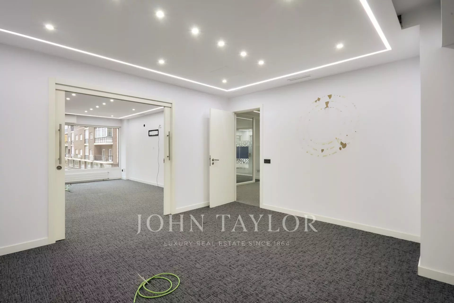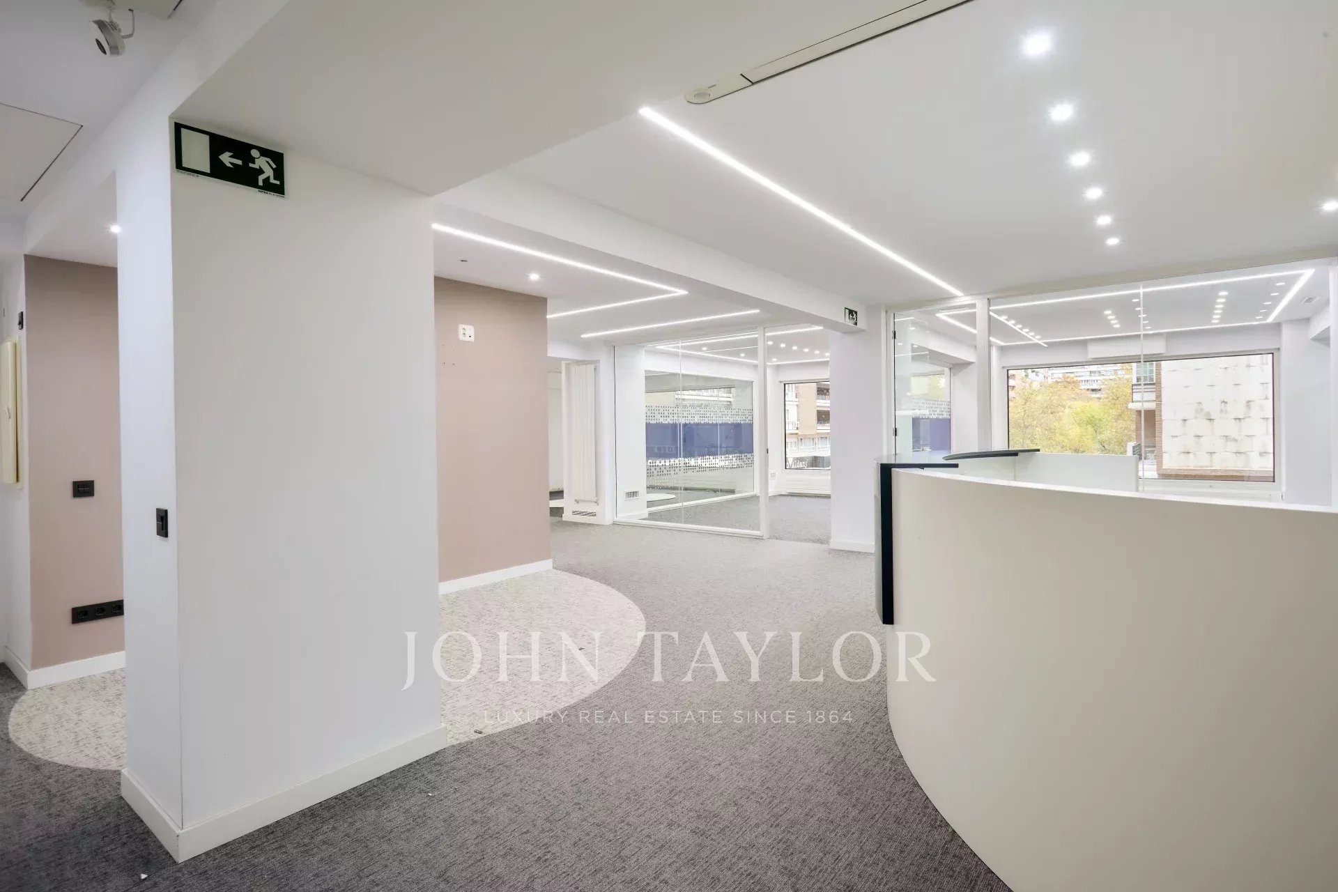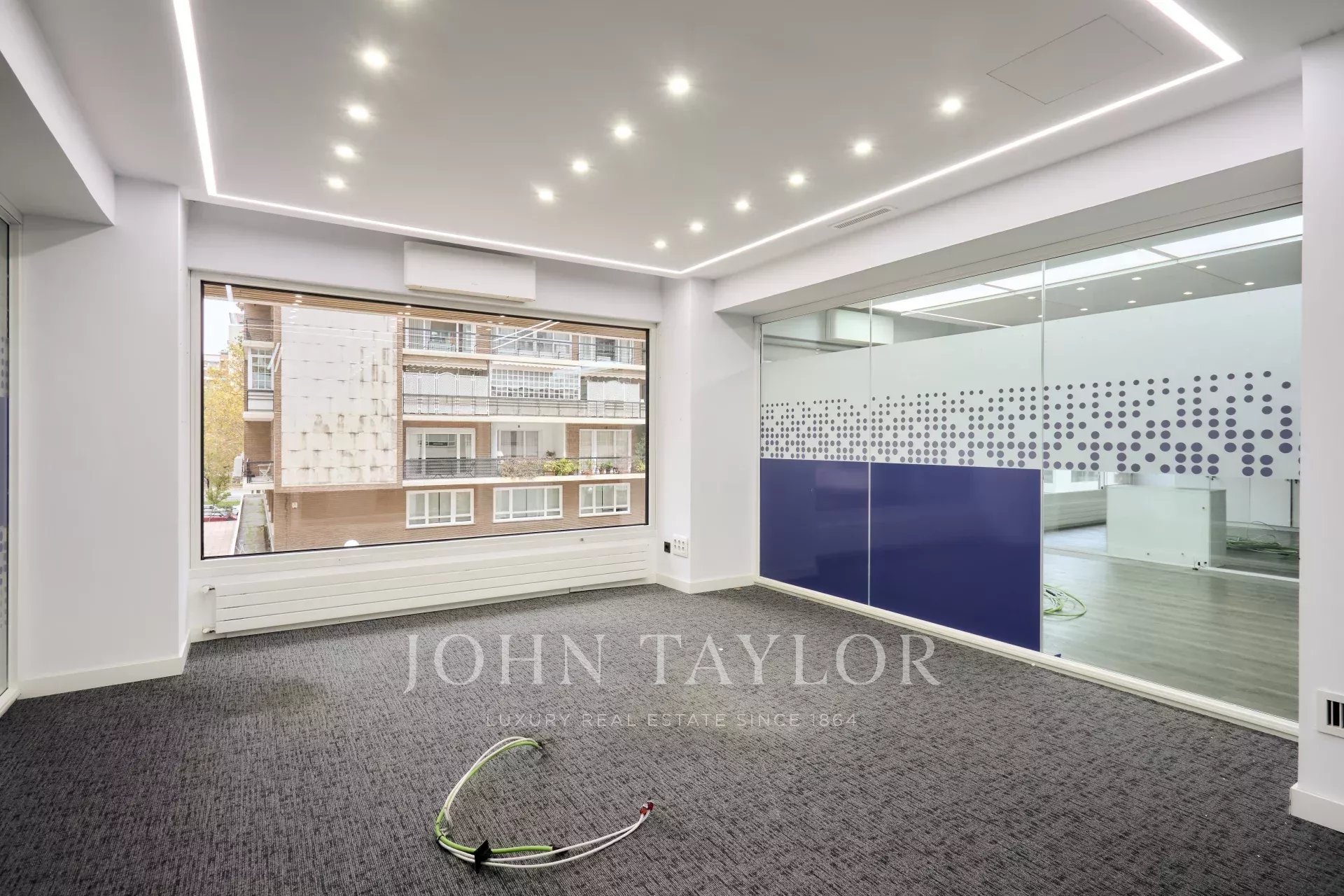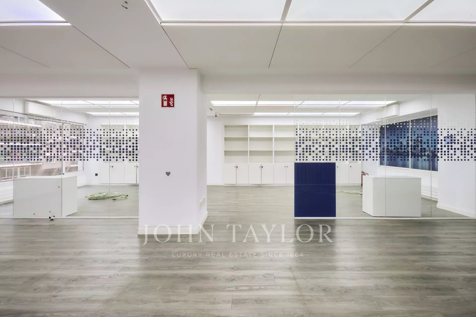 Es befindet sich in einem ausgezeichneten Erhaltungszustand und verfügt über eine technische Decke, Holzfußböden, Fußbodenheizung und eine im gesamten Büro verteilte Split-Klimaanlage, ein Luftreinigungs- und Renovierungssystem sowie eine zentrale Heizkörperheizung.