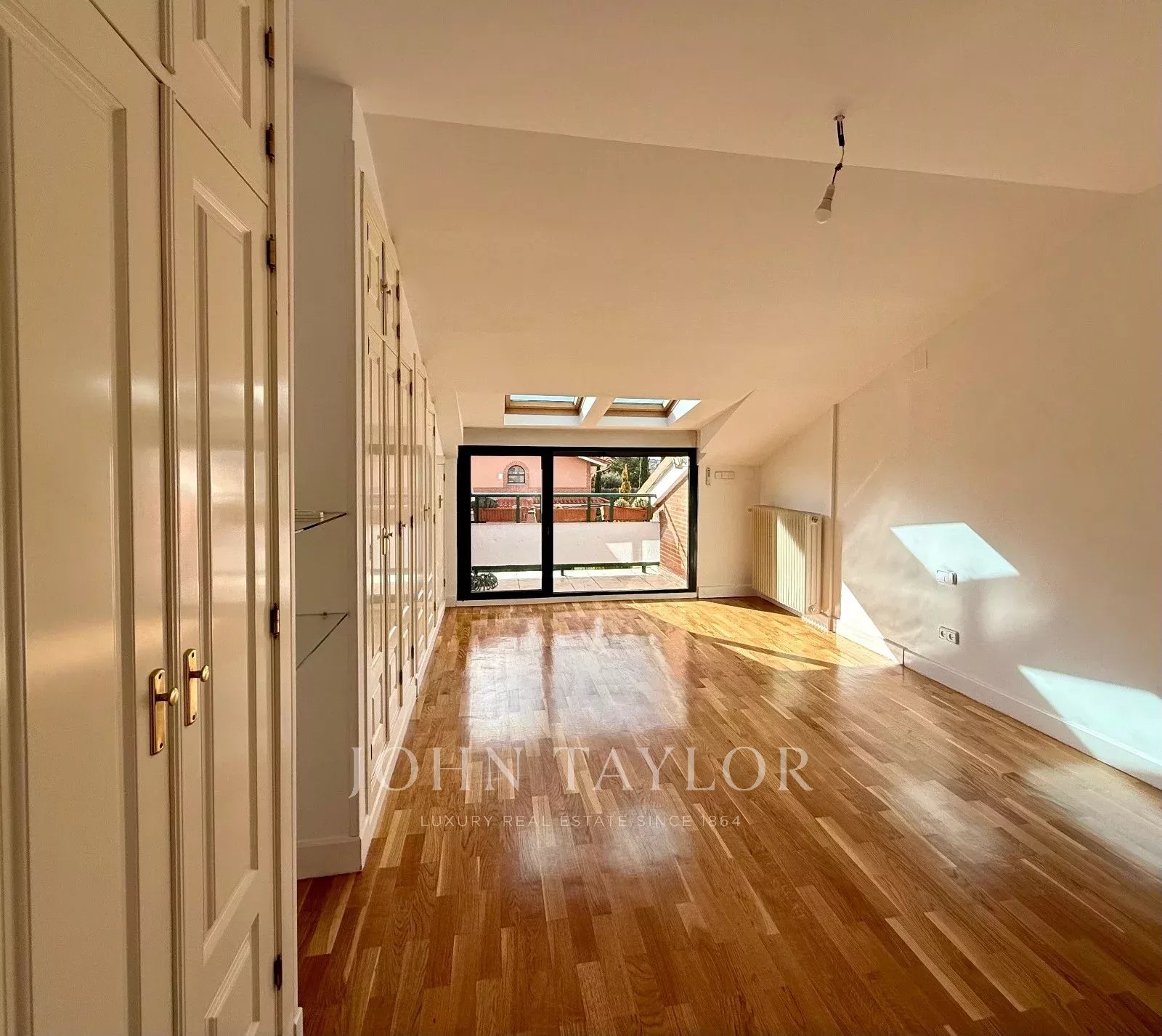 John Taylor präsentiert diese prächtige Villa in einer erstklassigen Wohngegend. Dieses elegante Stadthaus stellt eine außergewöhnliche Gelegenheit für diejenigen dar, die Lebensqualität, Privatsphäre und Sicherheit in einer der begehrtesten Gegenden im Norden von Madrid suchen. Das Anwesen befindet sich in einem tadellosen Zustand, mit einer sorgfältigen Erhaltung und einer Südausrichtung, die den ganzen Tag über natürliches Licht garantiert.