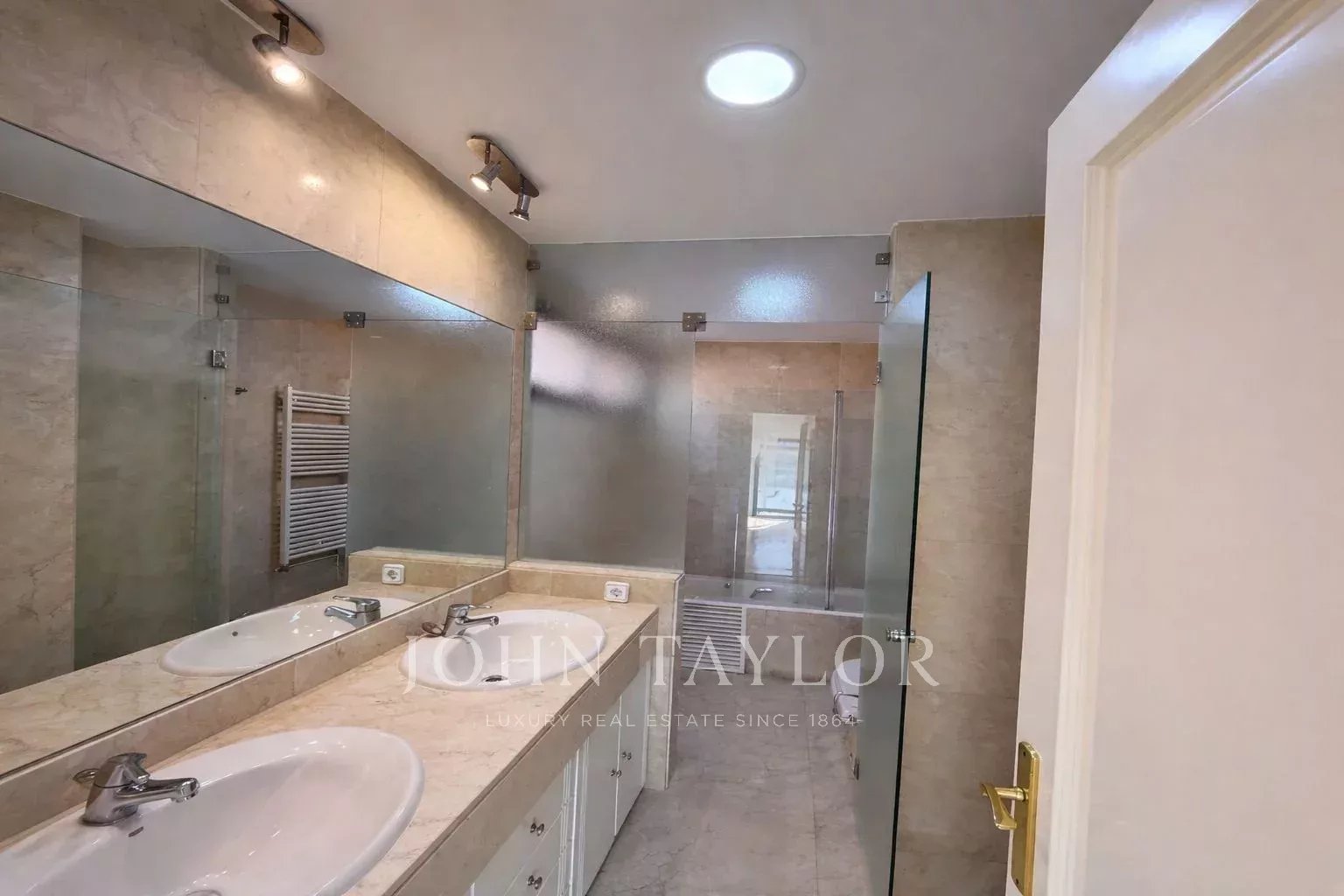Das Obergeschoss ist der Entspannung gewidmet und bietet drei Schlafzimmer und zwei Bäder. Das Hauptschlafzimmer mit eigenem Bad ist sehr hell und hat Zugang zu einer schönen privaten Terrasse. Eines der zweiten Schlafzimmer, das besonders geräumig ist, lässt sich als Doppelschlafzimmer, Büro oder Arbeitszimmer nutzen.