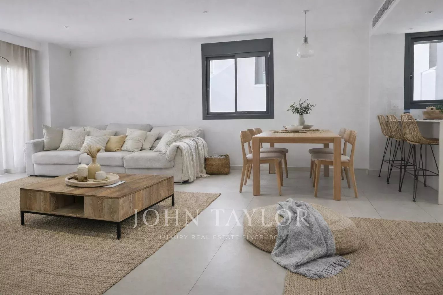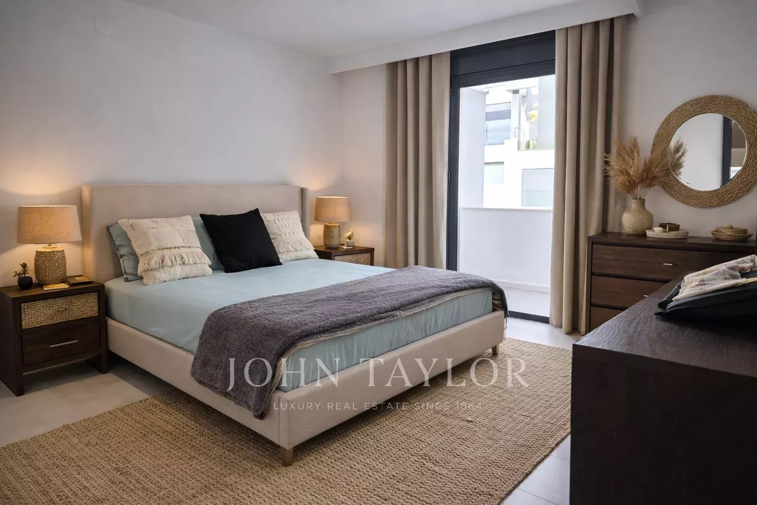 Dieses elegante Apartment in Santa Eulària des Riu bietet Ihnen auf großzügigen 3 Zimmern höchsten Komfort und modernen Wohnstil. Die lichtdurchfluteten Räume sind mit Aluminiumfenstern, Doppelverglasung und elektrischen Rollläden ausgestattet. Dank Klimaanlage, elektrisch regulierbarem Thermostat sowie großzügigen Schiebeelementen genießen Sie das ganze Jahr über ein angenehmes Raumklima.