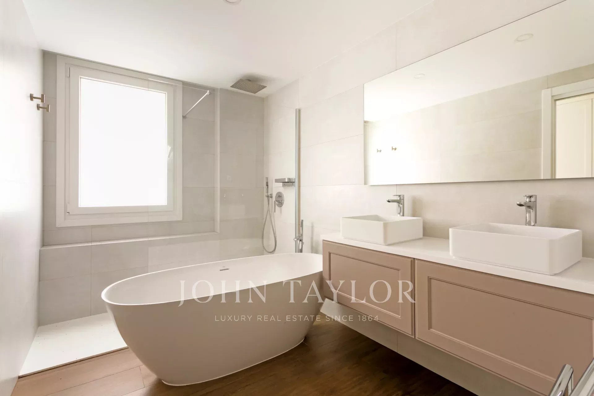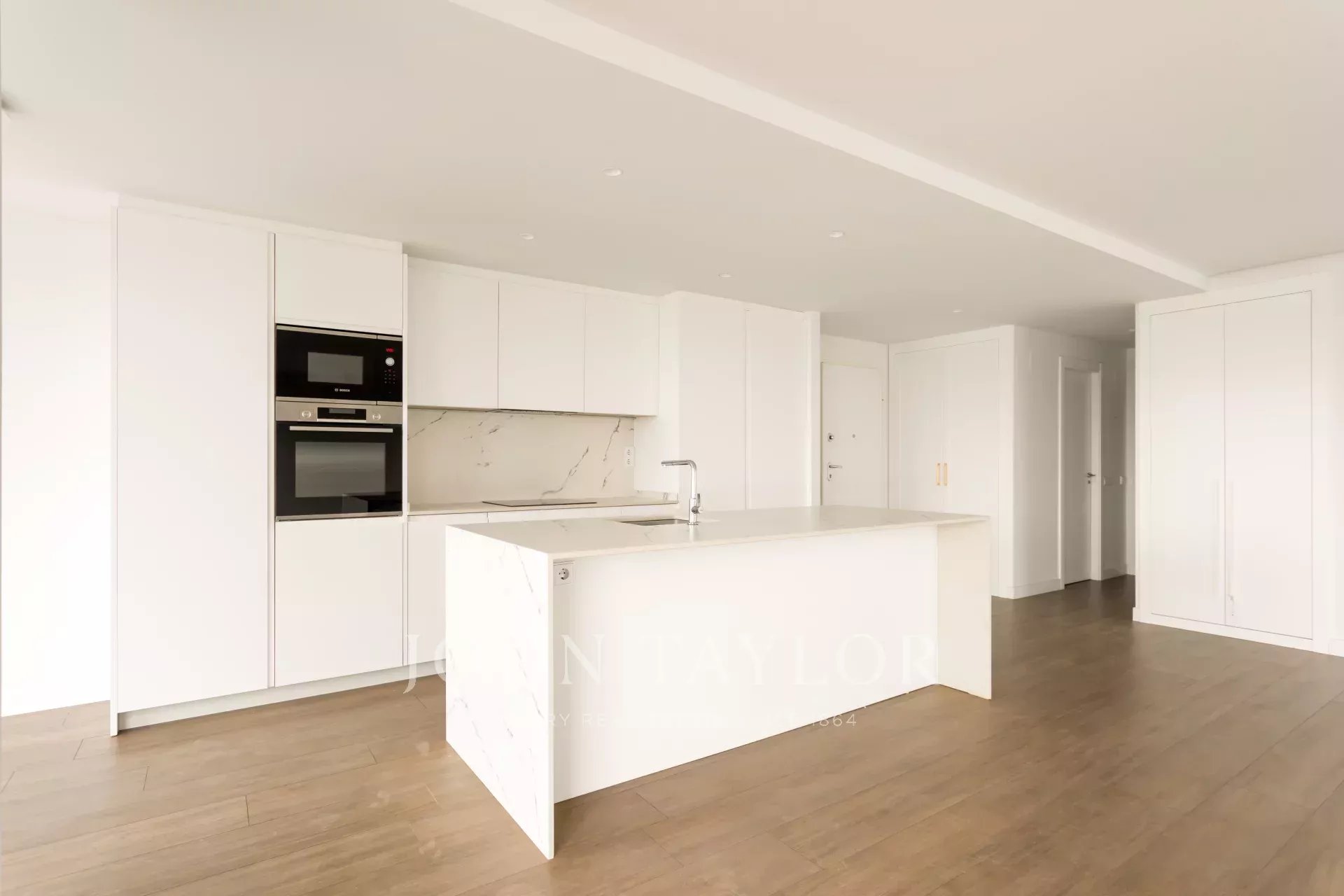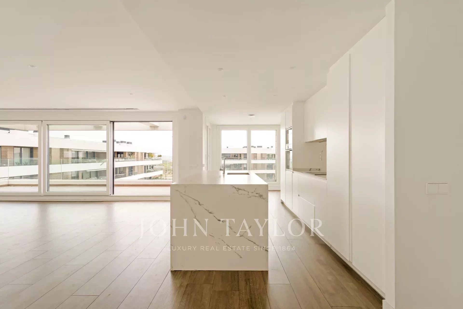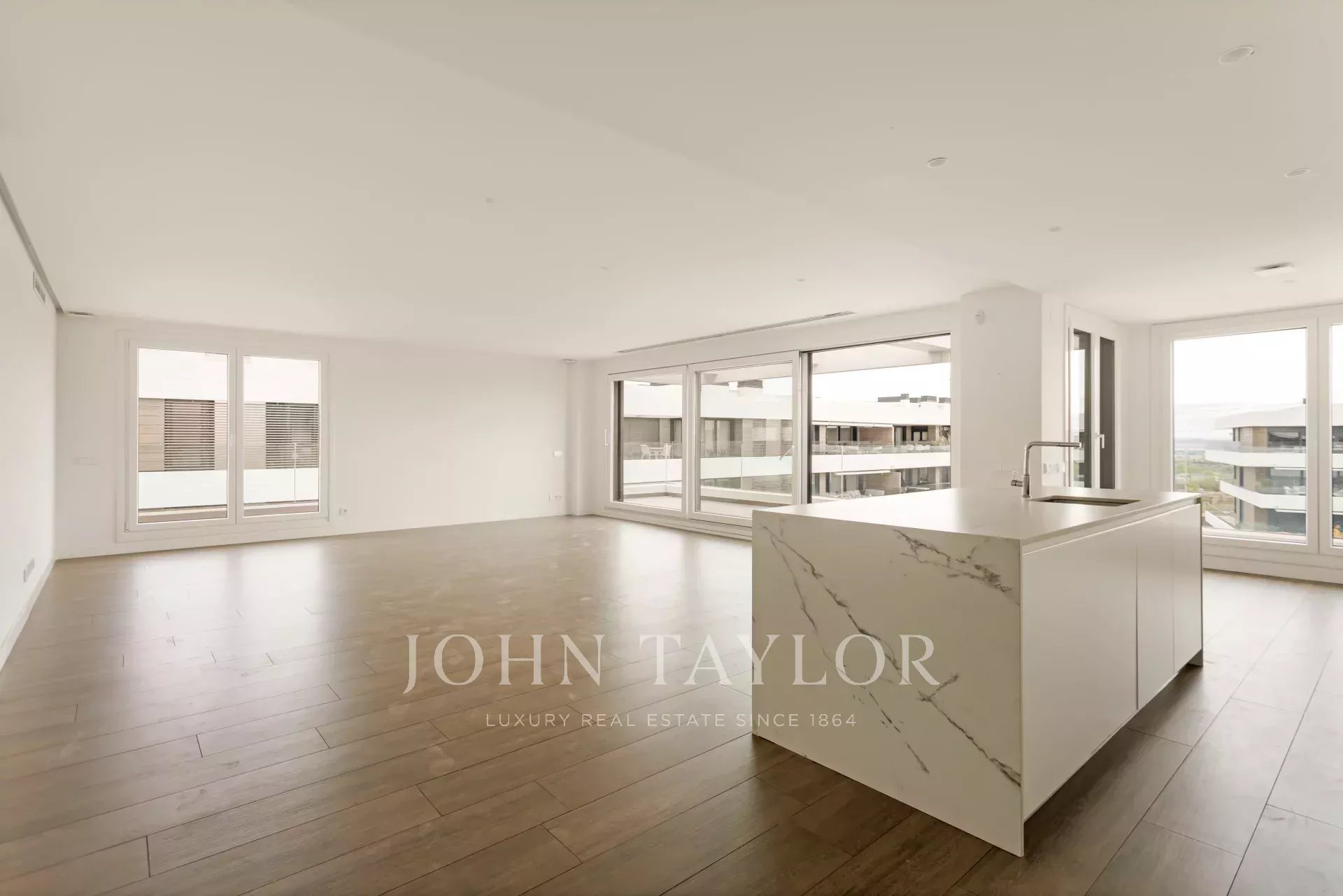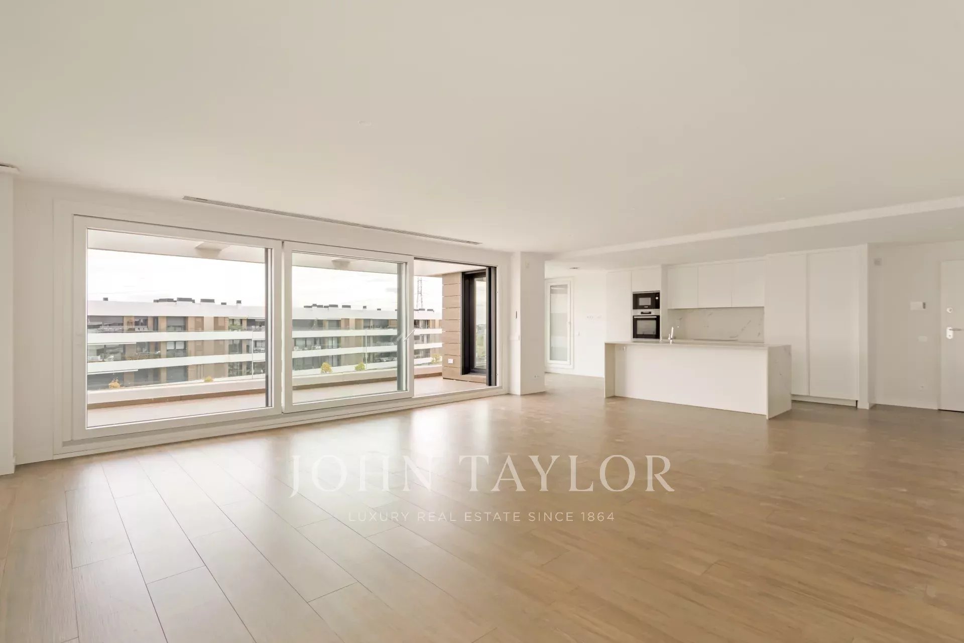Das Herzstück des Penthouses ist ein spektakuläres, 45 m² großes, lichtdurchflutetes Wohnzimmer mit direktem Zugang zur Terrasse. Die hochmoderne, voll integrierte Küche befindet sich im Sozialbereich und ist mit hochwertigen Geräten ausgestattet. Sie verfügt über ein verglastes Büro und eine voll ausgestattete separate Waschküche.