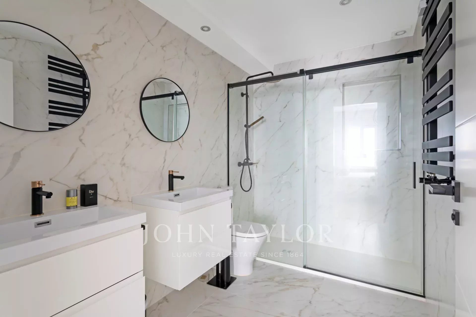 Die elegante Wohnung verfügt über vier Schlafzimmer, alle nach außen gerichtet, mit eigenem Bad und mit großen Einbauschränken ausgestattet. Es gibt auch ein Gäste-WC.