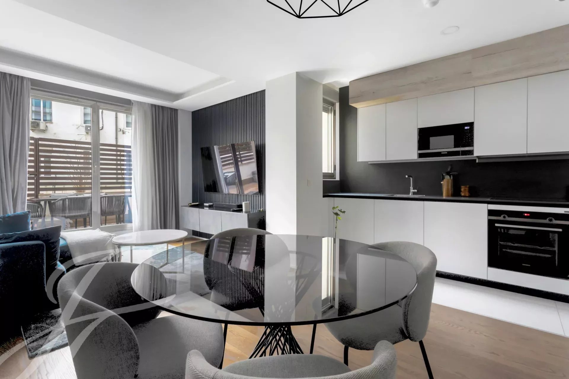 Elegante Wohnung voll möbliert und der wöchentliche Reinigungsservice und die Kosten sind im Preis inbegriffen.