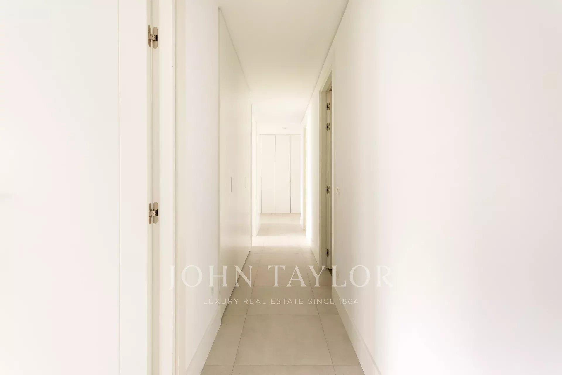 Mit einer komfortablen Aufteilung besteht es aus einem geräumigen Wohnzimmer mit großen Fenstern nach Süden und Westen, die ihm eine beneidenswerte Helligkeit und einen herrlichen freien Blick verleihen. Ebenfalls nach Süden ausgerichtet sind eines der Schlafzimmer und das geräumige Hauptschlafzimmer, letzteres mit eigenem Bad. Ein drittes Schlafzimmer mit eigenem Bad und ein Bad im Flur bilden den Schlafbereich.