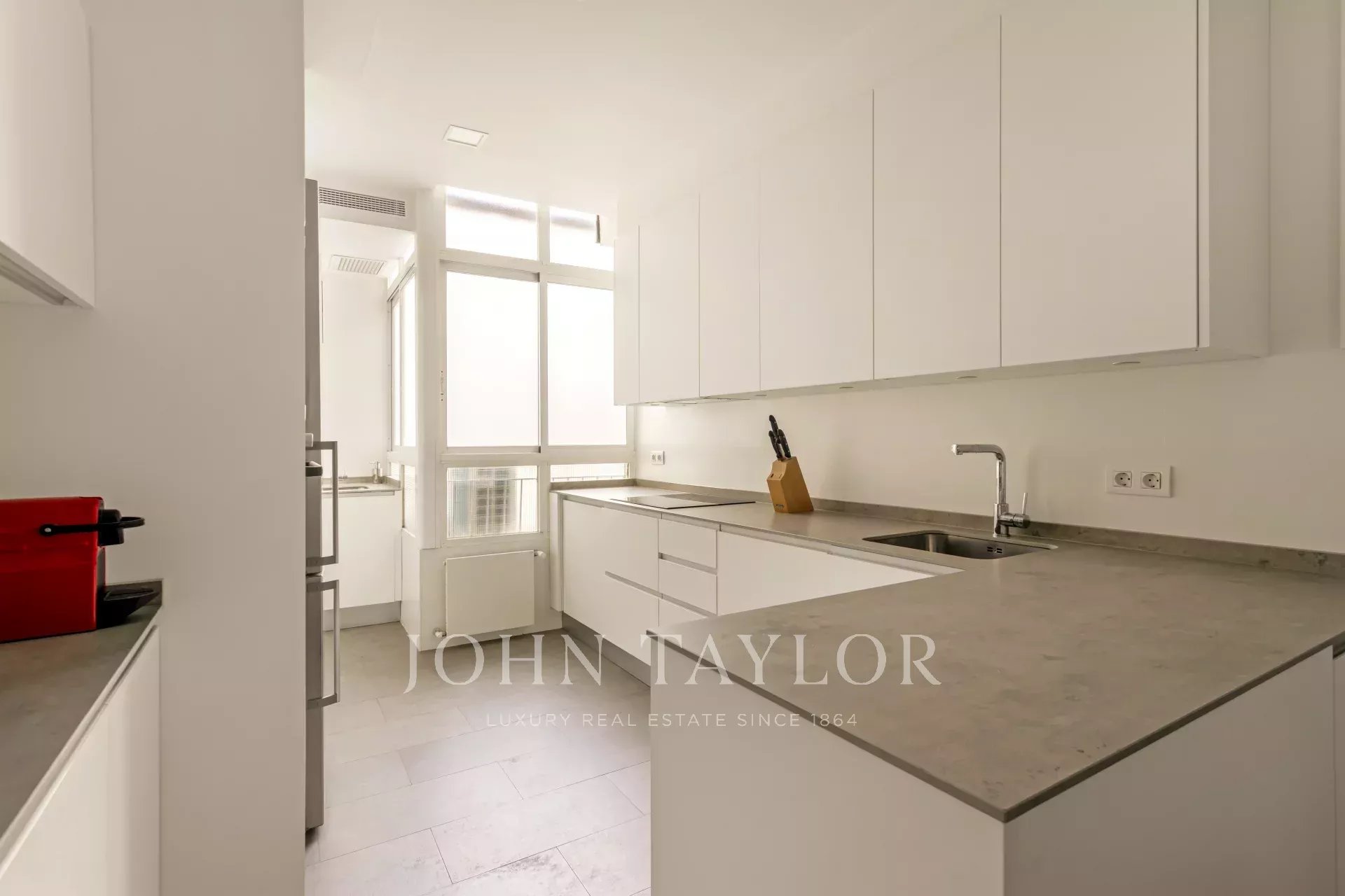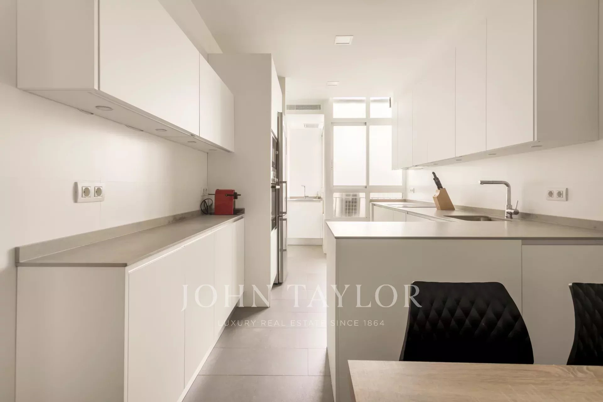 Eine geräumige und komfortable Küche, die mit den modernsten Geräten ausgestattet ist, sowie eine Waschküche und eine Speisekammer vervollständigen die Ausstattung dieser luxuriösen Wohnung.