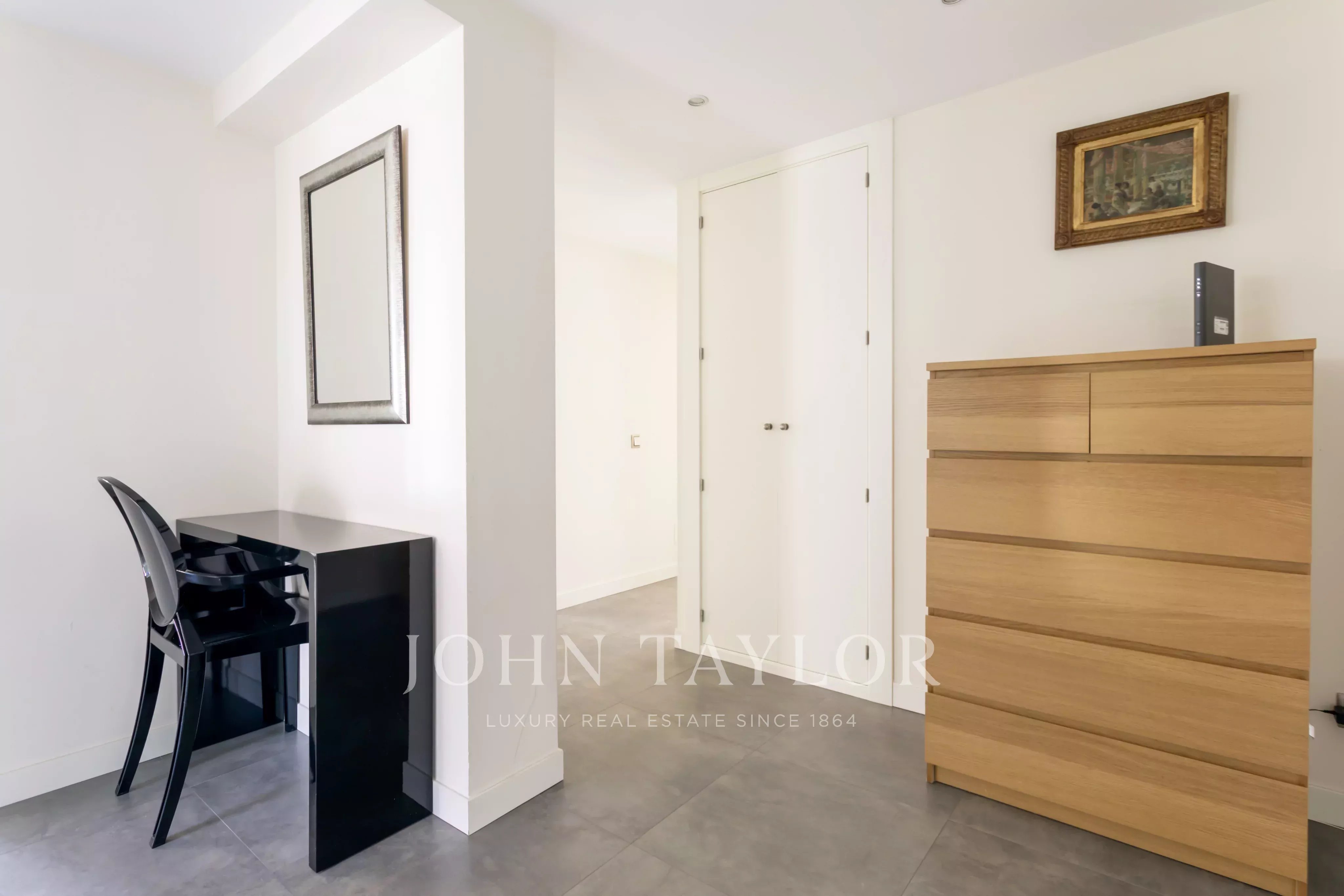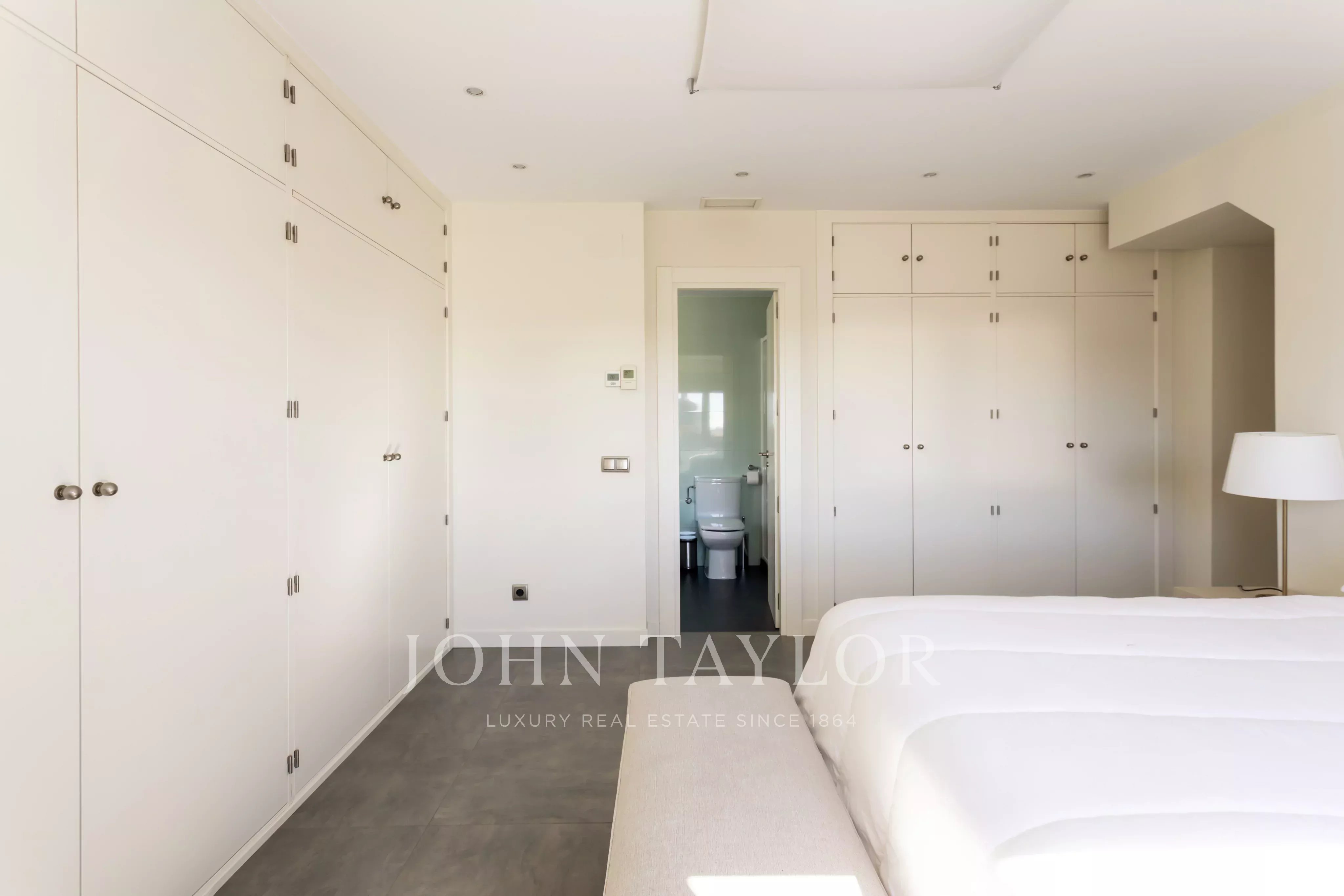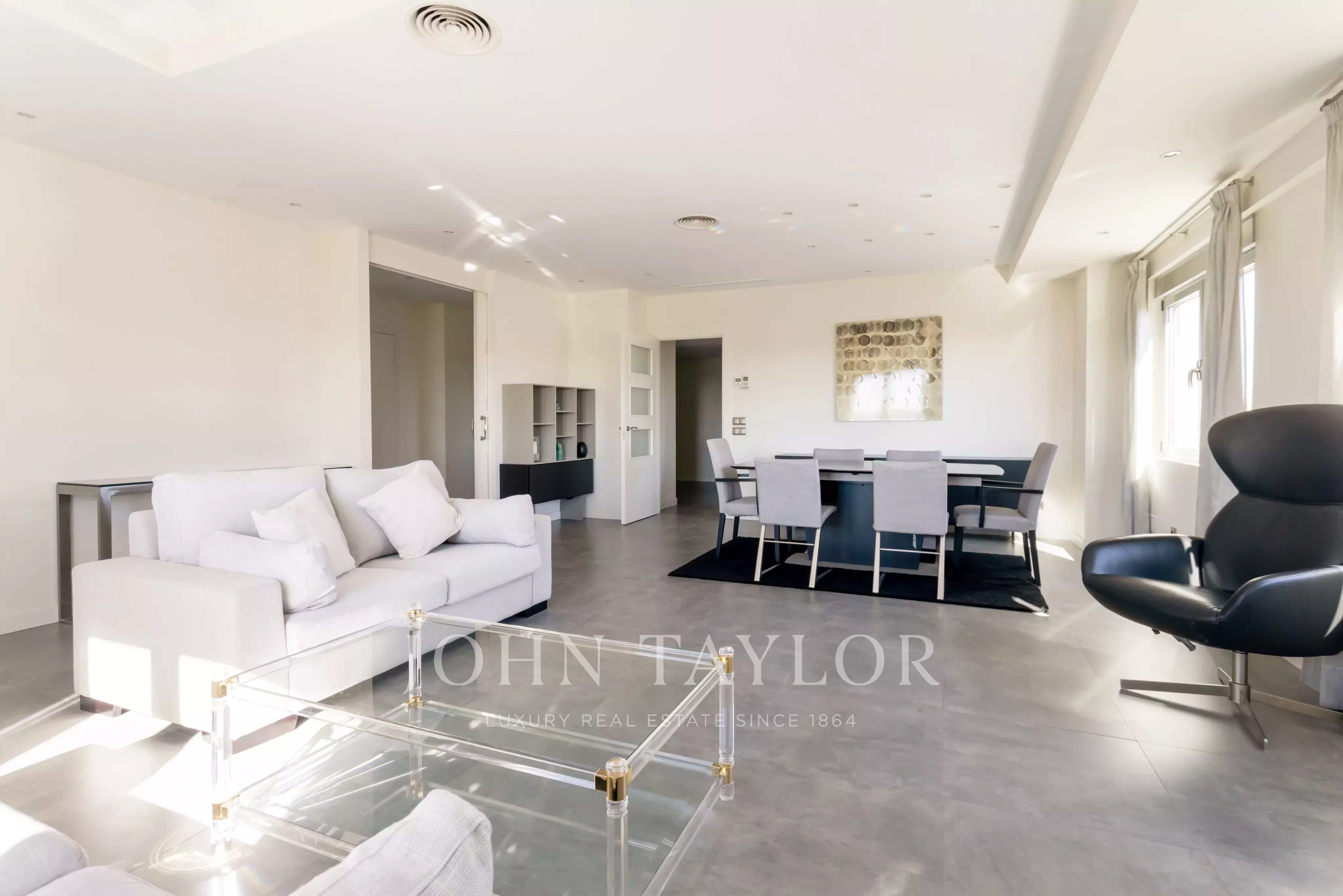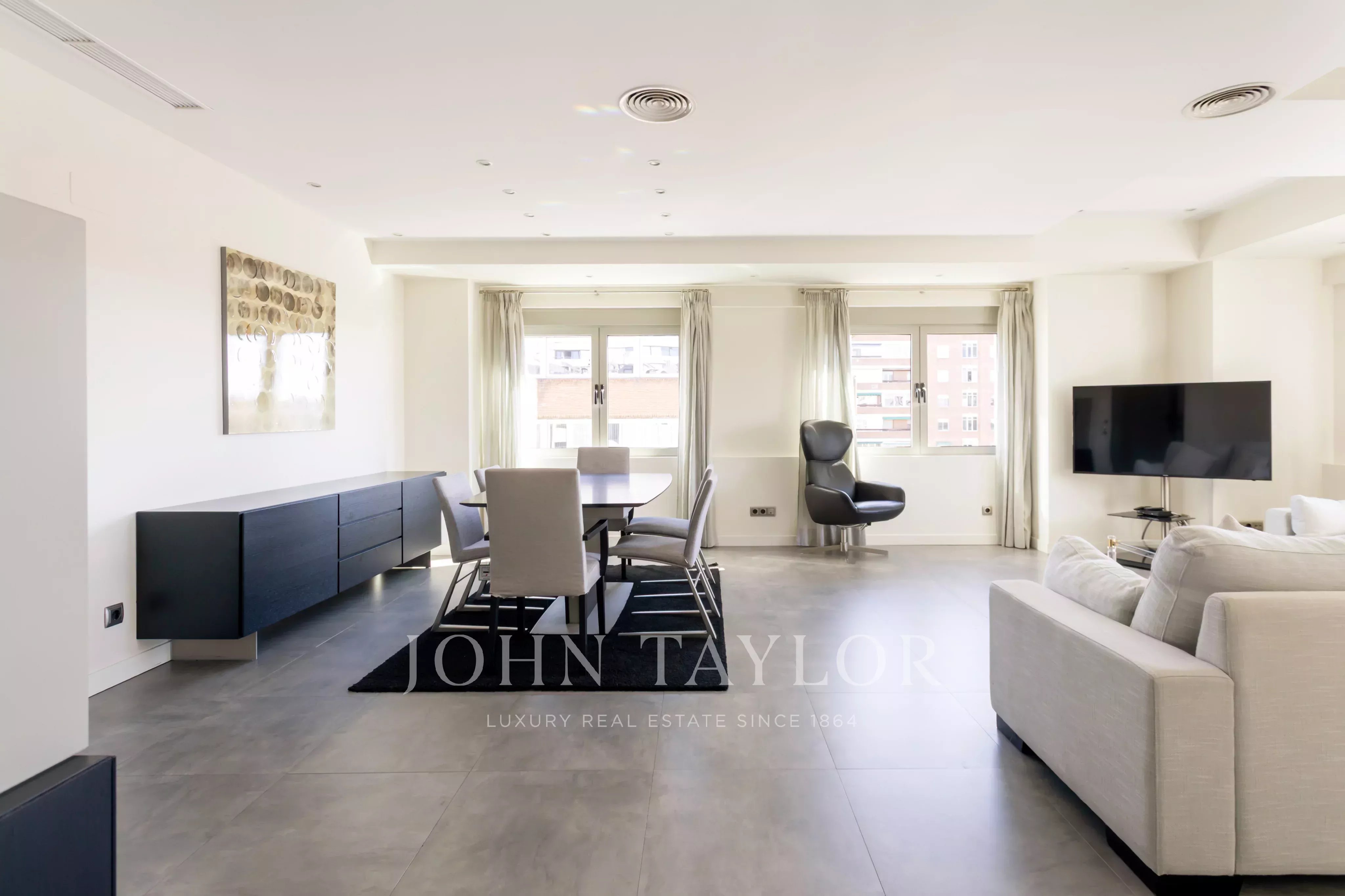 Mit einer ungefähren Wohnfläche von 120m² plus 60m² Terrasse, verteilt auf der 6. Etage in 3 Schlafzimmer und 3 Bäder, zwei davon en-suite, ein wunderbares Wohnzimmer von 42m² und unabhängige Einbauküche.