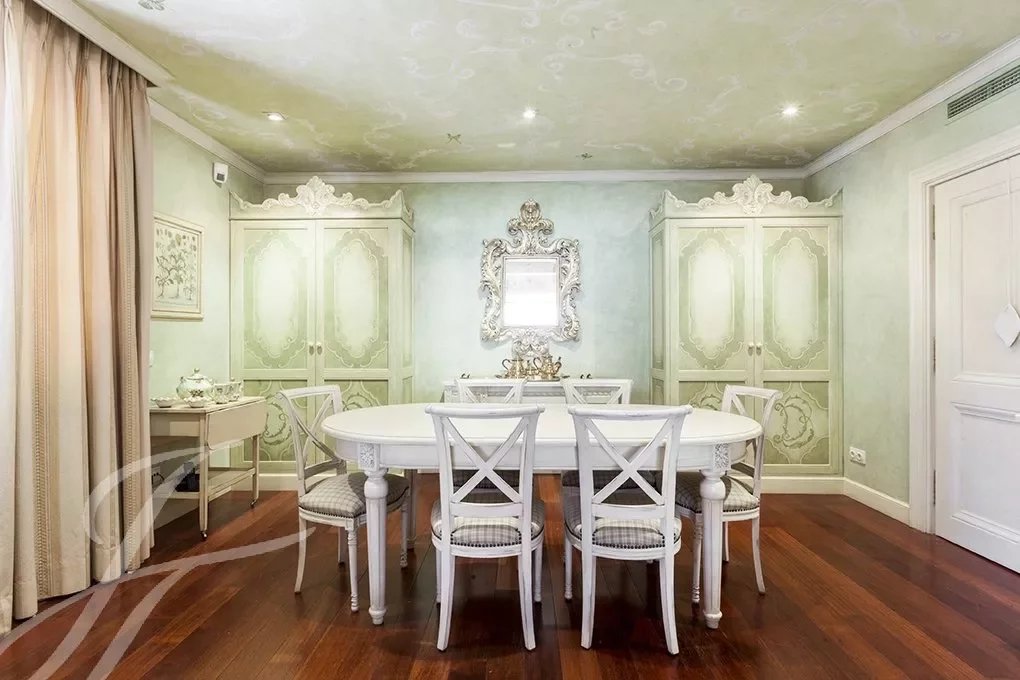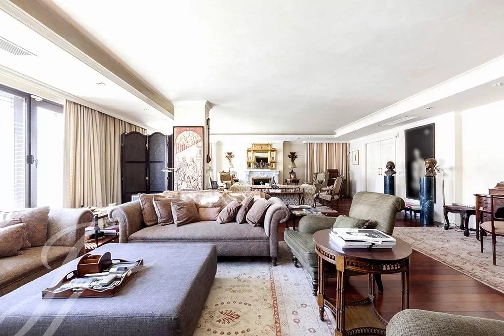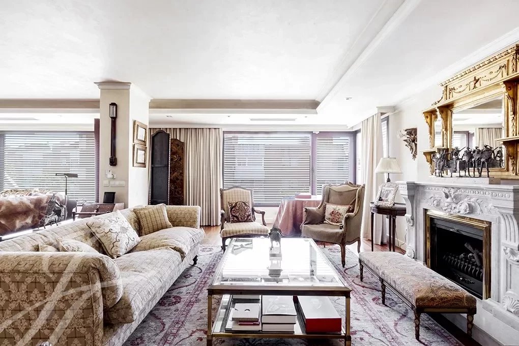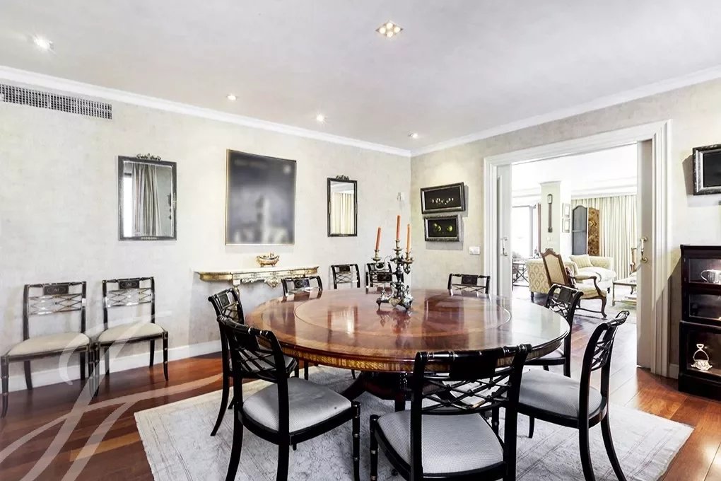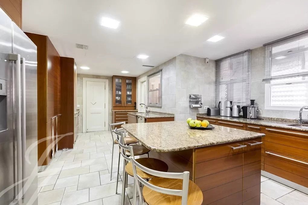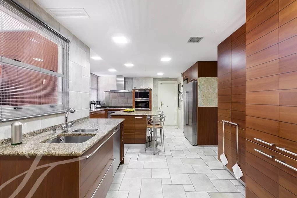 Von der Eingangshalle, wo die elegante Treppe mit schmiedeeisernem Geländer uns in das Schlafzimmer führt, haben wir Zugang zum großen Wohnzimmer mit mehr als 80m², das völlig offen gestaltet ist und mit großen Fenstern, die ihm eine große Helligkeit und ein Gefühl von Raum geben, Das Wohnzimmer ist mit einem großen formellen Esszimmer verbunden und dieses wiederum mit einem weiteren informellen Esszimmer, von dem aus man Zugang zur herrlichen Küche von fast 30m2 hat. Der Servicebereich wird durch einen Wasch- und Bügelraum, ein Servicezimmer mit Bad und eine Trockenterrasse vervollständigt.