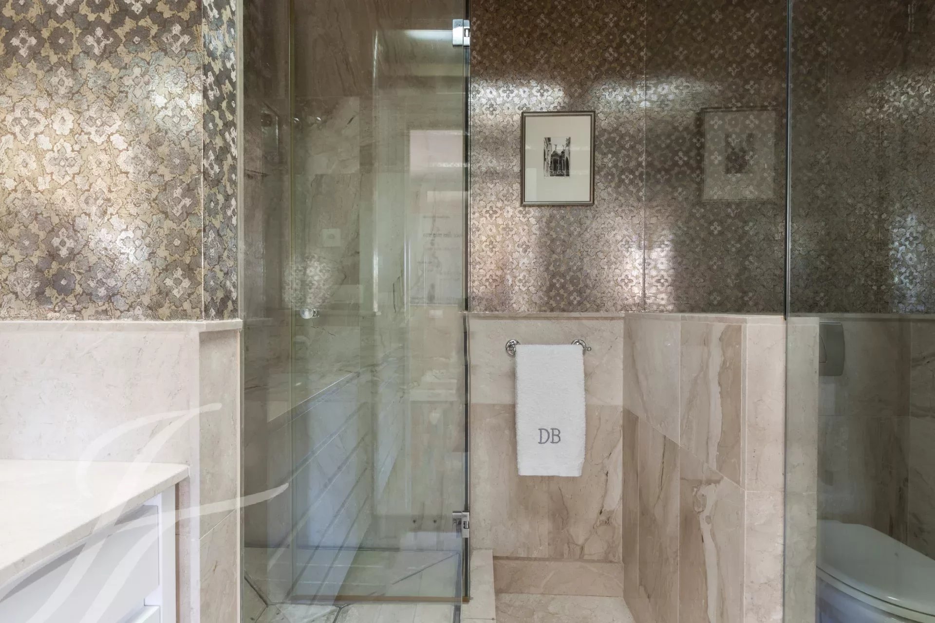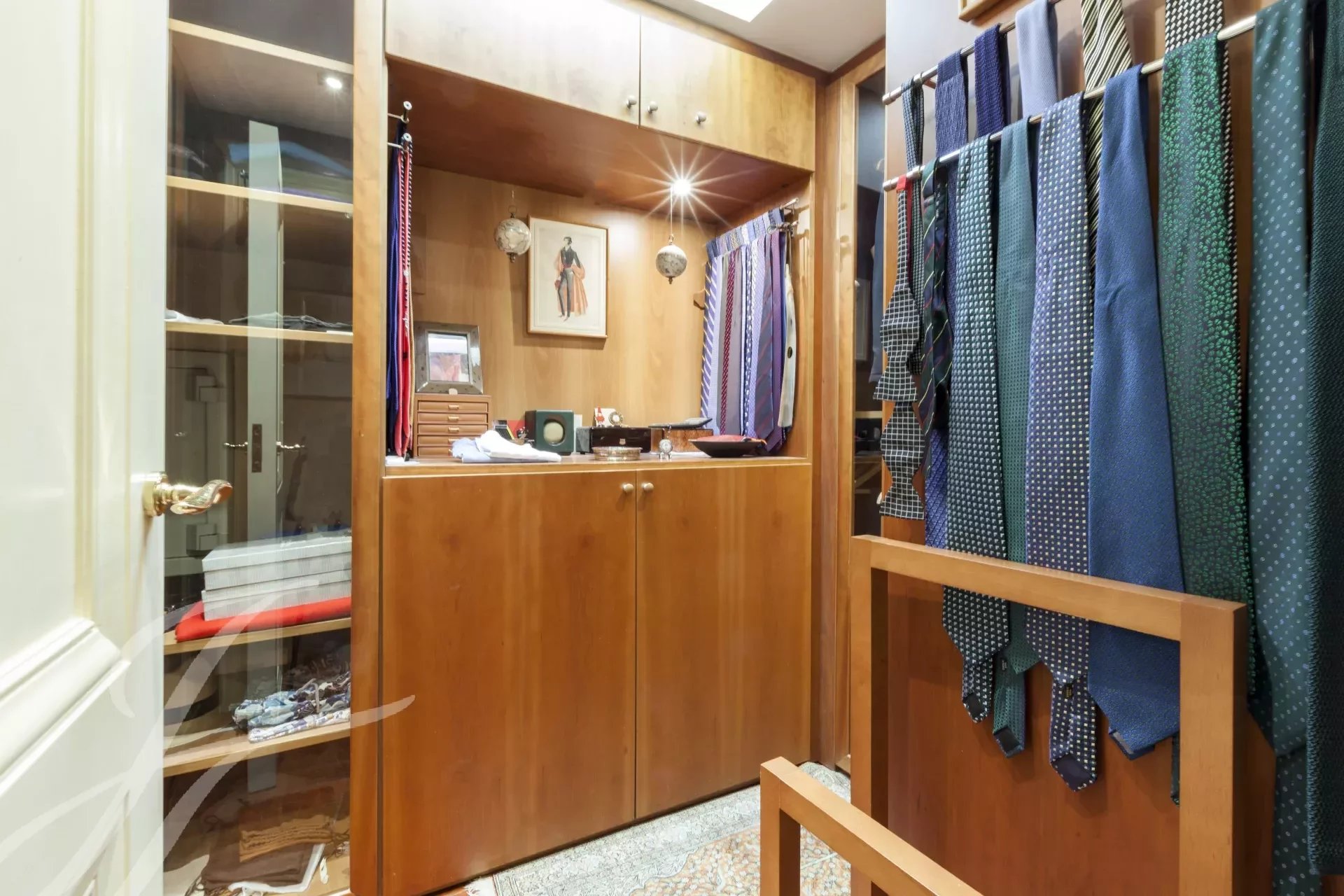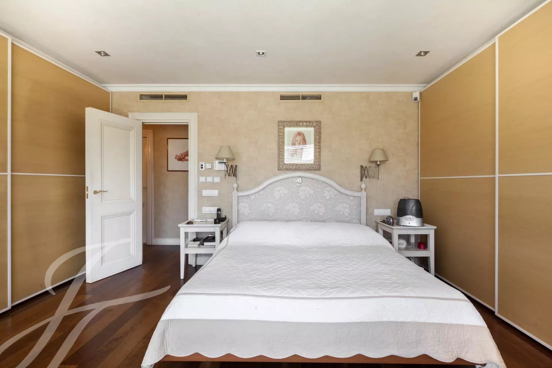 Von der Küche aus gelangt man in den Flur, wo sich auch ein Gäste-WC befindet. Von der großen Diele aus gelangt man in die zweite Etage, die ebenfalls über einen unabhängigen Eingang vom Aufzug aus verfügt. Ein Flur führt entlang des Treppenhauses und verteilt die Türen zu den verschiedenen Schlafzimmern, die alle sehr groß sind und über ein eigenes Bad und einen Ankleideraum verfügen. Das riesige Hauptschlafzimmer besteht aus dem eigentlichen Schlafzimmer, einem Ankleidezimmer, einem großen Bad en-suite und einem zusätzlichen Schlafzimmer oder Büro mit eigenem Bad. Im weiteren Verlauf der Treppe finden wir ein weiteres Schlafzimmer mit eigenem Bad, und die beiden anderen Schlafzimmer, die sich ein Wohnzimmer oder ein Arbeitszimmer teilen und jeweils über ein Ankleidezimmer und ein eigenes Bad verfügen, vervollständigen die Etage.