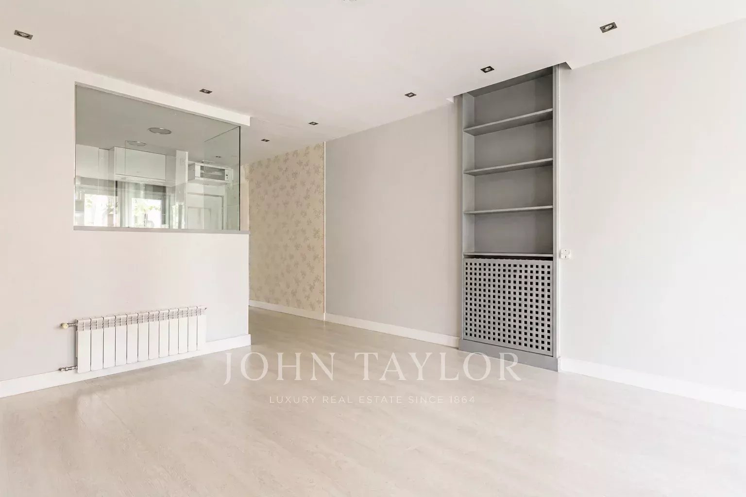 Dieses helle und moderne Apartment befindet sich im begehrten Stadtteil Chamartín Nueva España in Madrid. Die Wohnung überzeugt durch großzügige Fenster, die viel Tageslicht spenden, sowie durch ein offenes Wohnkonzept mit eleganten Einbauregalen und neutralen Farbtönen, welche den Räumen ein angenehmes Ambiente verleihen.