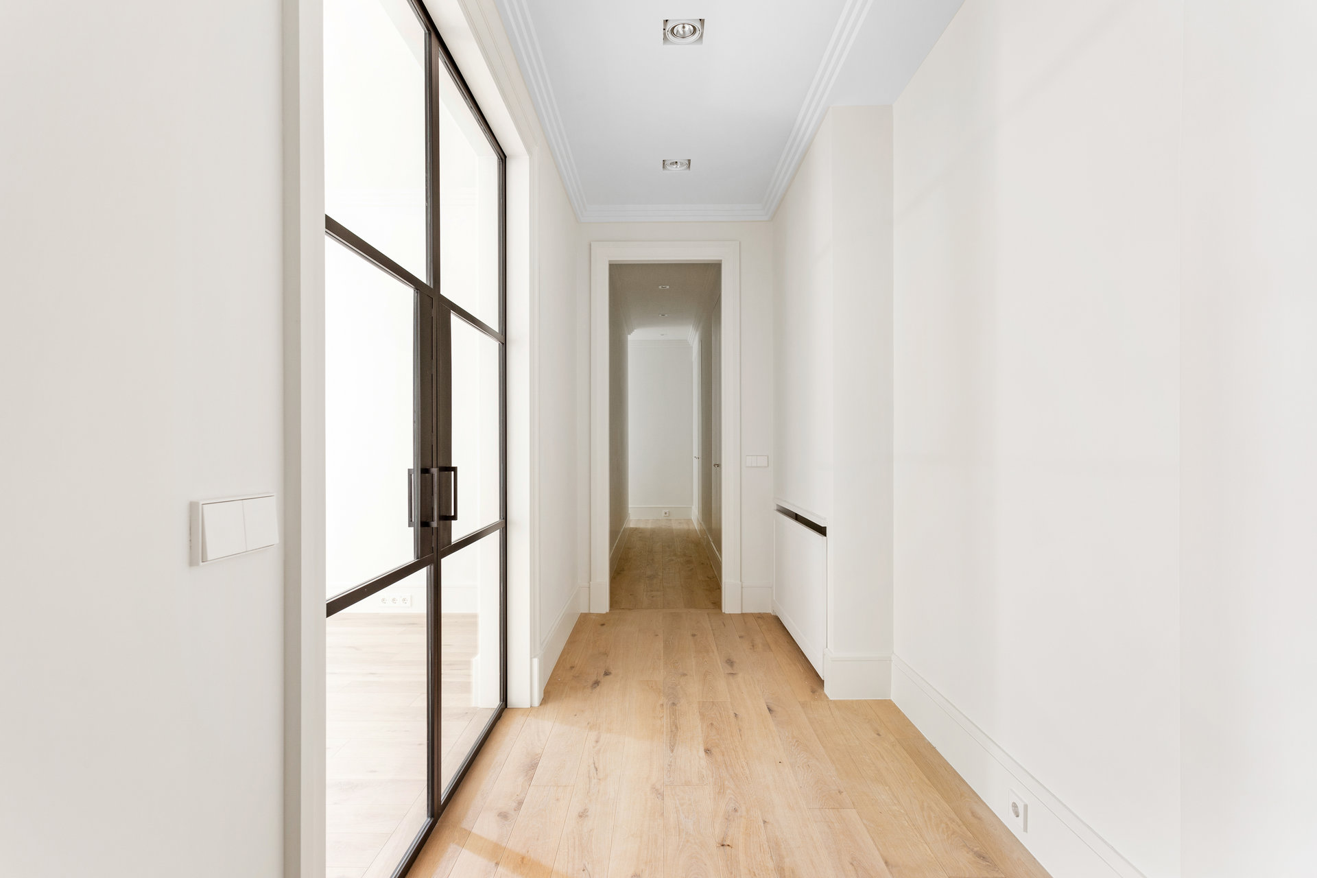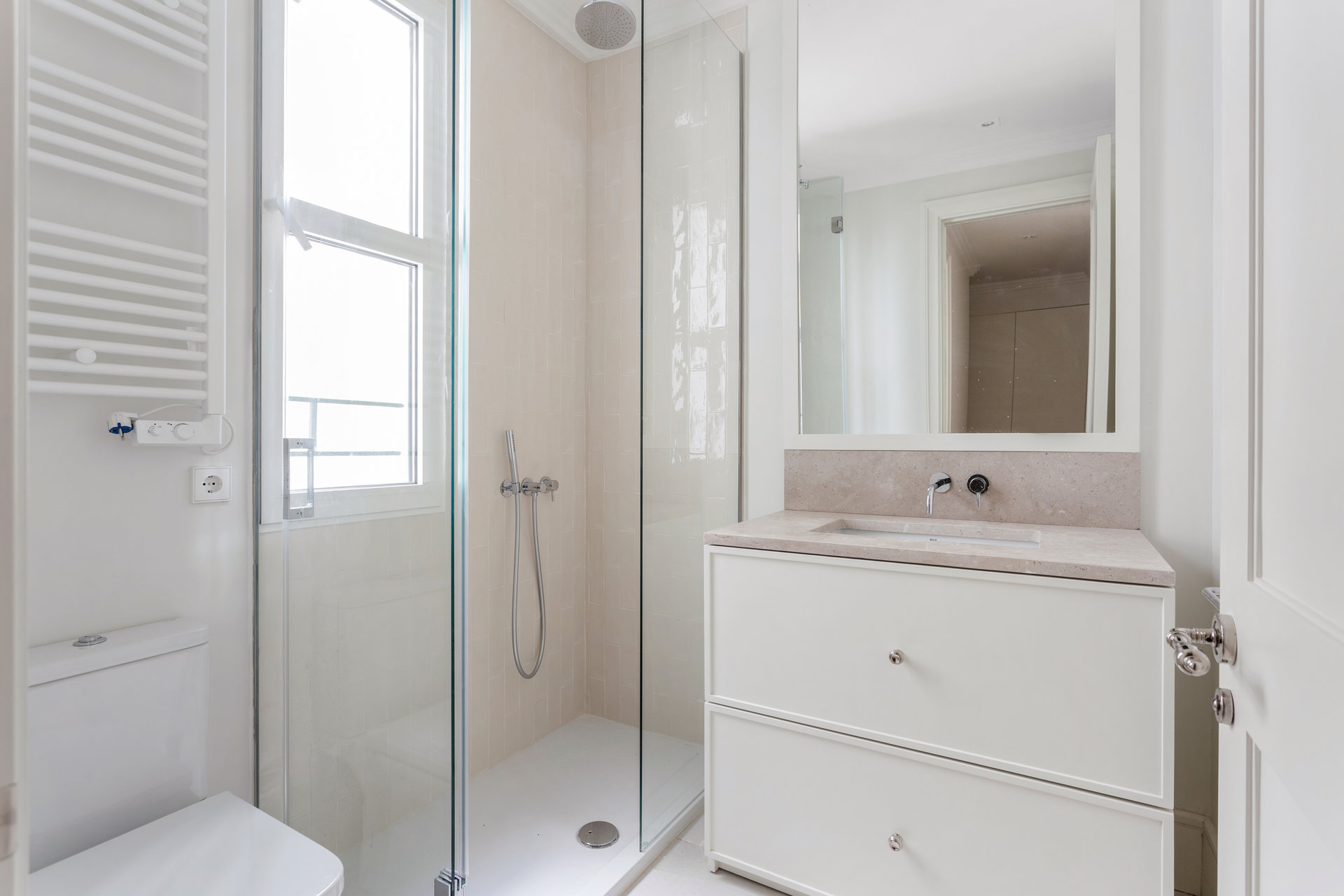 Exklusive brandneue Wohnung in einem ruhigen und hellen fünften Stock Innenraum, in einem eleganten klassischen Gebäude mit Concierge-Service, in einer der begehrtesten Straßen des Almagro Nachbarschaft.