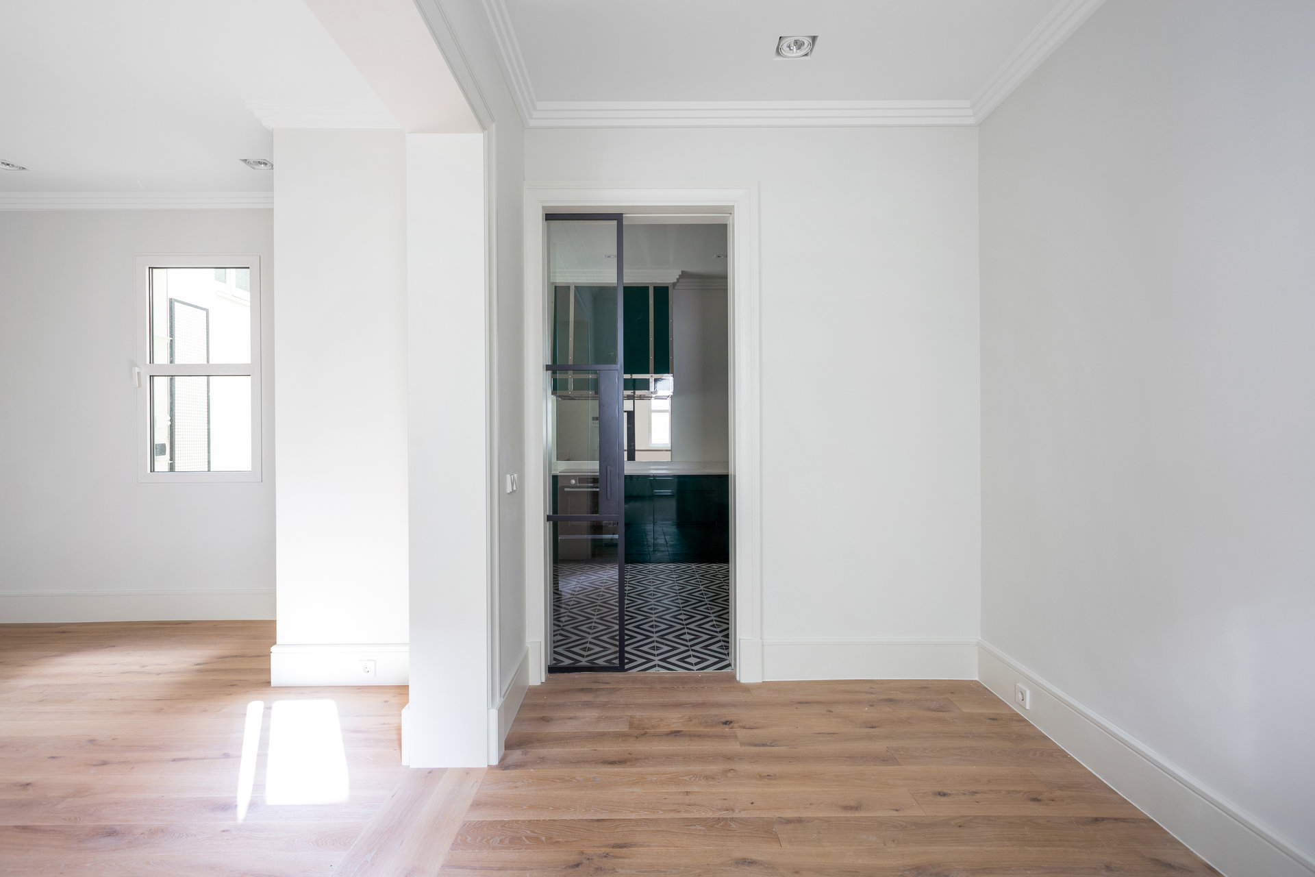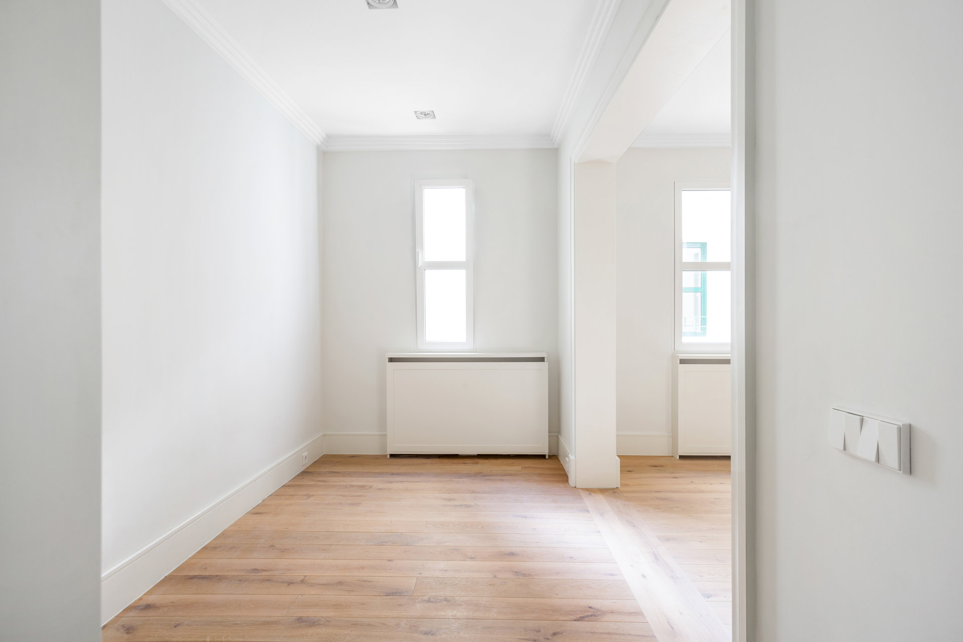 Die Immobilie mit einer Fläche von 133 m² wurde von der renommierten Innenarchitektin Lucía Gómez-Acebo hochwertig renoviert und bis ins kleinste Detail durchdacht, um ein zeitgemäßes Wohngefühl in einem klassischen Ambiente zu bieten. Der Grundriss umfasst ein Hauptschlafzimmer mit Ankleideraum und eigenem Bad, ein zweites Schlafzimmer, ein weiteres Badezimmer, eine voll ausgestattete Küche und ein raffiniertes Wohn-Esszimmer, das sich sowohl für den Alltag als auch für die Bewirtung von Gästen eignet.