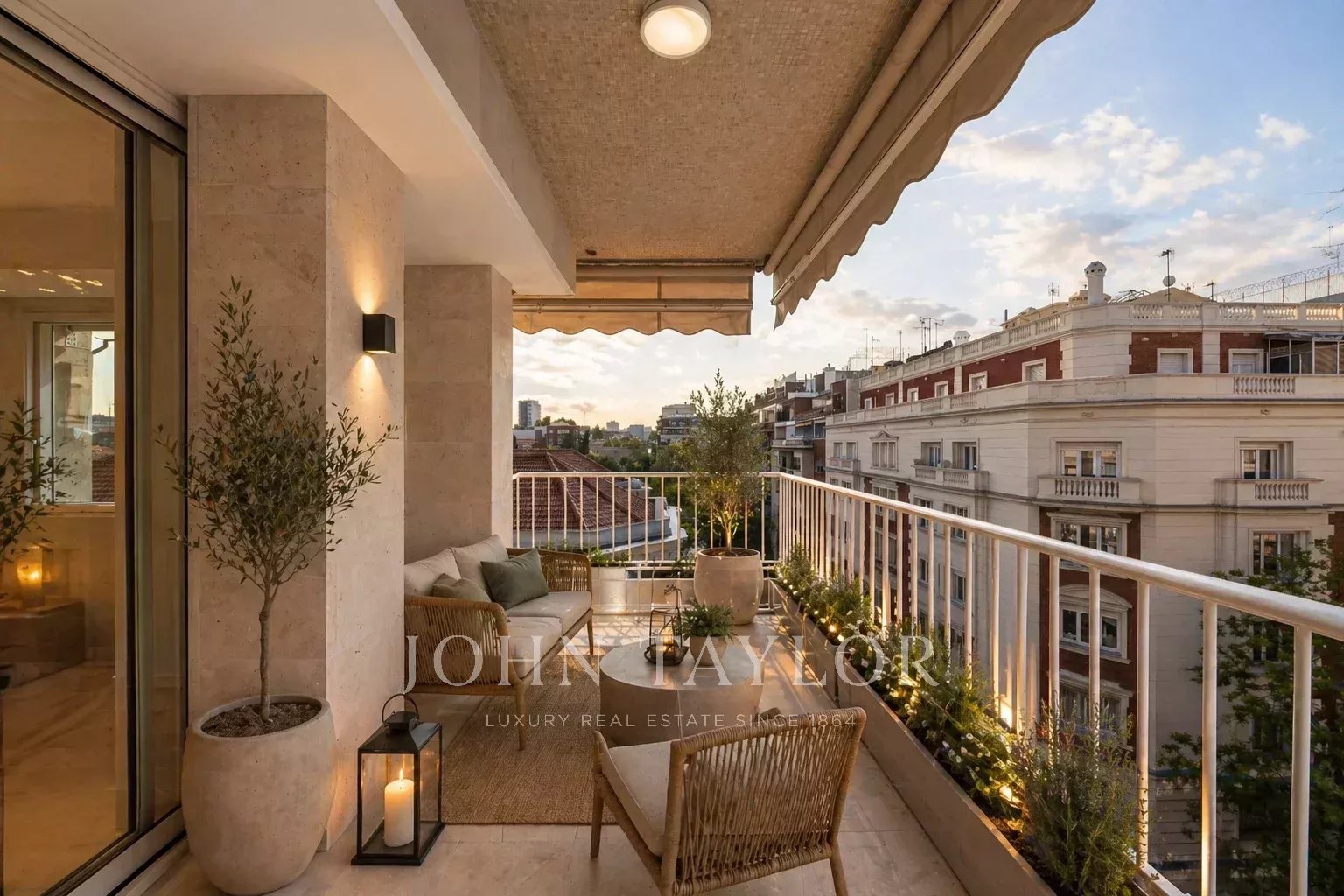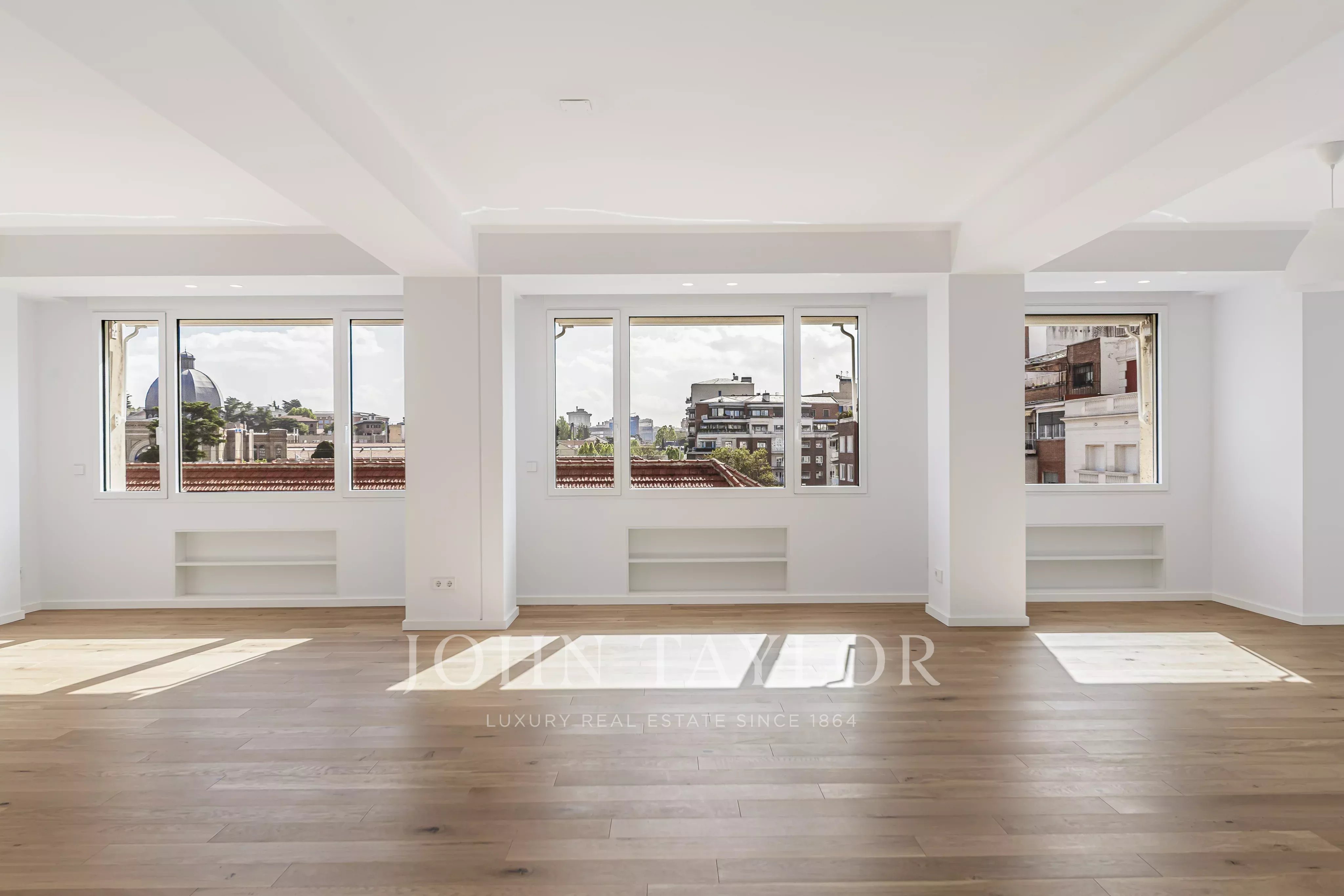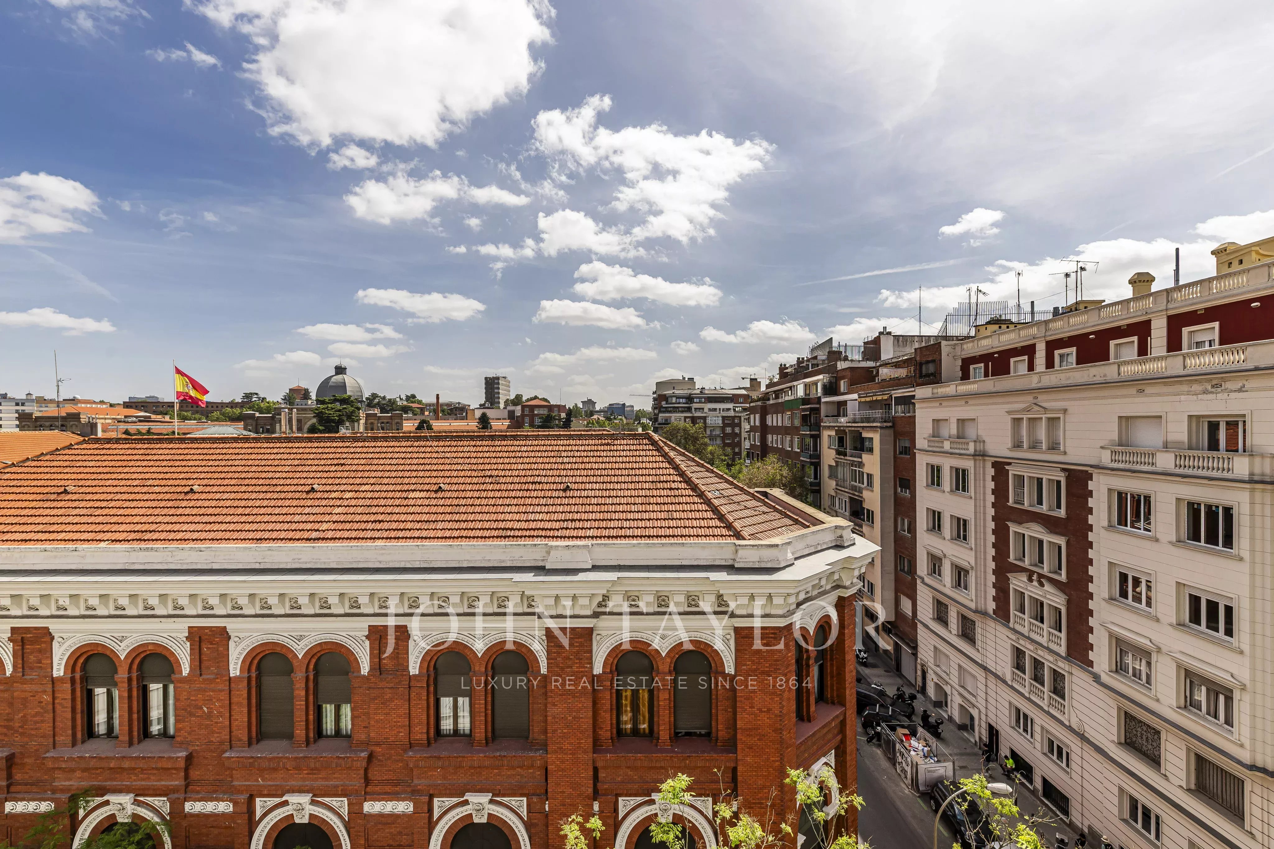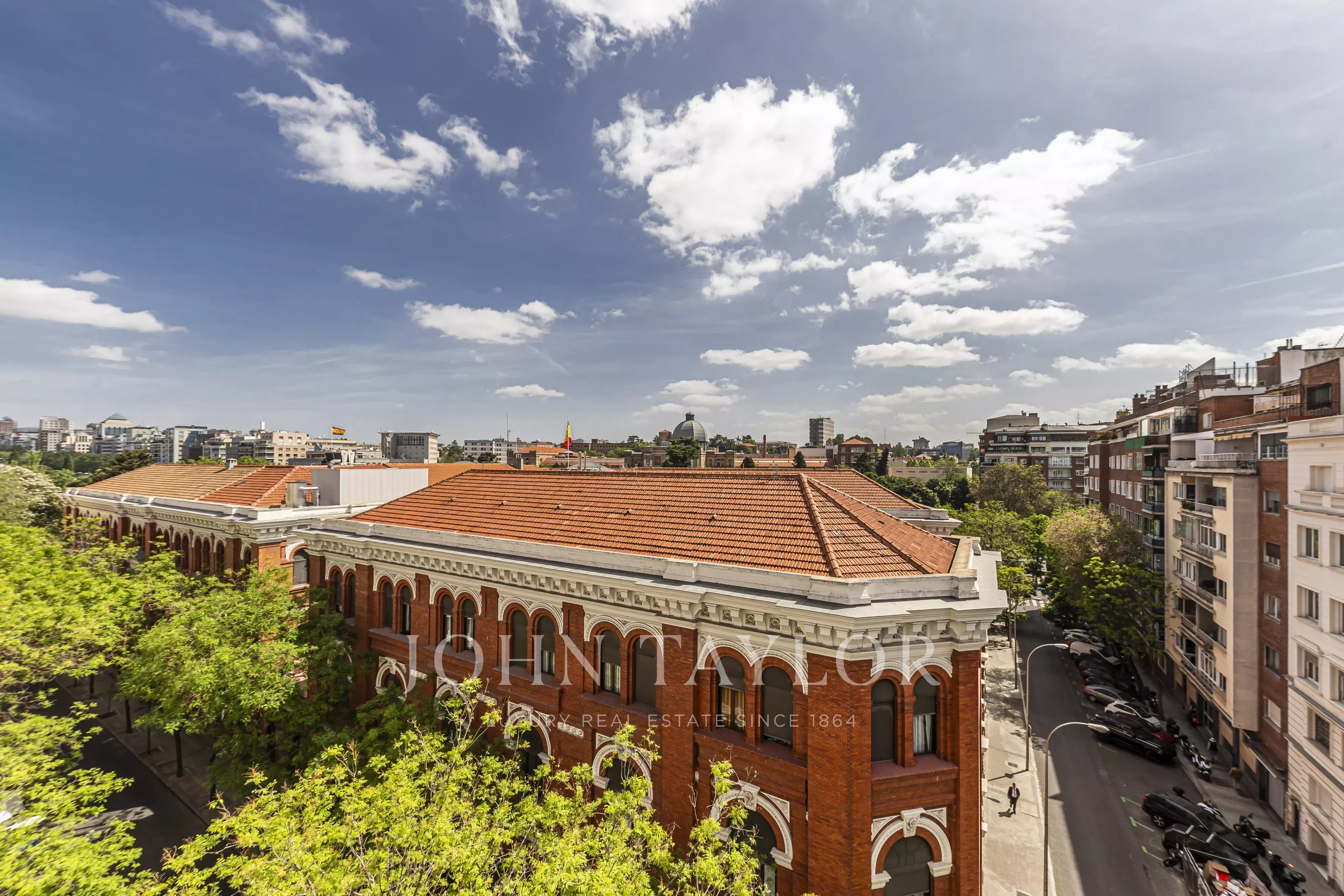 Mit 246 m² und südlicher Ausrichtung besticht die Wohnung vor allem durch ihre außergewöhnliche offene Aussicht auf das Museo Nacional de Ciencias Naturales, ein seltenes Privileg, das Weite, Licht und ein ausgeprägtes Gefühl der Privatsphäre im Herzen der Stadt bietet.