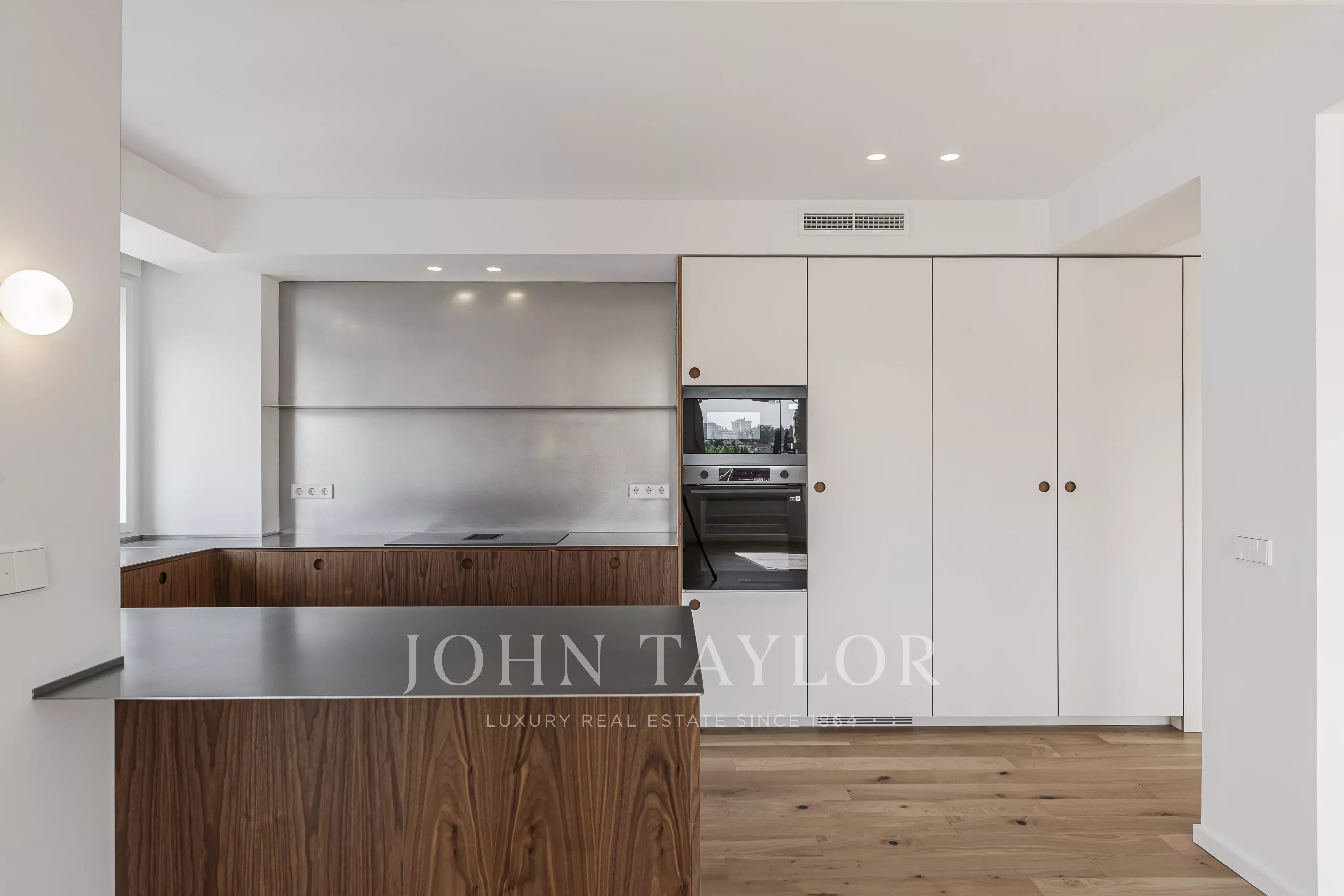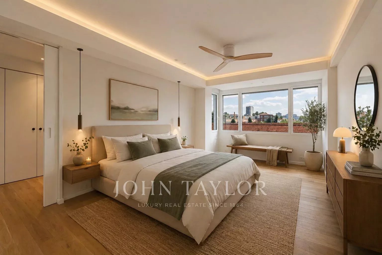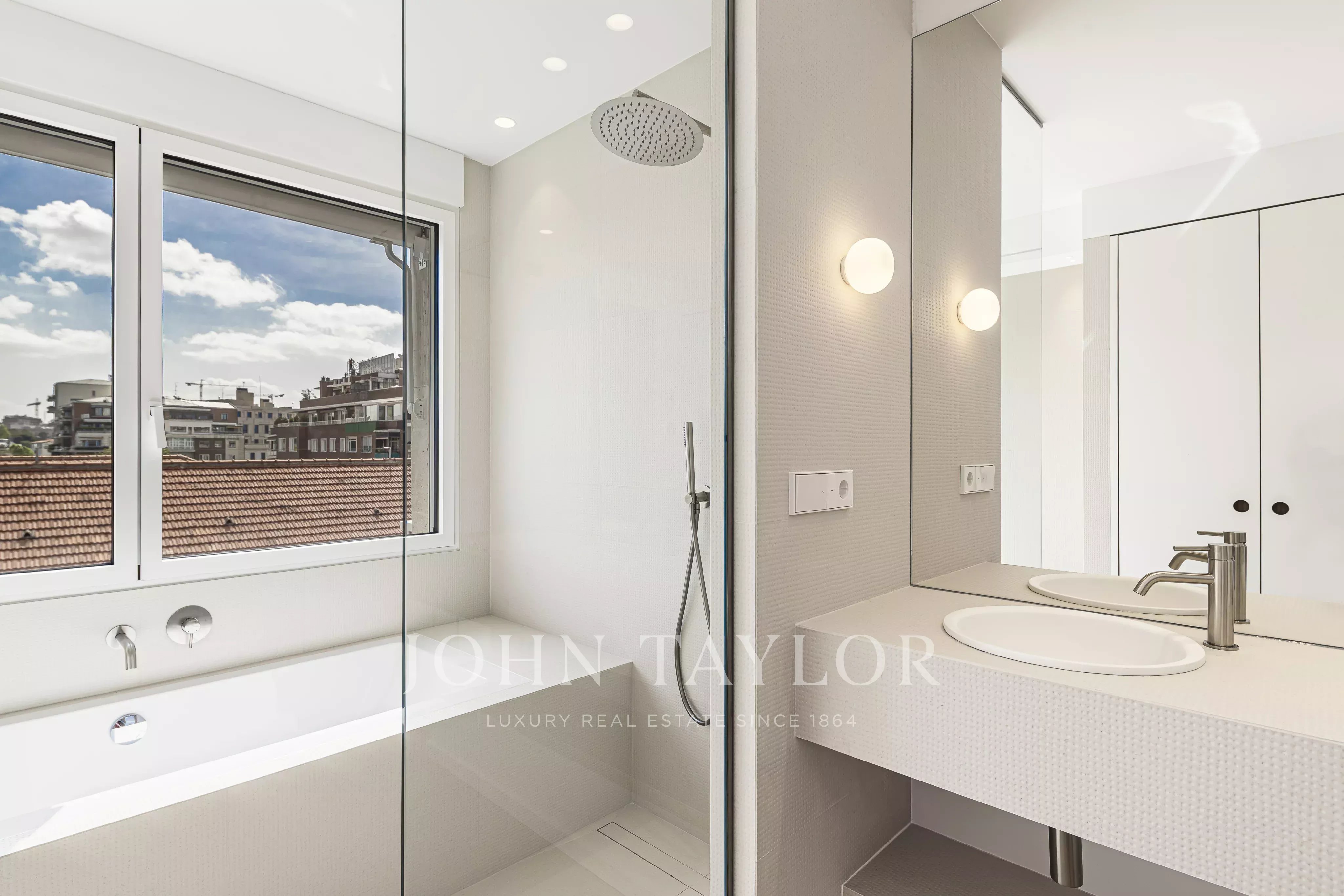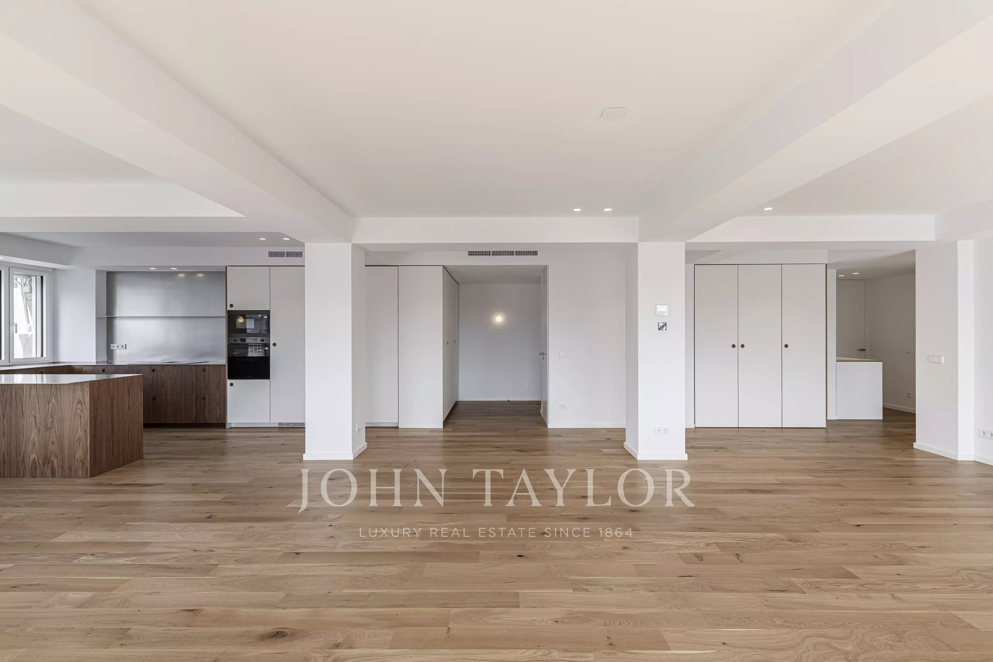 Vollständig renoviert im Jahr 2026, verfügt die Wohnung über eine Fußbodenheizung und -kühlung, eine Klimatisierung durch Kanäle mit separater Steuerung, hochwertige Fensterrahmen und eine sorgfältig ausgewählte Materialpalette, die Komfort und Effizienz garantiert.