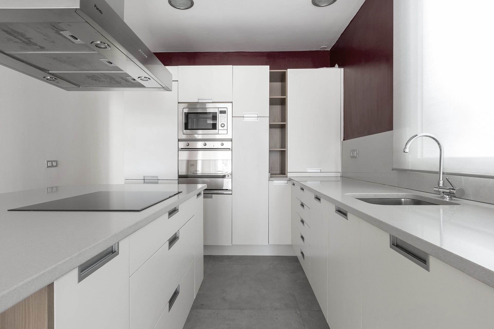 Im dritten Obergeschoss liegt diese 105 m² große Wohnung, die durch ihre Geräumigkeit, Helligkeit und durchdachte Aufteilung besticht. Der Wohnbereich ist um einen spektakulären offenen Raum von etwa 45 m² organisiert, der Wohnzimmer, Esszimmer und Küche verbindet und für ein modernes Wohnerlebnis konzipiert ist. Die Küche, ausgestattet mit Bosch-Geräten und einer eleganten zentralen Insel, verbindet Ästhetik und Funktionalität.