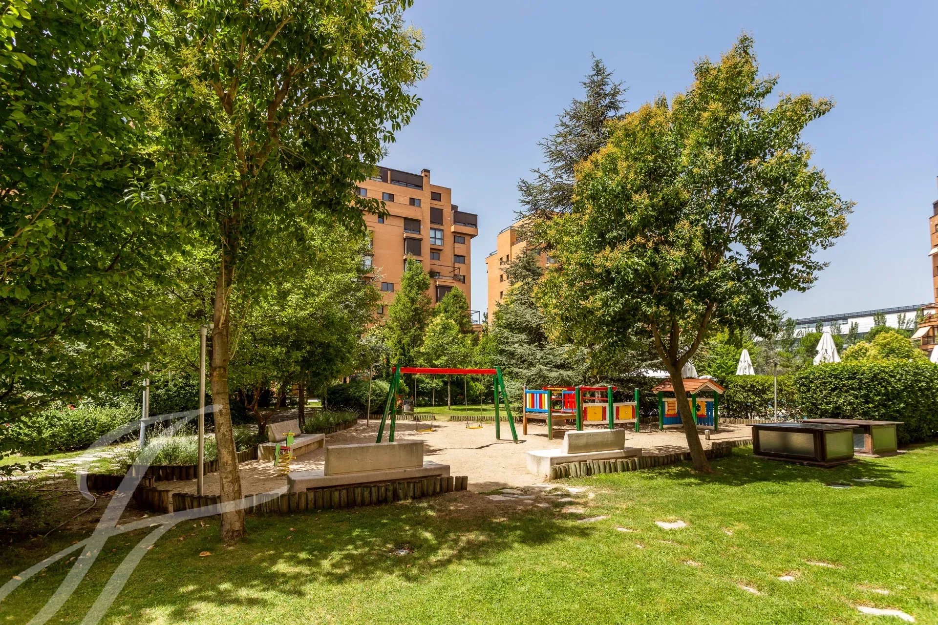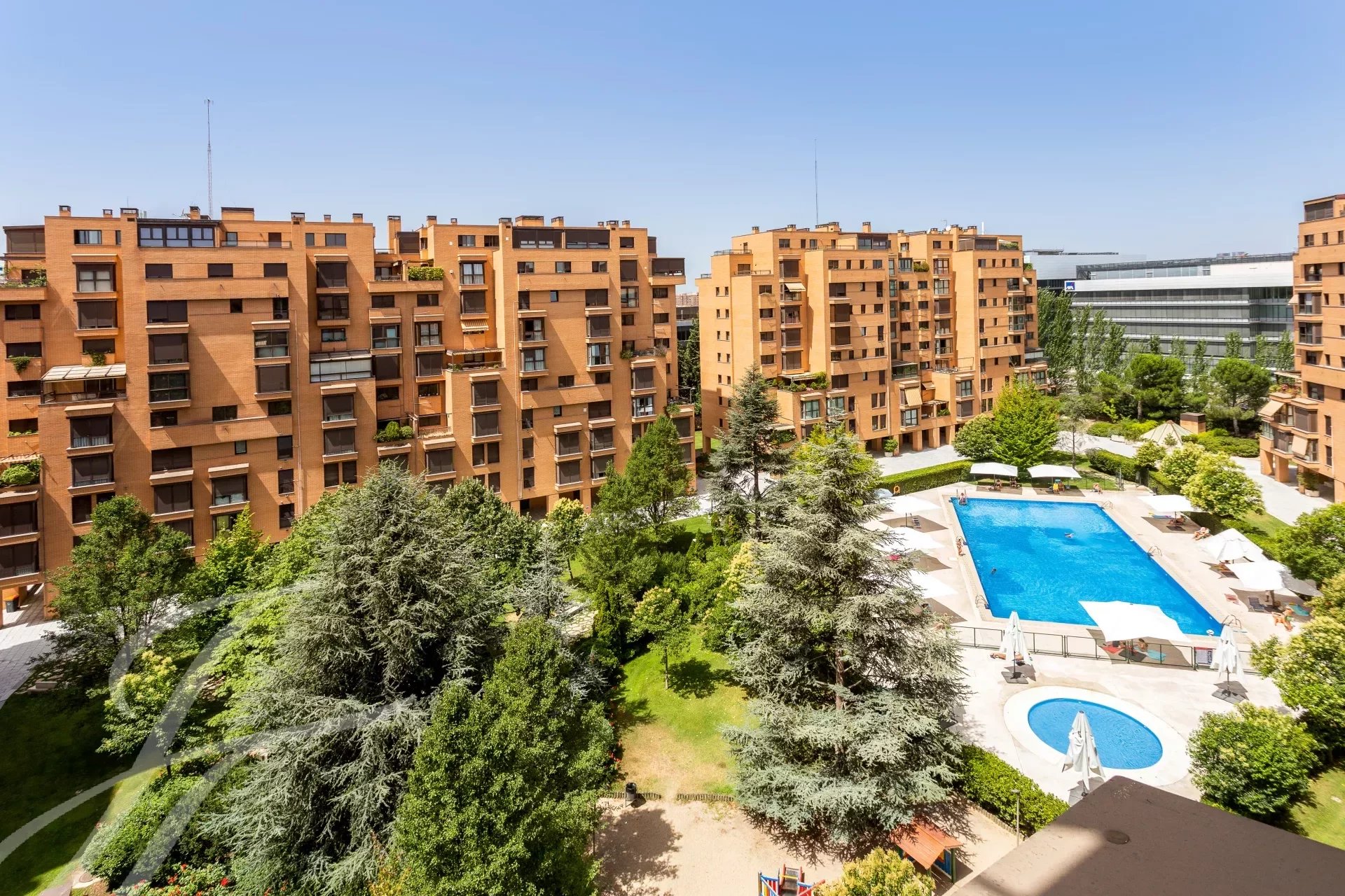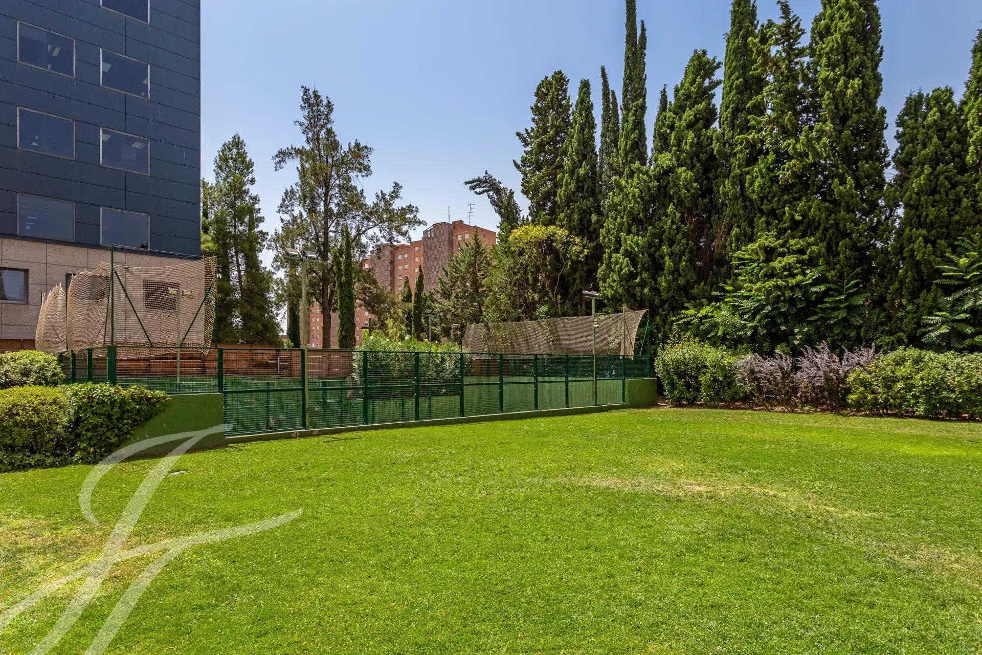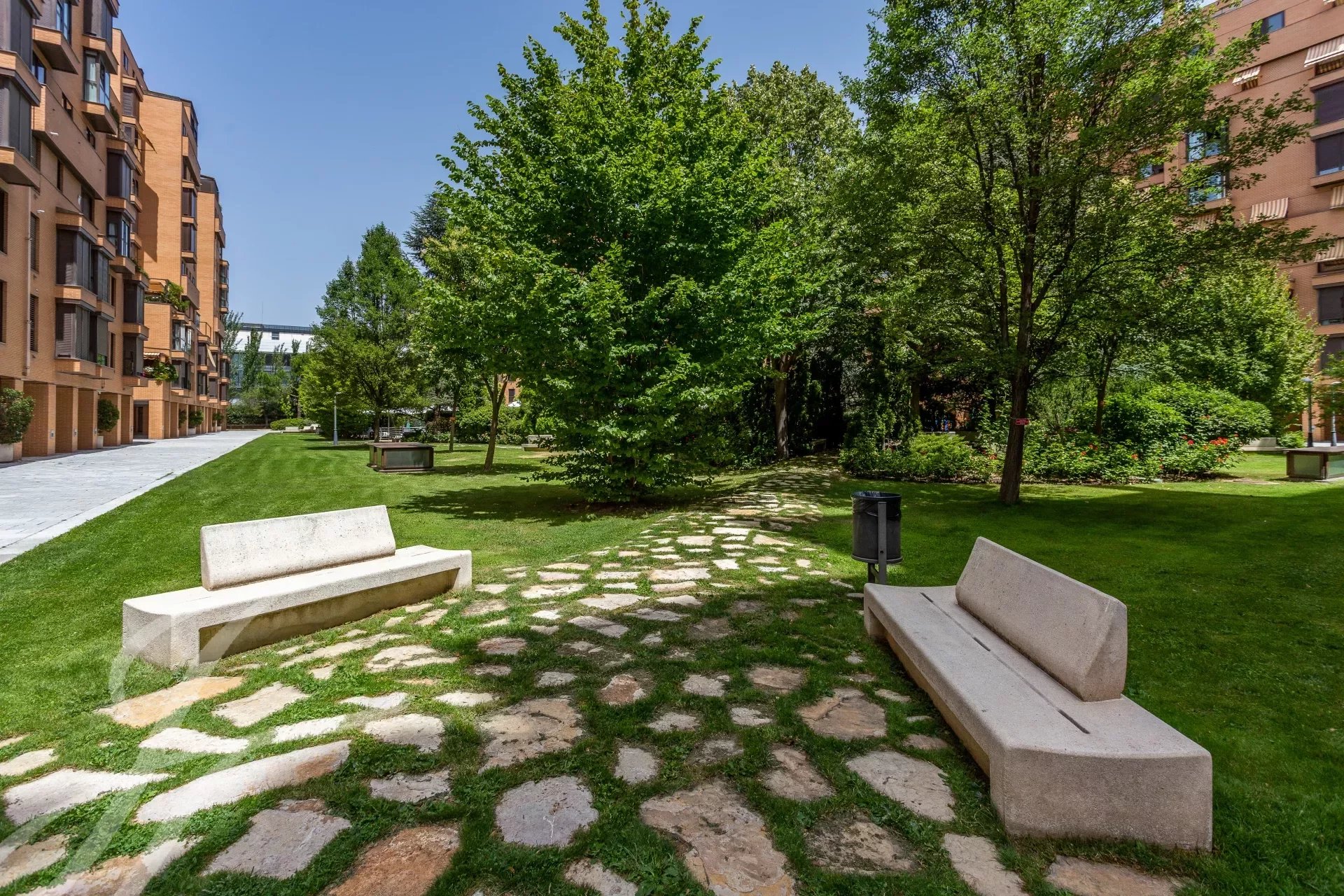 Im gepflegten Außenbereich erwarten Sie ein gepflegter Gemeinschaftsgarten, ein Tennisplatz sowie ein großer Swimmingpool – ideal zum Entspannen und Sporttreiben. Profitieren Sie von einer exklusiven Wohnatmosphäre und erleben Sie höchsten Wohnkomfort in einer der besten Lagen Madrids.