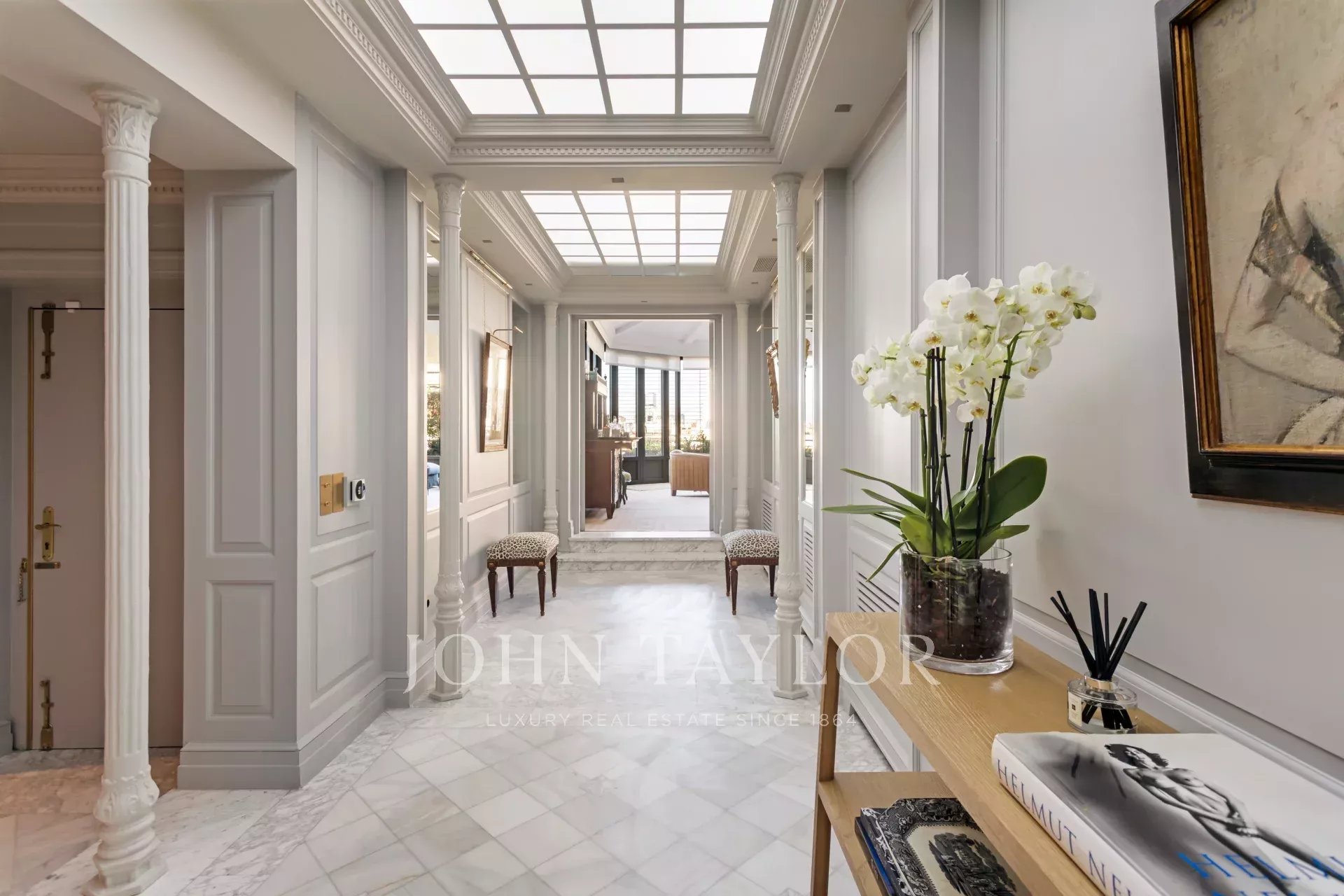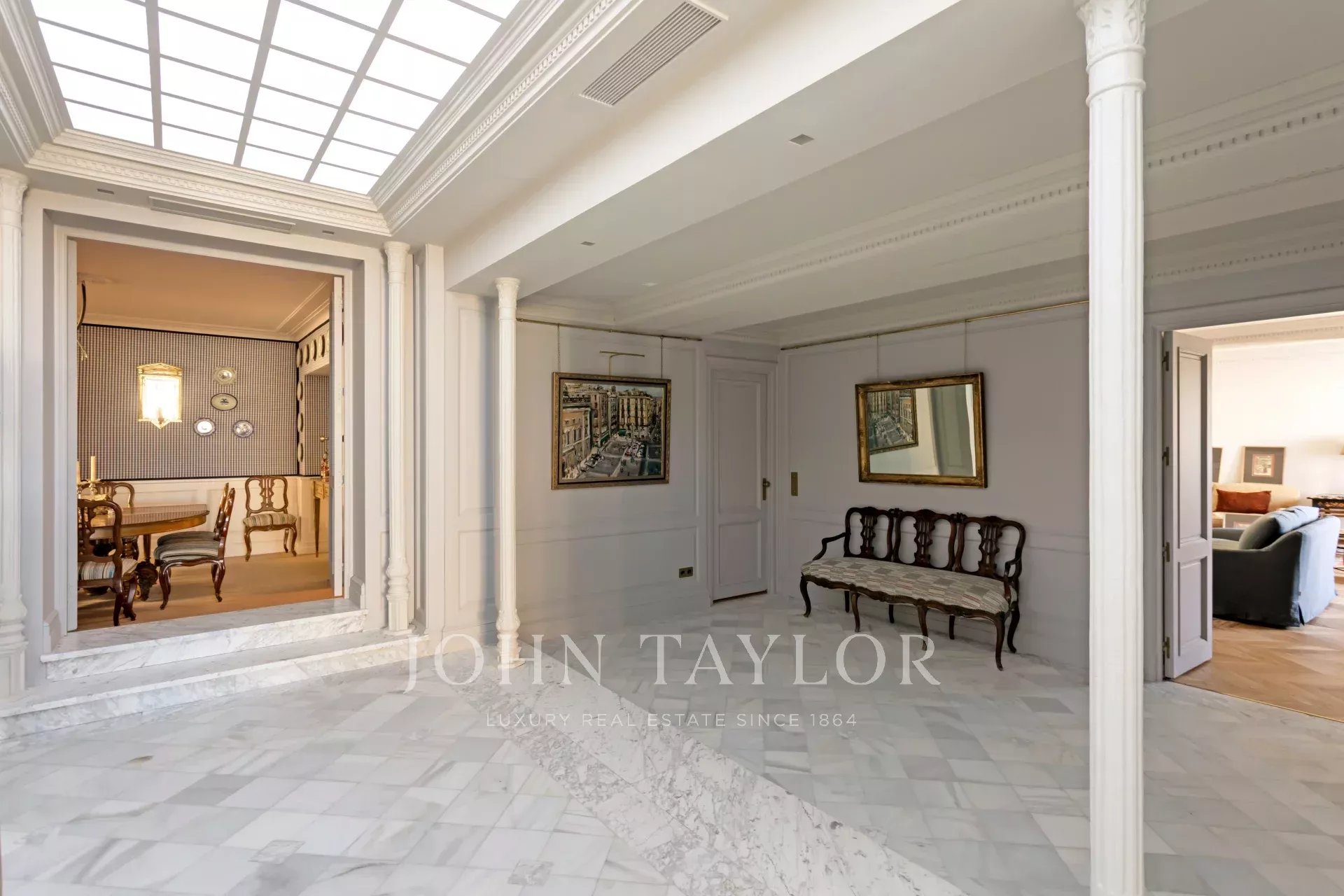 Die vier geräumigen Schlafzimmer bieten einen intimen Zufluchtsort, um vom Tempo der Stadt abzuschalten, während jeder Winkel mit einer besonderen Sensibilität für Details konzipiert wurde: außergewöhnliche Oberflächen, edle Texturen und eine Harmonie, die auf Schritt und Tritt zu spüren ist. Das elegante Hauptwohnzimmer mit seinem Kamin als Hauptmerkmal lädt dazu ein, die Zeit anzuhalten, lange Gespräche zu führen und die einfache Freude des Seins zu genießen.