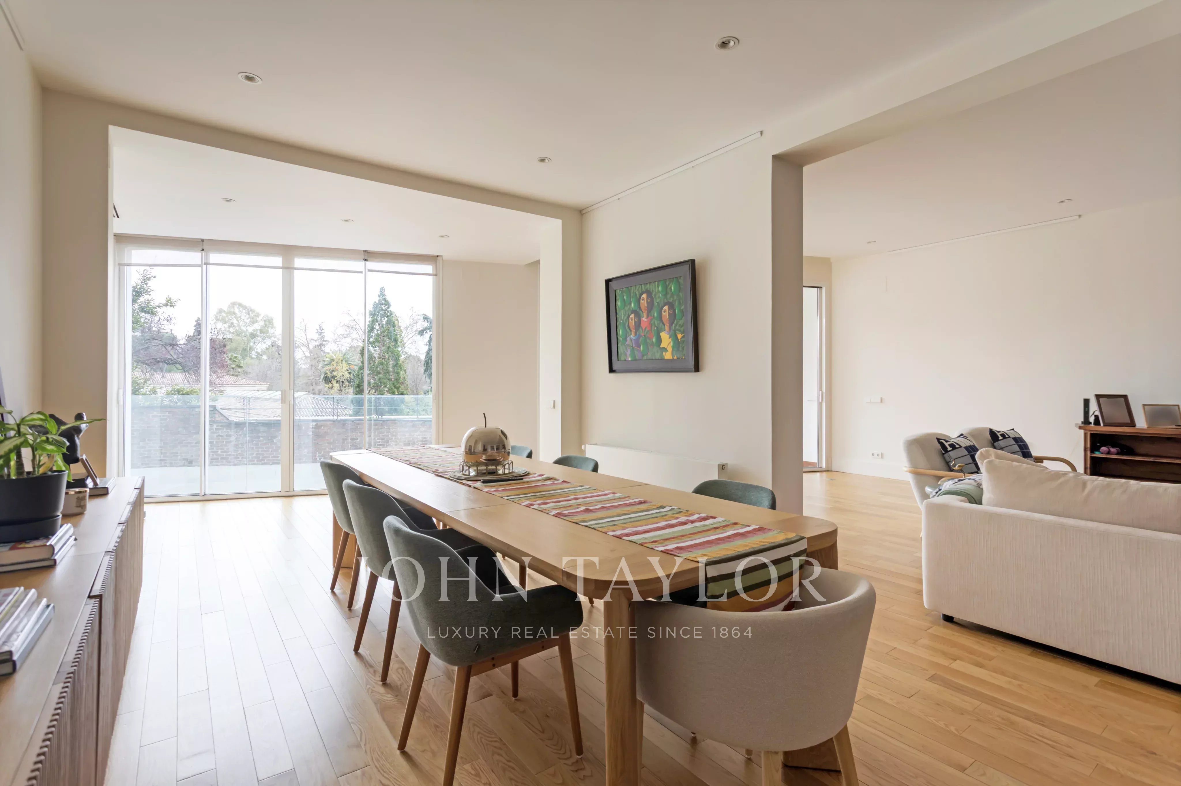 In dem exklusiven Viertel Jerónimos gelegen, zeichnet sich diese einzigartige Immobilie durch ihre spektakulären Ausblicke auf den Botanischen Garten aus, die die Ruhe und den Charme einer Berglandschaft hervorrufen und eine Umgebung absoluter Ruhe im Herzen der Stadt bieten.Das Haus empfängt Sie mit einer imposanten Eingangshalle, die dazu gedacht ist, einen unvergesslichen ersten Eindruck zu hinterlassen. Das Wohnzimmer, geräumig und offen, öffnet sich zu einer angenehmen Südterrasse, von der aus man eine idyllische grüne Landschaft genießt, die den ganzen Tag von natürlichem Licht durchflutet wird.Die Ruhebereiche bieten vollständig freie Ausblicke, garantieren Privatsphäre und ein ständiges Gefühl der Ruhe, da keine Gebäude oder Nachbarn gegenüber sind.Die unabhängige Küche, großzügig dimensioniert, verfügt über Zugang zu einem hellen Innenhof sowie Abstellraum und Dienstzimmer, was Funktionalität und Komfort bietet.Die Hauptsuite ist ein echtes privates Refugium, mit sorgfältig eingerahmten Ausblicken, Ankleidezimmer und einem geräumigen Badezimmer mit Dusche und Badewanne.Das Gebäude verfügt über einen Portierdienst, einen Parkplatz und eine privilegierte Lage in einem der begehrtesten Viertel der Stadt.
