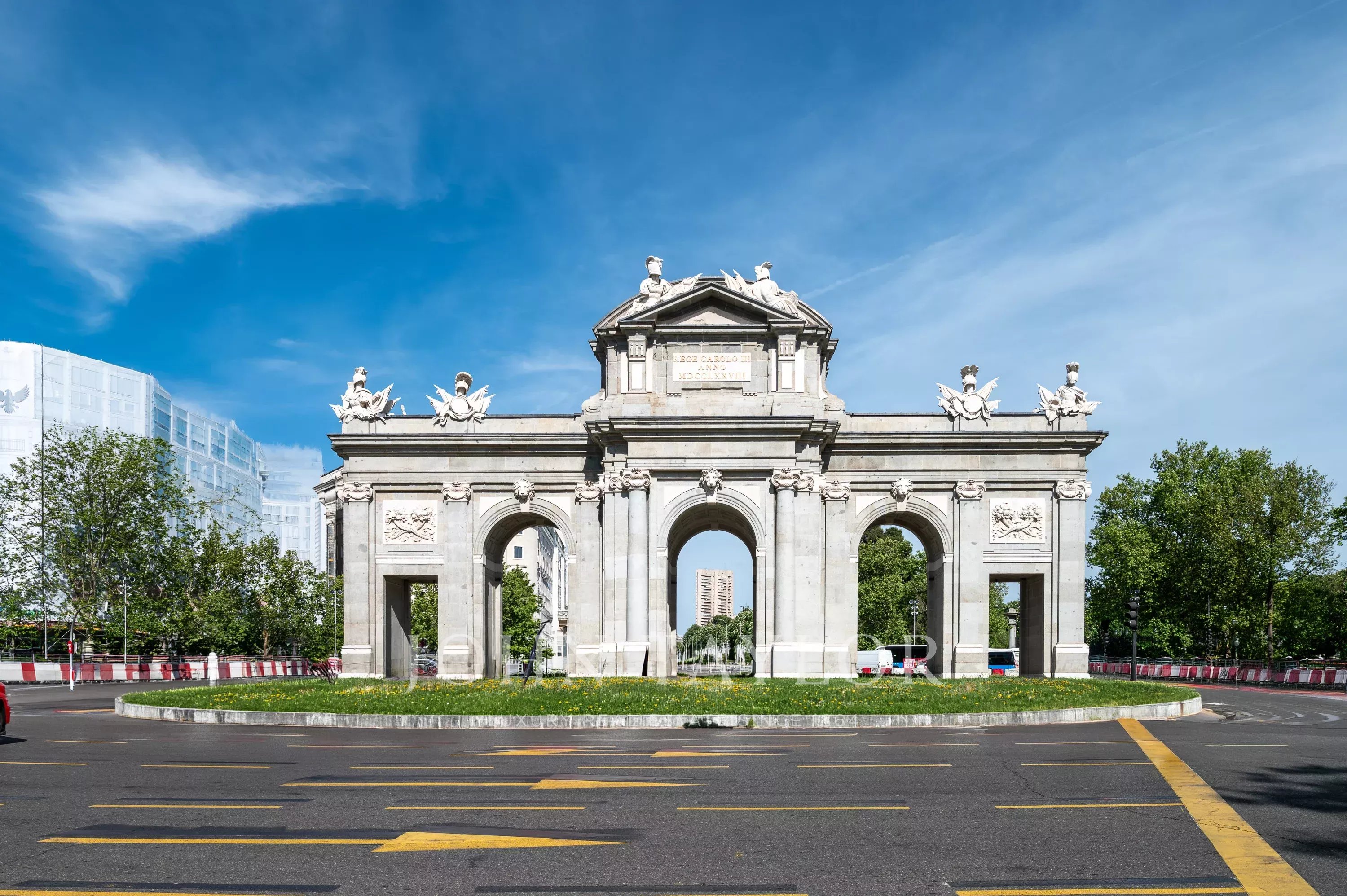 Dieses exklusive Zuhause liegt gegenüber dem Wahrzeichen Puerta de Alcalá und bietet atemberaubende direkte Ausblicke auf eines der markantesten Wahrzeichen Madrids. Die außergewöhnliche Eckaufteilung ermöglicht es, dass Hauptbereiche wie Küche, Esszimmer, Wohnzimmer und die Hauptsuite viel natürliches Licht und einzigartige Panoramen genießen.