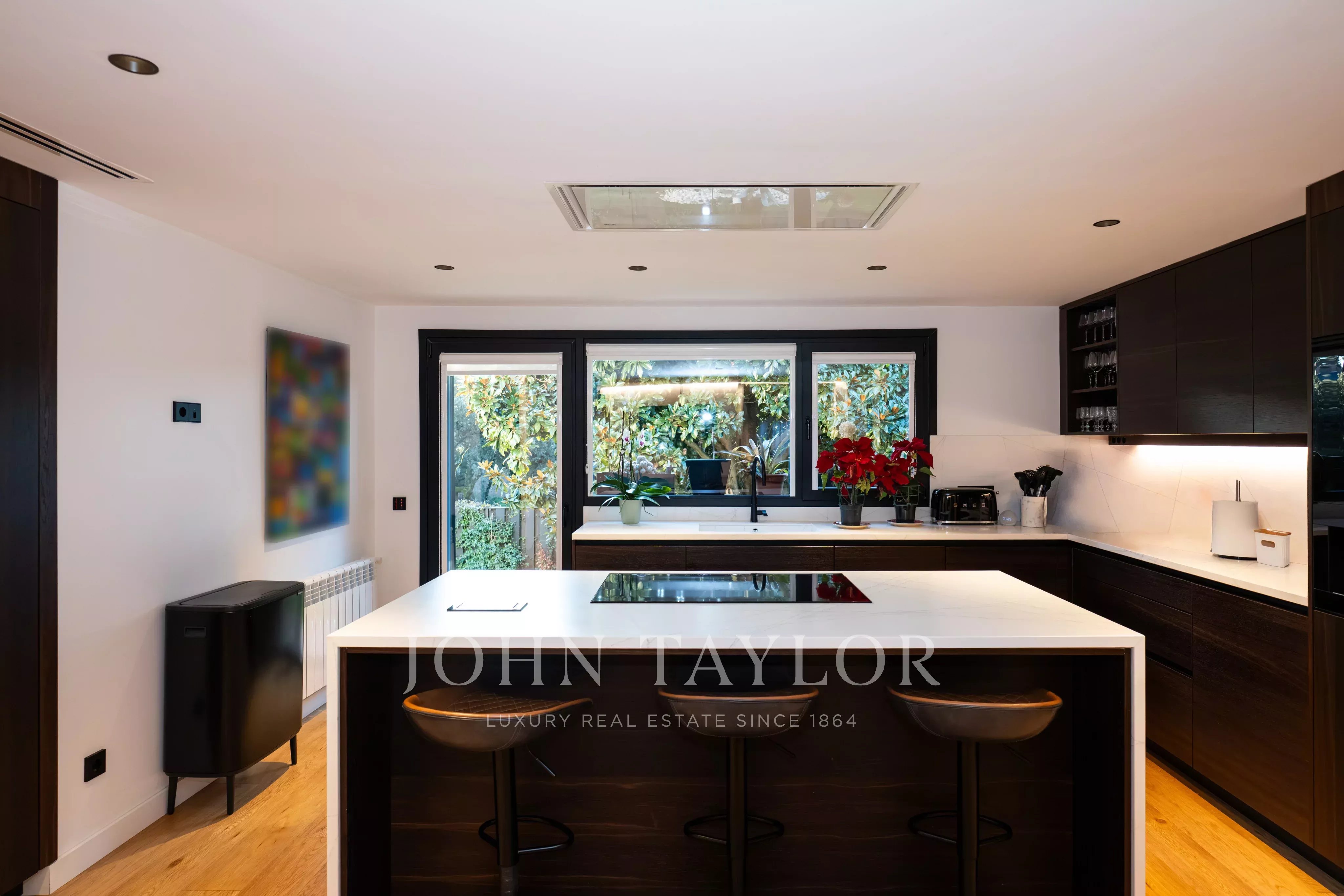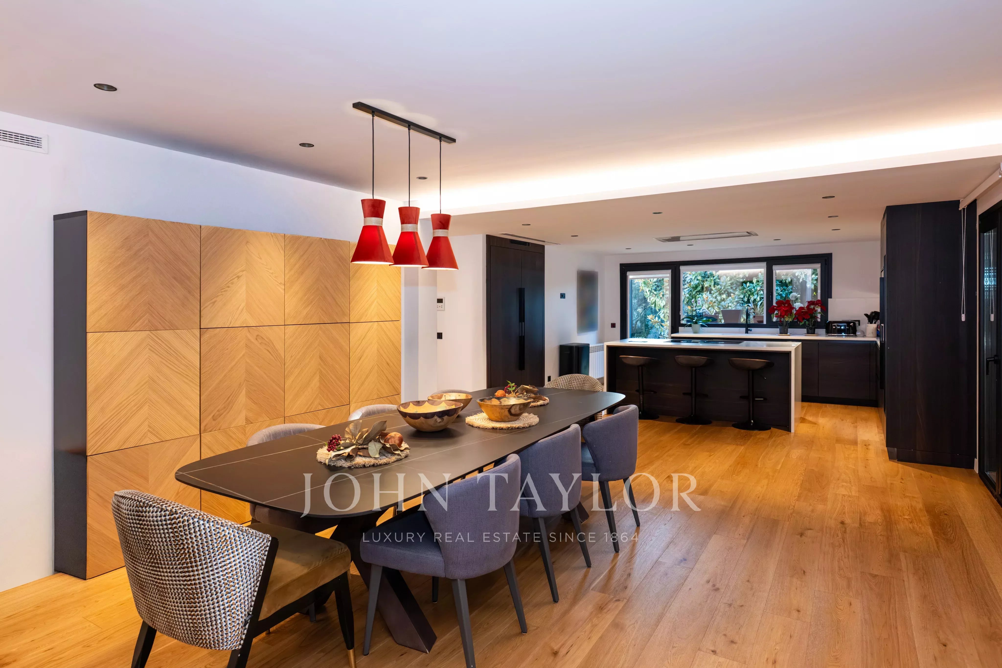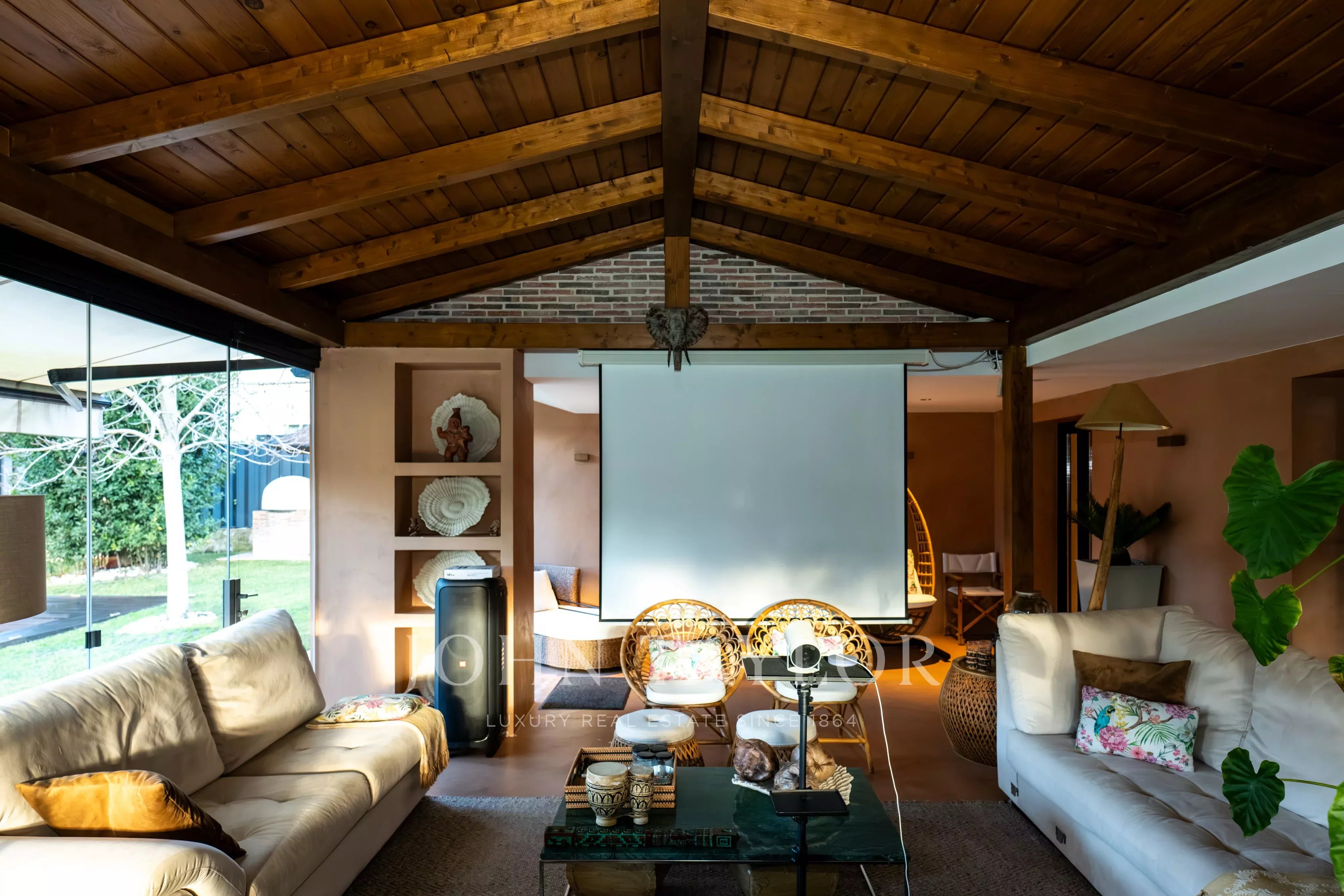 Die Villa erstreckt sich über zwei Etagen und überzeugt durch ihre großzügige Wohnfläche, hohe Decken, viel Tageslicht und eine funktionale Raumaufteilung. Der repräsentative Wohnbereich verfügt über ein großes Wohnzimmer mit Kamin und direktem Zugang zum Garten. Die voll ausgestattete Küche ist geräumig und eignet sich sowohl für den Alltag als auch für gesellige Anlässe. Ergänzt wird sie durch einen großen, geschlossenen und klimatisierten Bereich, der ganzjährig für Zusammenkünfte und Veranstaltungen genutzt werden kann.